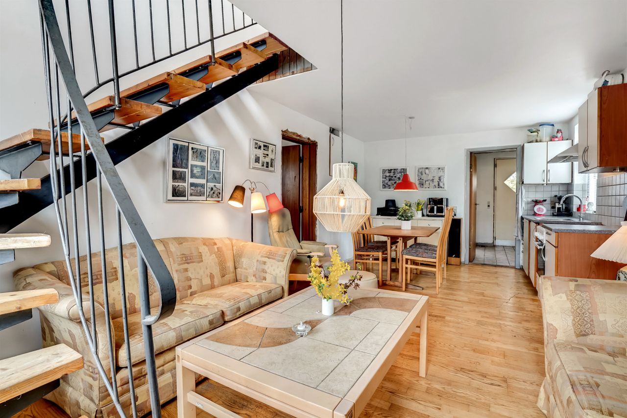 Bolig 2 er på 72 kvm og er allerede delvist moderniseret. Her finder du blandt andet pudsede vægge, gipslofter i de fleste rum, et Junckers ask parketgulv, skiftet køkken samt forbedrede installationer, der muliggør etablering af endnu et badeværelse.