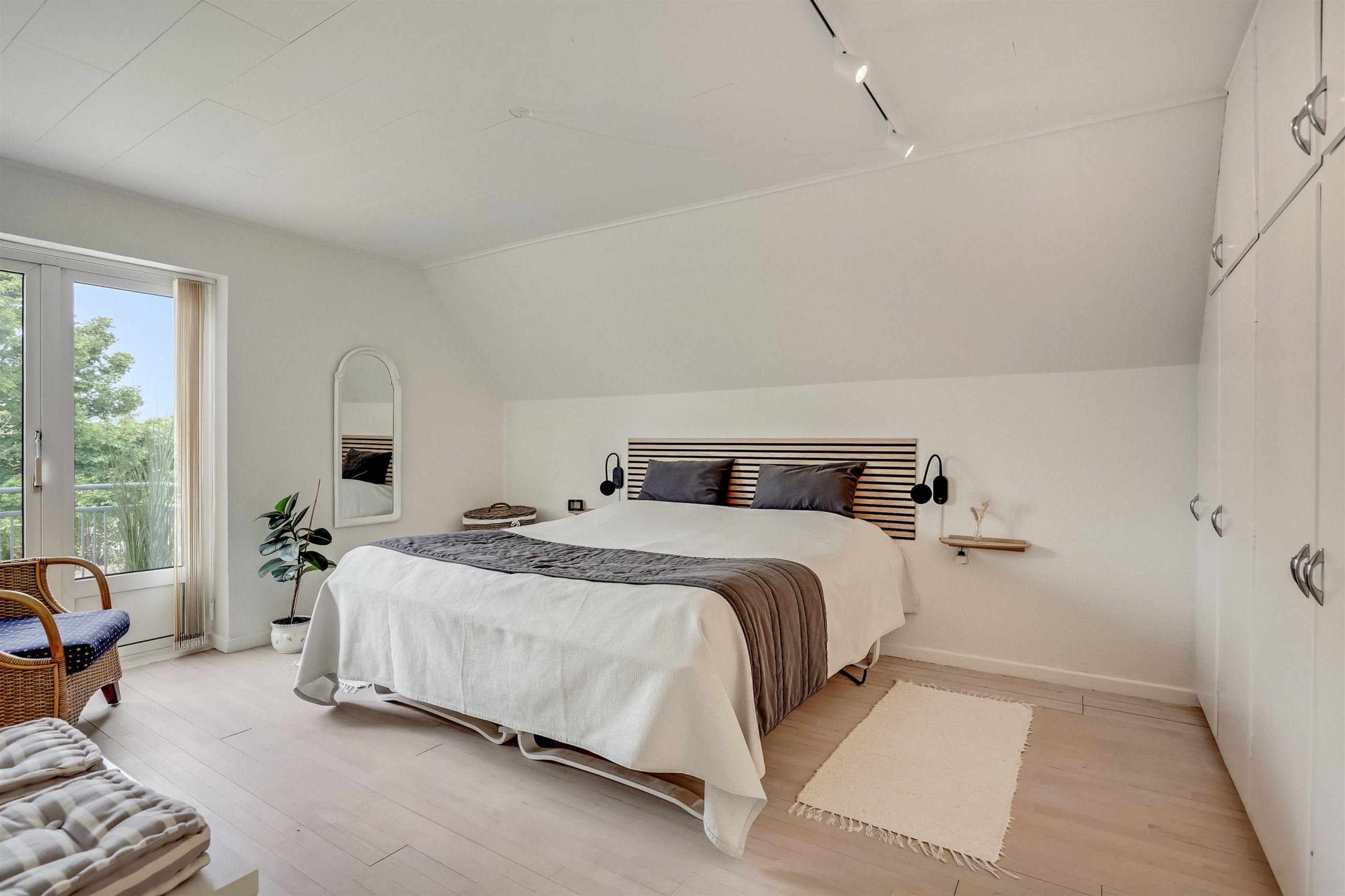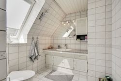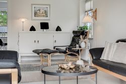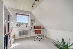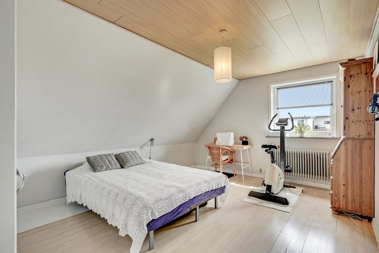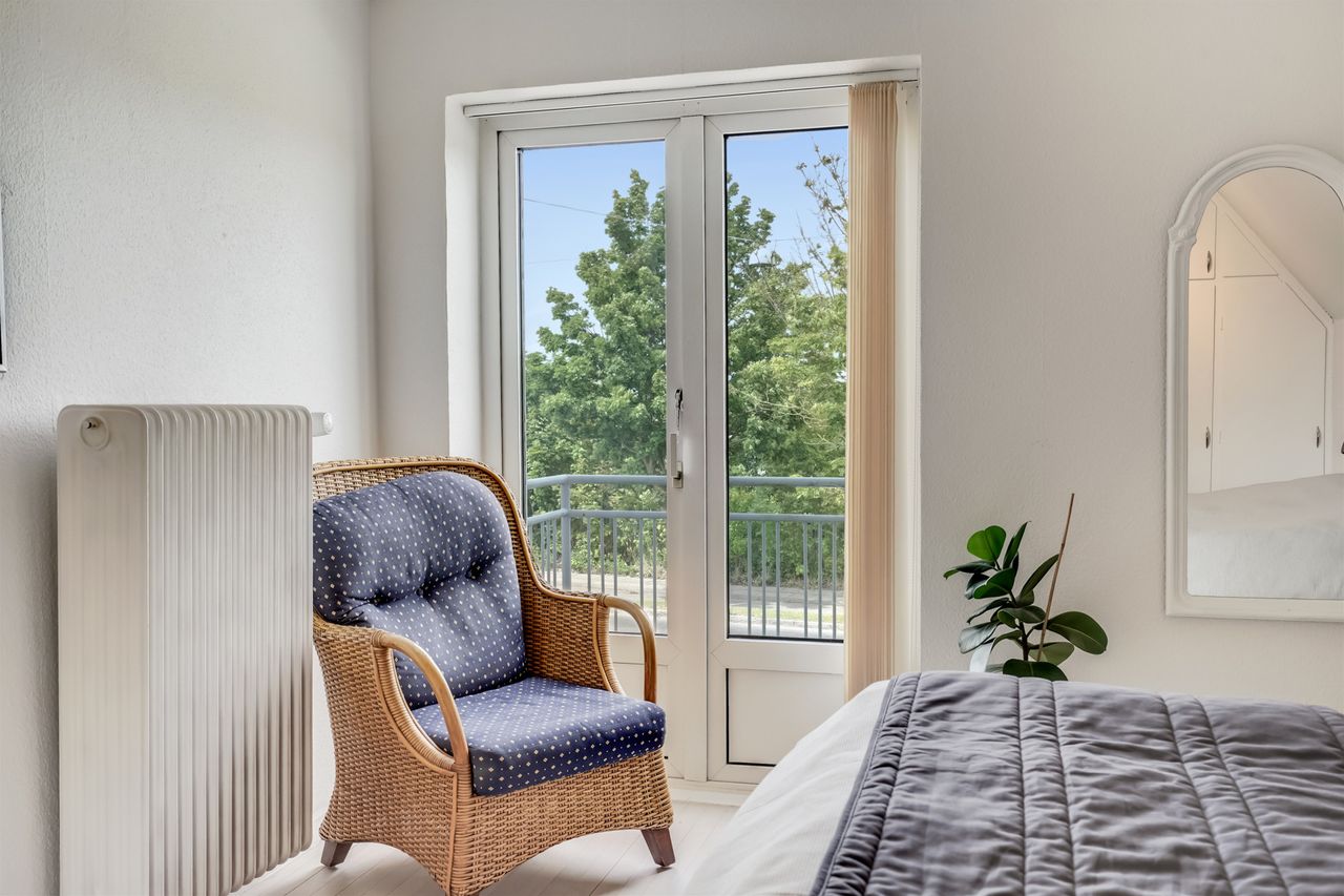 På første sal finder du tre rummelige og indretningsvenlige værelser samt et lyst og godt badeværelse. Fra det ene soveværelse er der udgang til en lille altan – herfra kan man nyde morgensolen og et lille kig til vandet.
