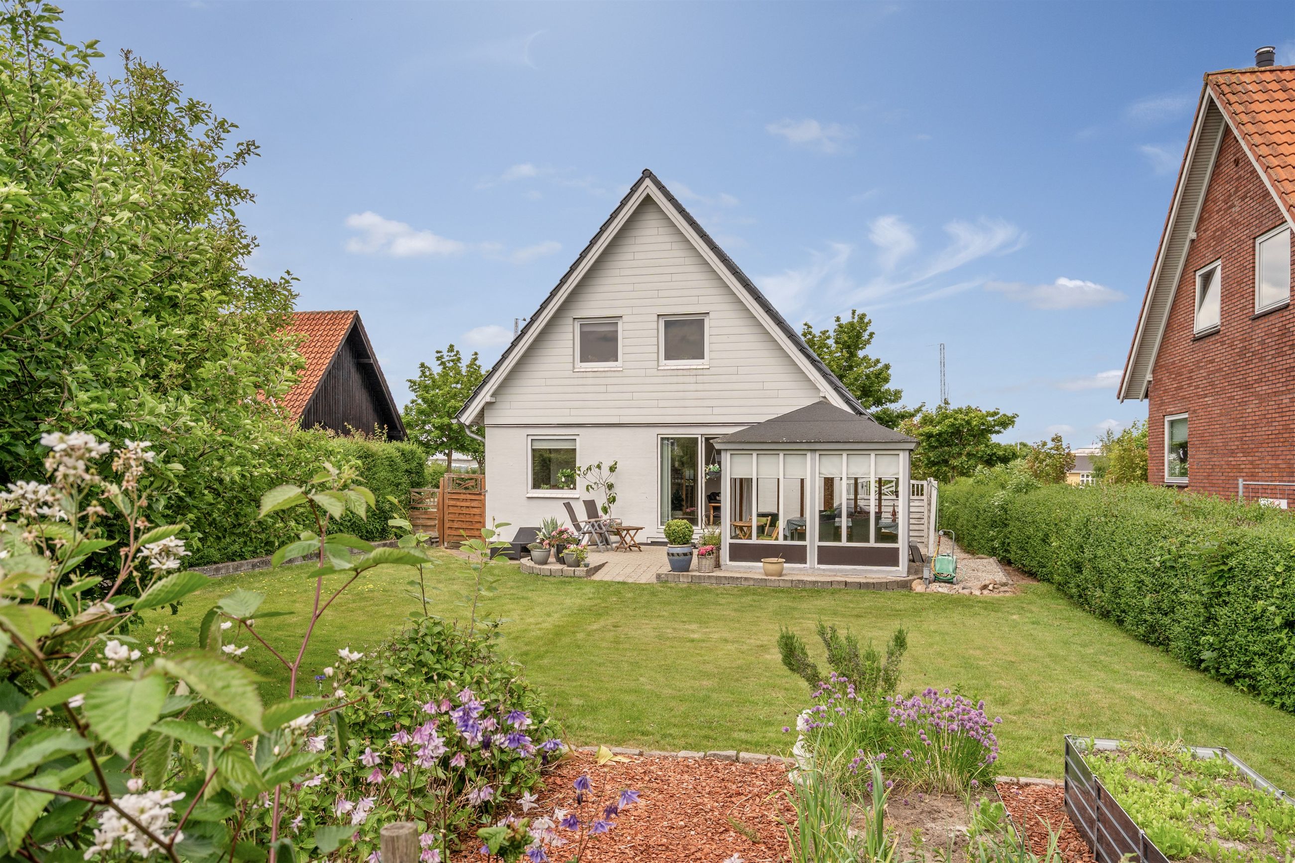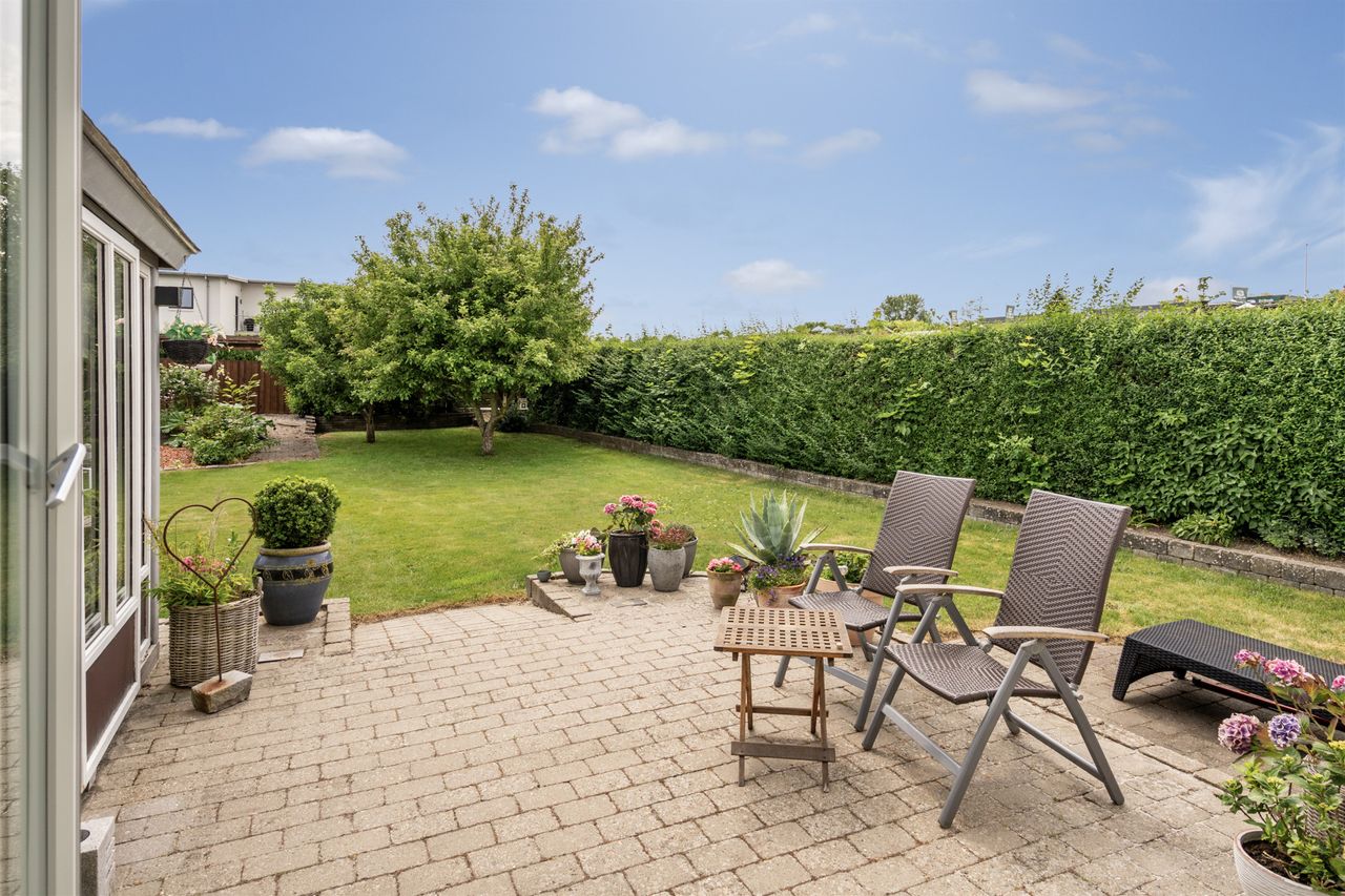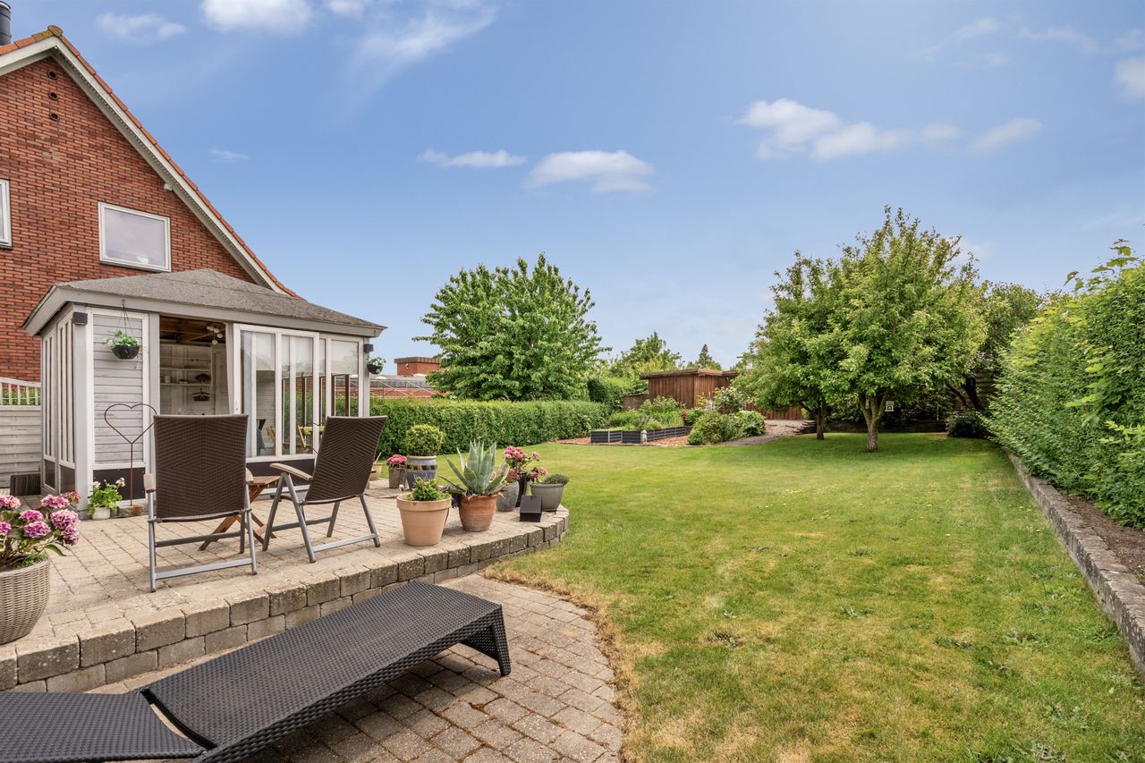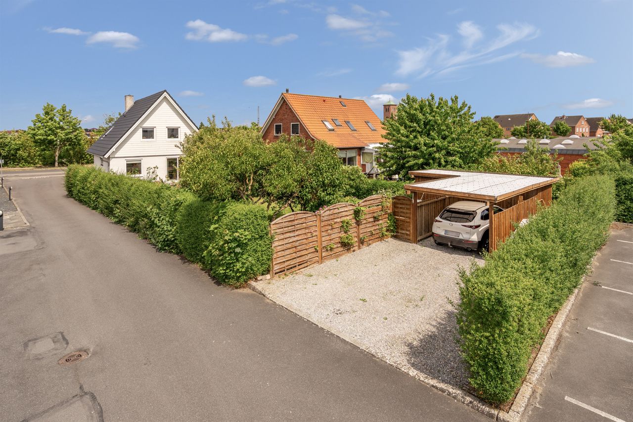 Haven er nem at holde og har en god størrelse – her er både plads til leg og afslapning. Den solrige terrasse inviterer til udendørs hygge med familie og venner. Derudover får du carport og gode parkeringsmuligheder på grunden.