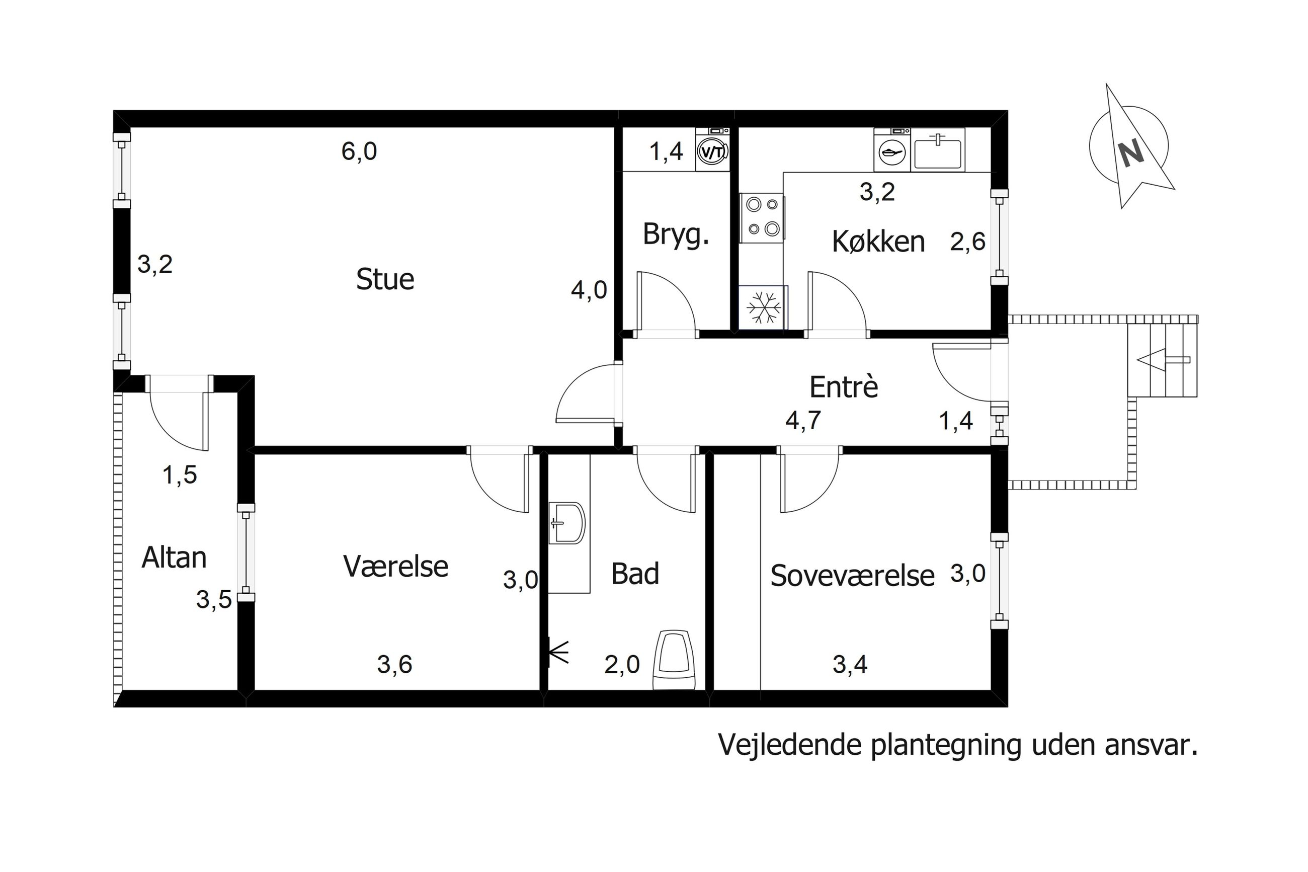 Når du træder ind i entréen, mødes du af en lys og indbydende bolig med en gennemtænkt planløsning. Den store stue er boligens naturlige samlingspunkt, hvor der både er plads til sofahjørne og spiseafdeling. Herfra er der direkte udgang til altanen, hvor du kan nyde solen og de fredelige omgivelser.