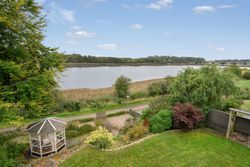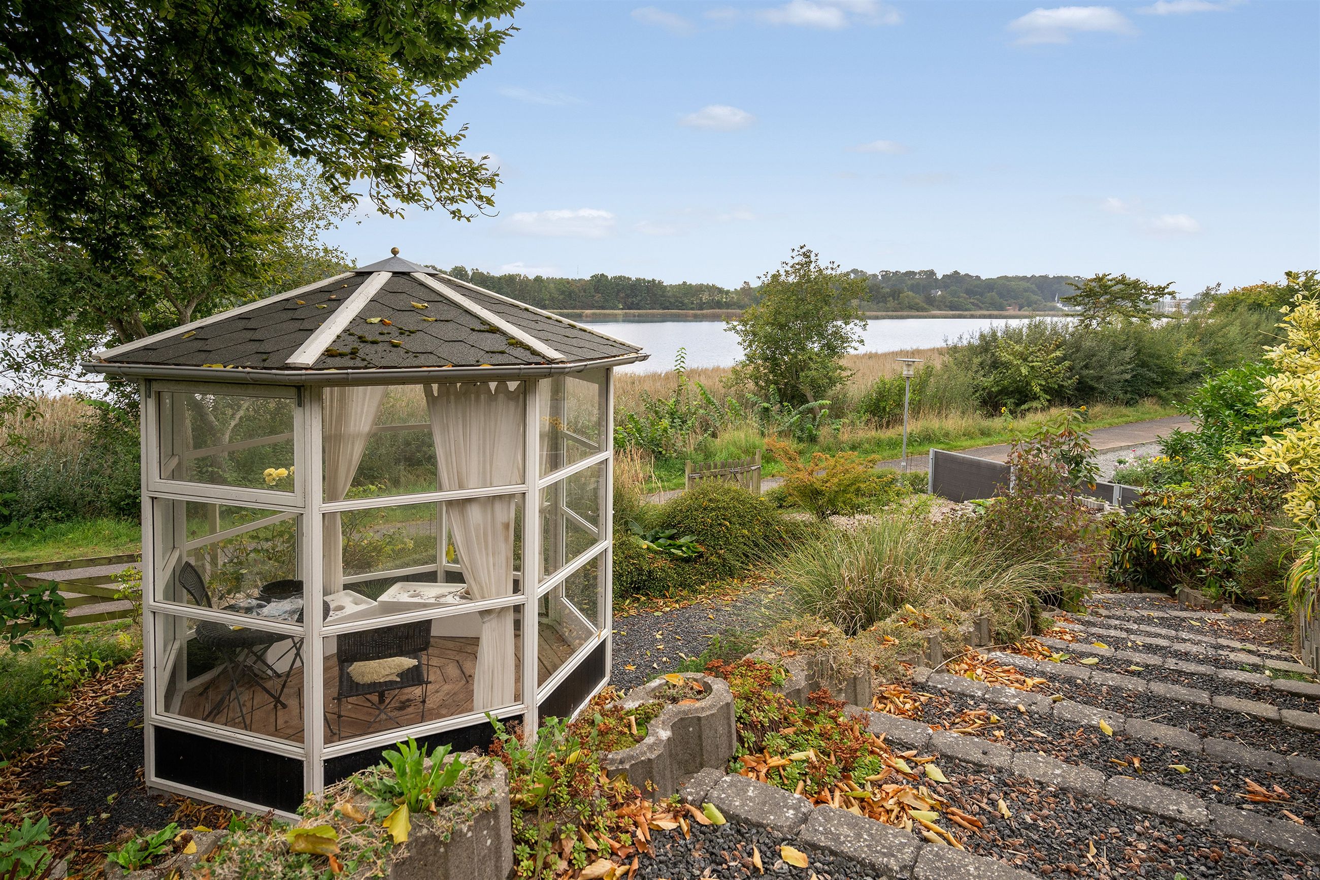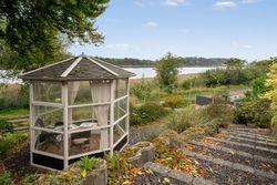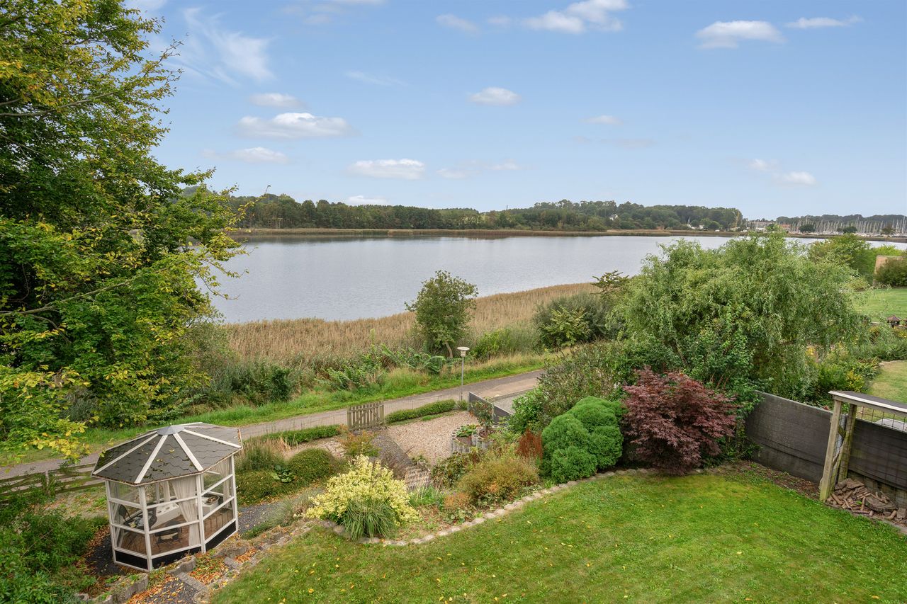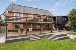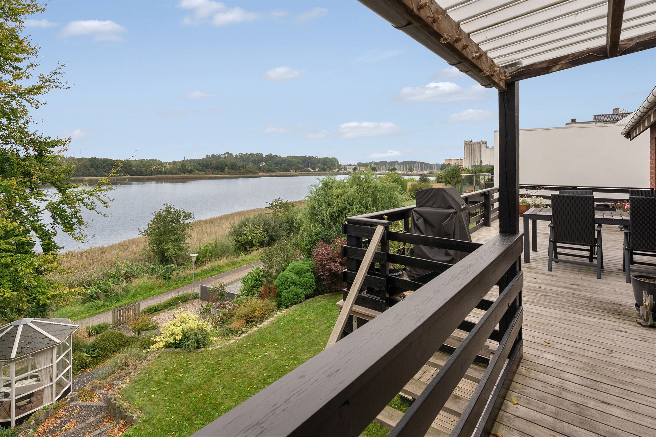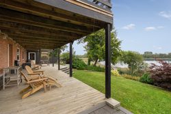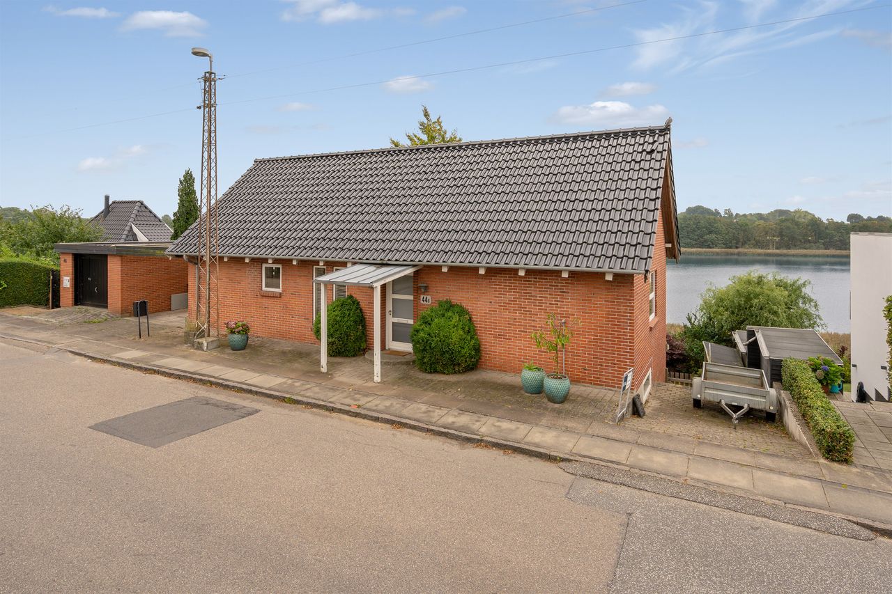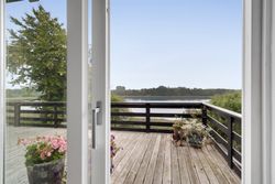 Ejendommen er omgivet af skønne udearealer, hvor udsigten til vandet konstant er i fokus. Her finder du både en stor træterrasse i stueplan og endnu en terrasse i underetagen, som skaber perfekte rammer for udendørs ophold gennem hele dagen. Dertil kommer en dejlig have, carport samt et praktisk redskabsrum.