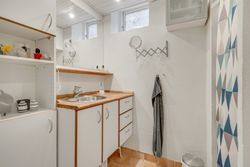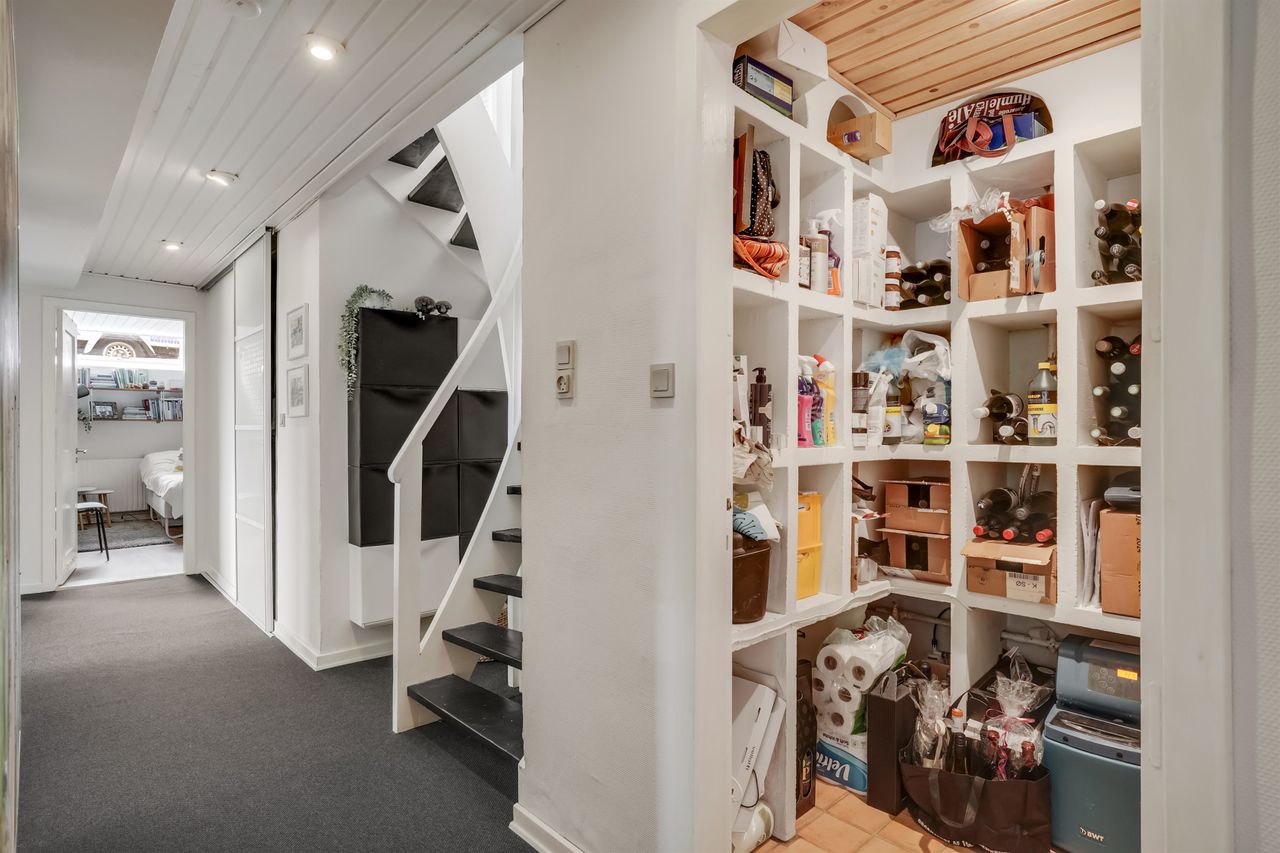 Underetagen byder på yderligere plads og funktionalitet – blandt andet fire gode værelser, vaskerum, endnu et badeværelse samt rigelig opbevaringsplads i fordelergangen med både viktualierum og disponibelt rum. Flere af underetagens rum har ligeledes glæde af den fantastiske udsigt.