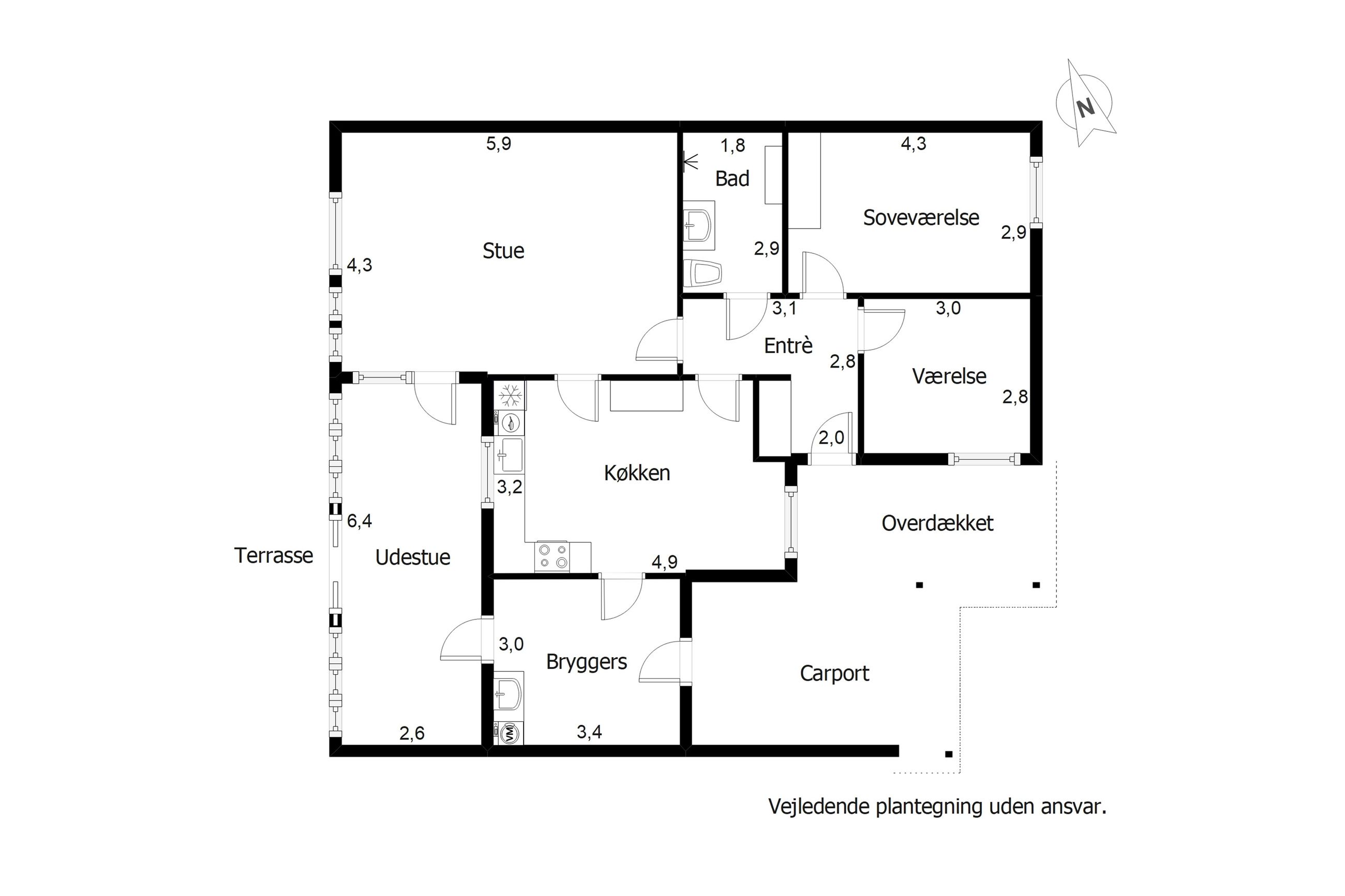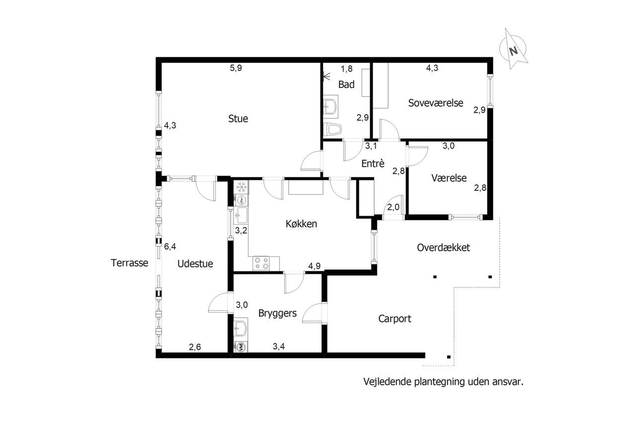 Udendørs venter en integreret carport, som har overdækning til entréen og bryggerset, så du kan gå tørskoet ind i huset. Herudover er der en hyggelig have/gårdhave, hvor du kan finde sol og læ hele dagen.
