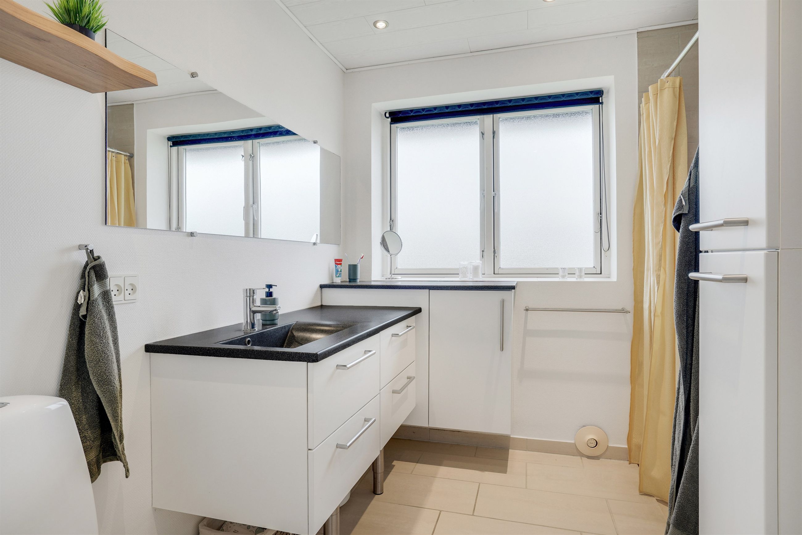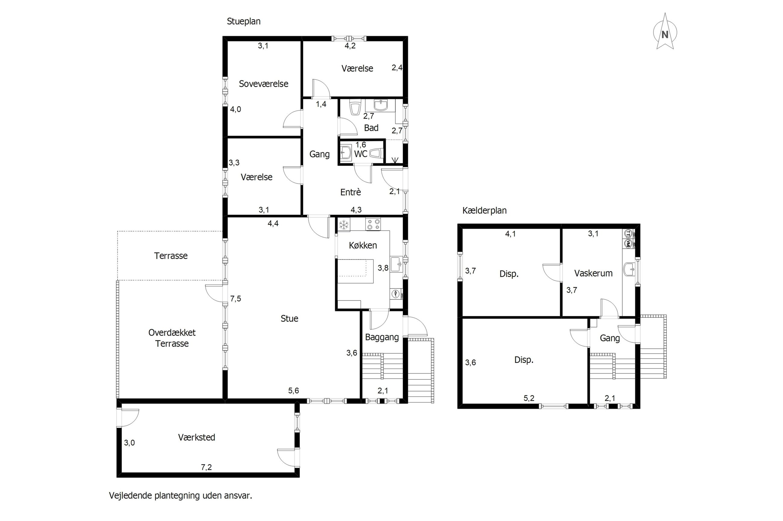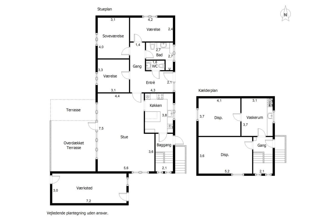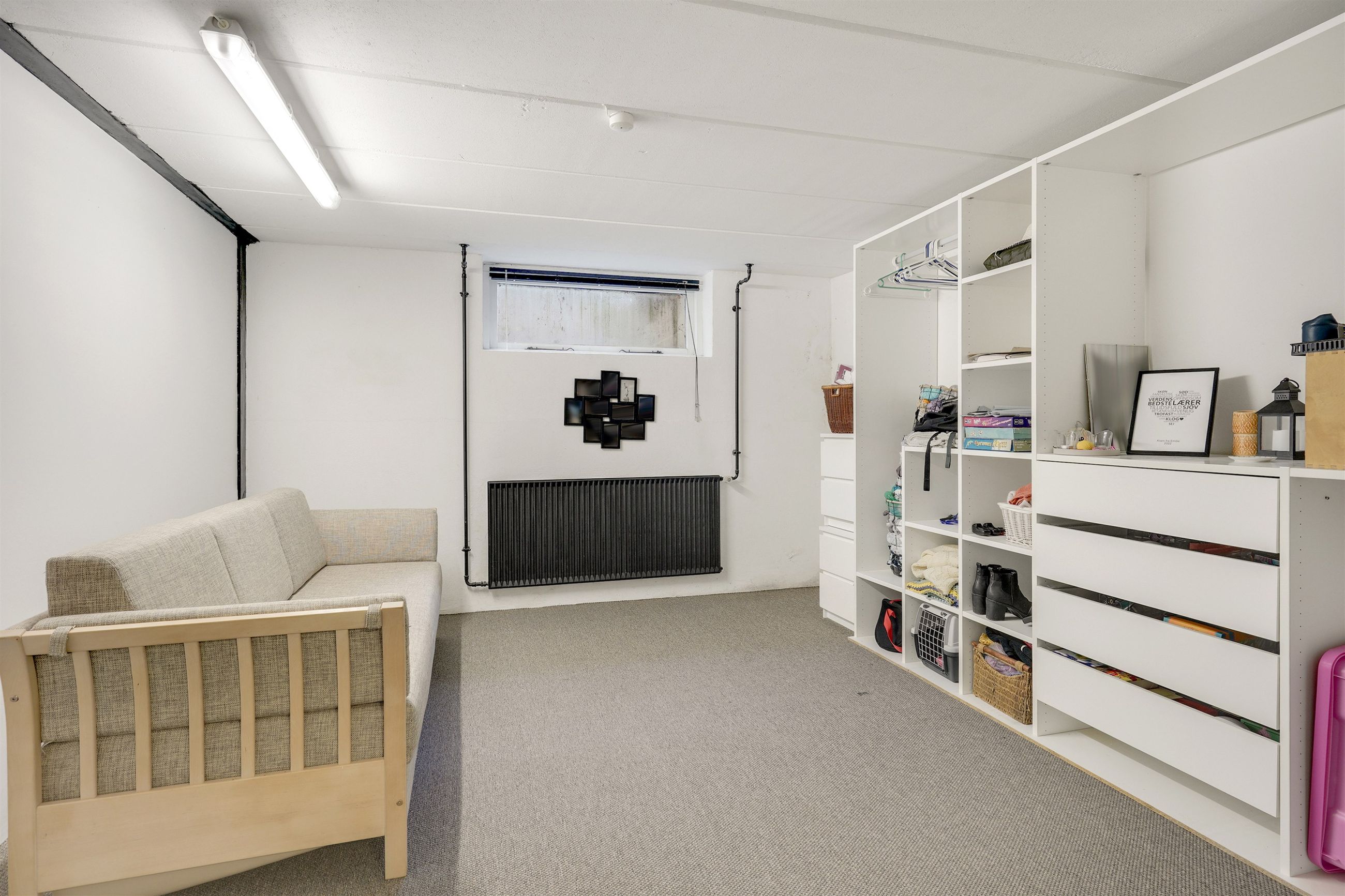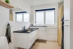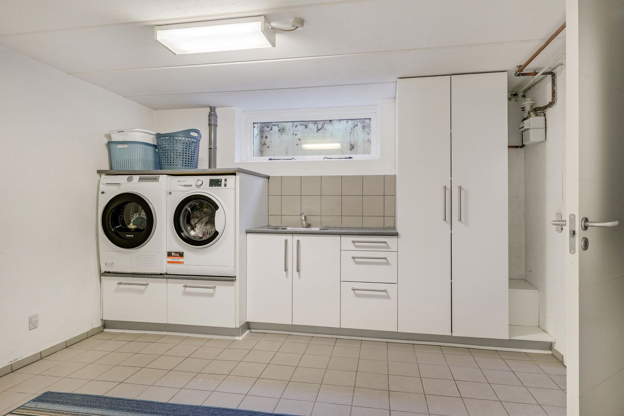 Kælderen byder på ekstra plads og fleksible muligheder. Her findes et vaskerum med god bordplads og håndvask samt to gode disponible rum, der kan anvendes som hobbyrum, opbevaring, fitnessrum eller lignende.