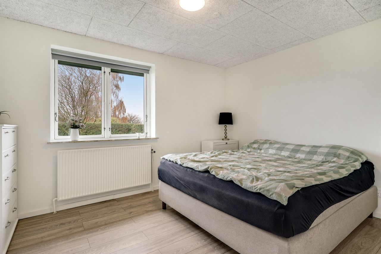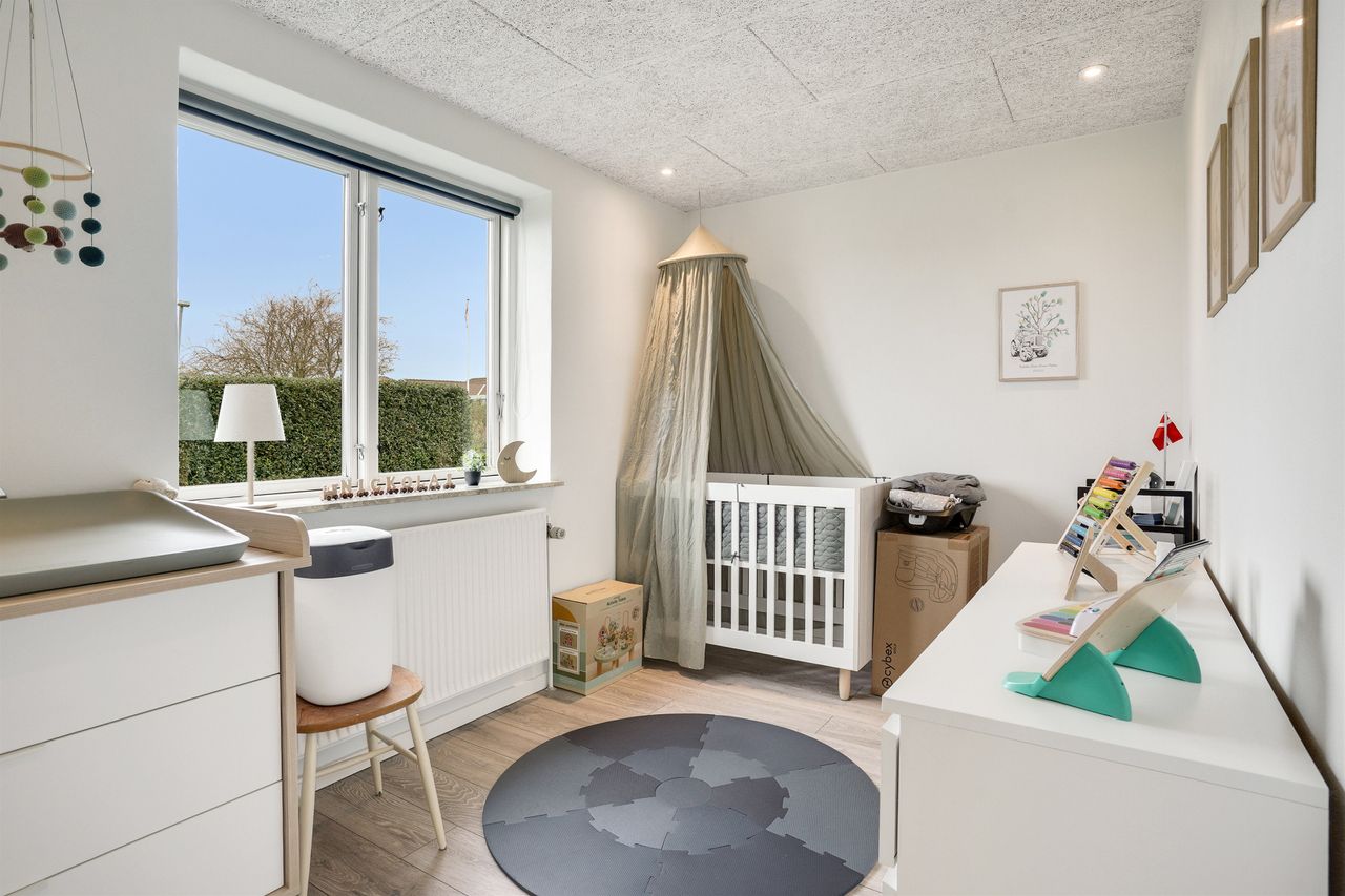 Boligens værelsesafdeling består af tre gode og rummelige værelser samt et lyst og funktionelt badeværelse, som er praktisk placeret tæt ved værelserne.