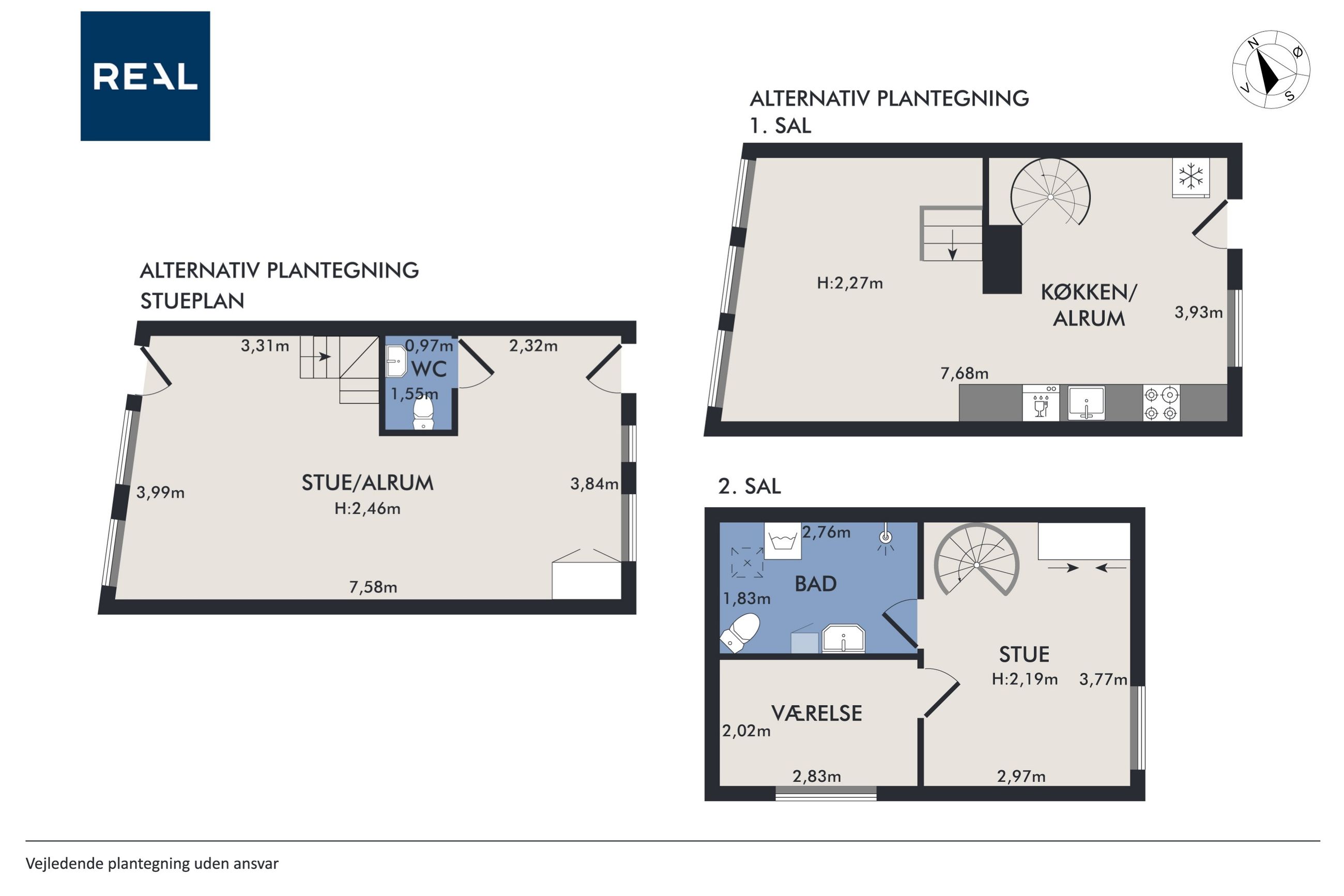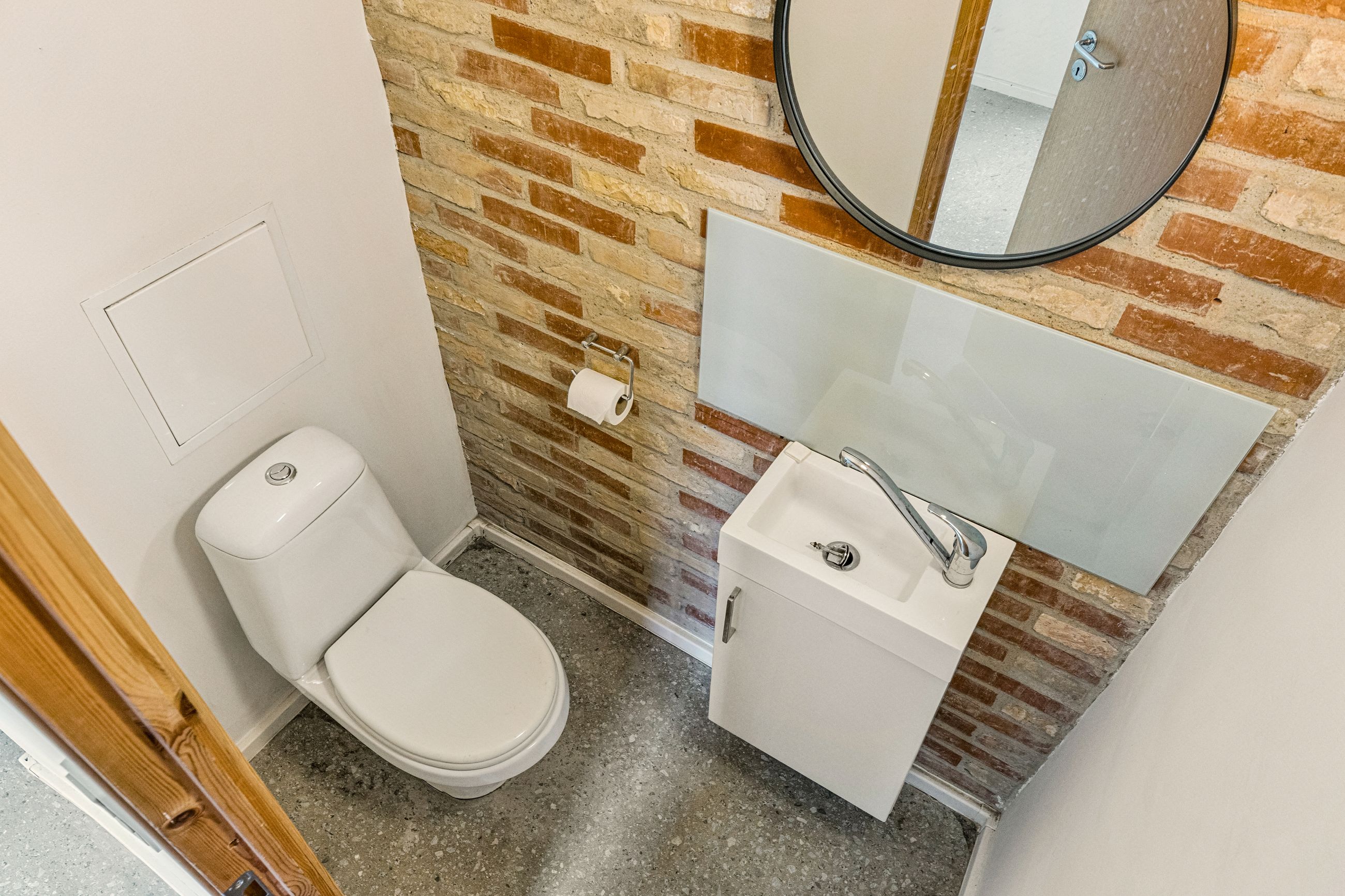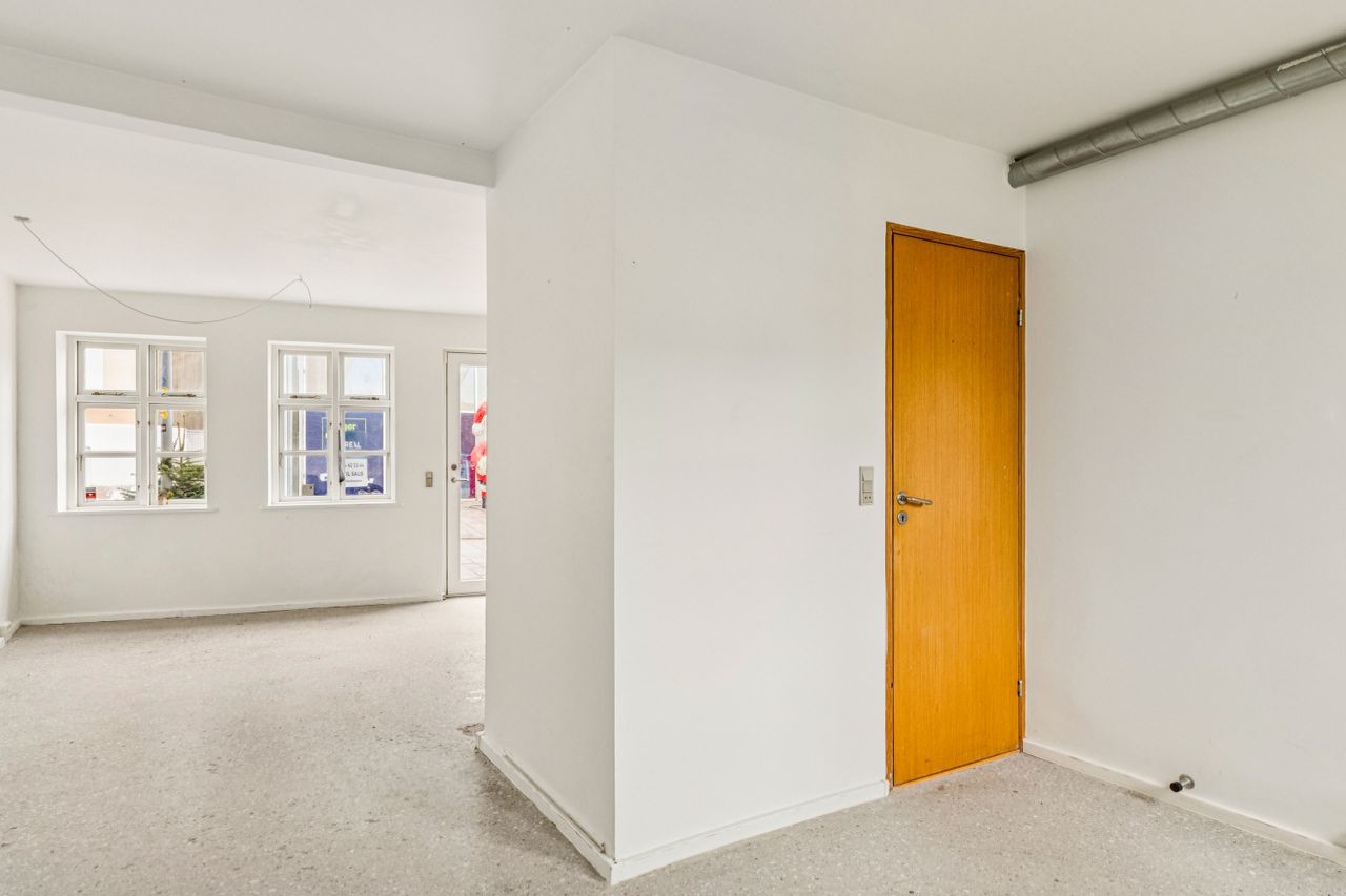 Når du træder ind i stueplan, enten fra gågaden eller gennem den hyggelige baggård, mødes du af et rummeligt og åbent opholdsareal med mange indretningsmuligheder samt et praktisk toilet. Der er desuden mulighed for at etablere en trappe fra stueplan til første sal, hvilket kan skabe en endnu mere sammenhængende bolig – se alternativ plantegning.