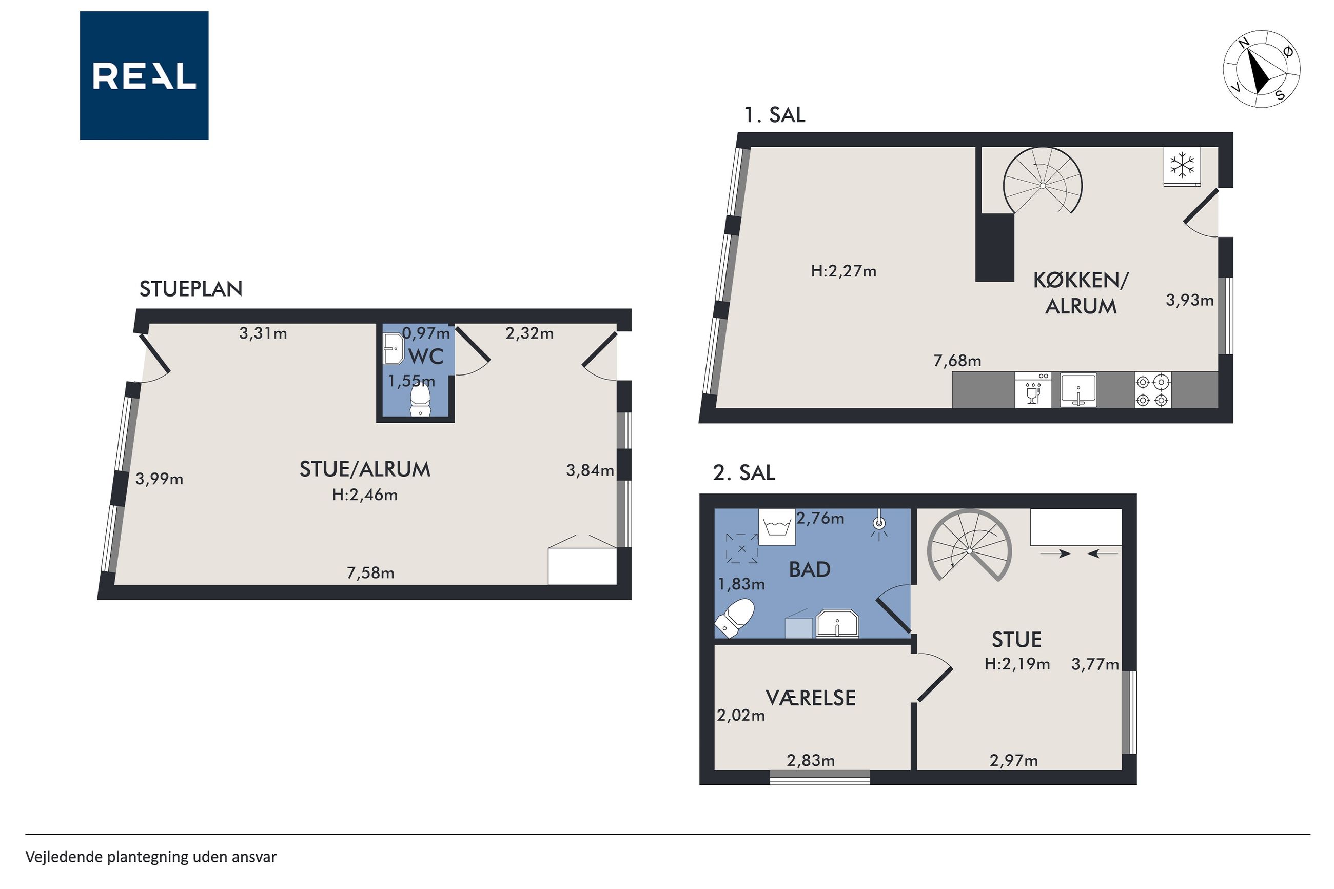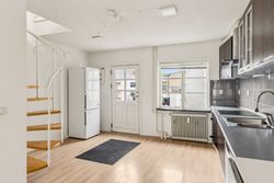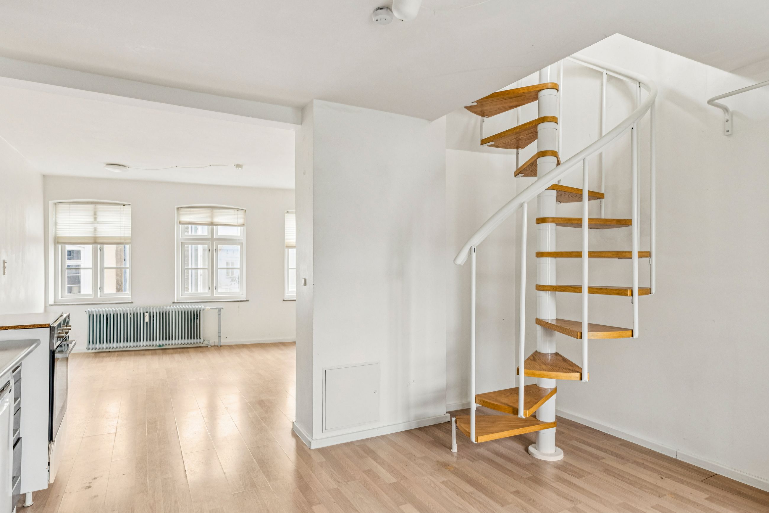 Fra baggården fører trappen dig i dag op til første sal, hvor et lyst og indbydende køkkenalrum og stue breder sig i ét sammenhængende rum, let opdelt af en halvvæg, som skaber både luft og struktur. Her er god plads til både hverdagsliv og boligindretning. På anden sal finder du en hyggelig repos/stue, et værelse samt et pænt og rummeligt badeværelse. Etagen fungerer som en dejlig privat afdeling med plads afslapning.