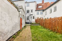 Den lille baggård fungerer som et hyggeligt og uforstyrret åndehul midt i byen. Her kan du indrette et lille siddeområde, plantekrukker eller skabe en grøn oase, hvor du kan nyde roen væk fra gågadens liv – et perfekt sted til morgenkaffen eller en stille stund i det fri.