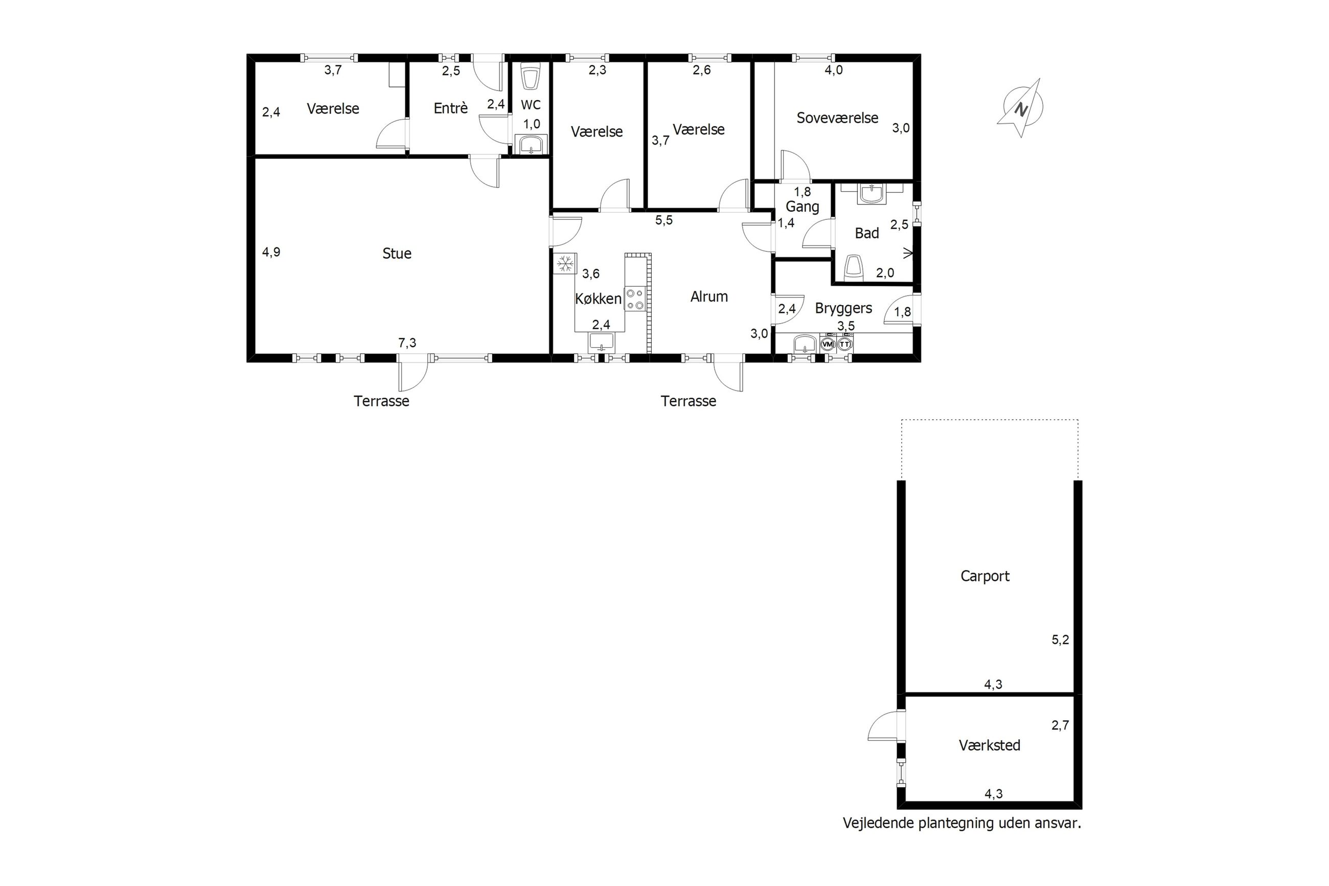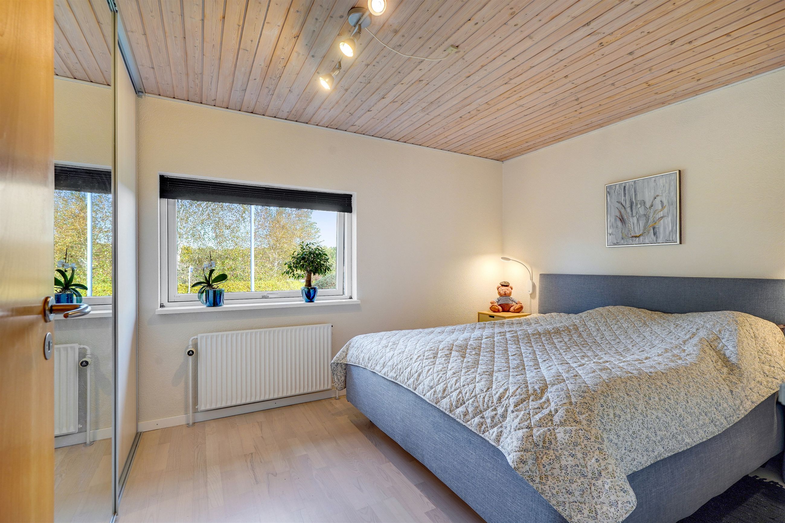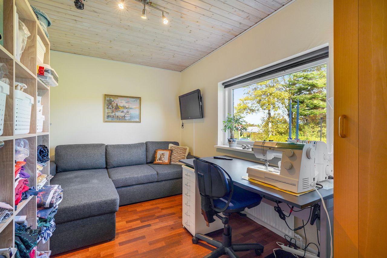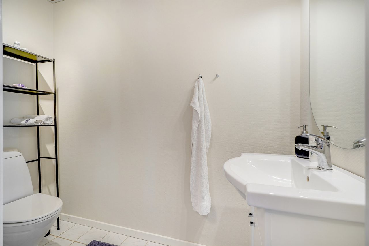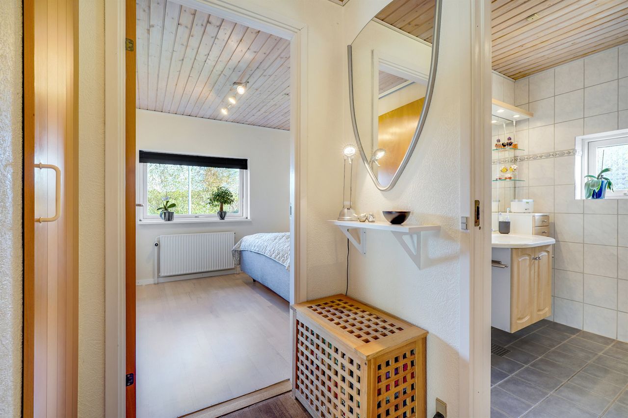 Planløsningen er særdeles velfungerende med hele fire soveværelser, hvilket giver mange indretningsmuligheder – uanset om behovet er børneværelser, hjemmekontor eller gæsteværelse. Derudover råder boligen over to toiletter, hvoraf det ene har bruseniche, samt en pæn entre med egen indgang.