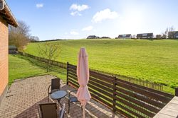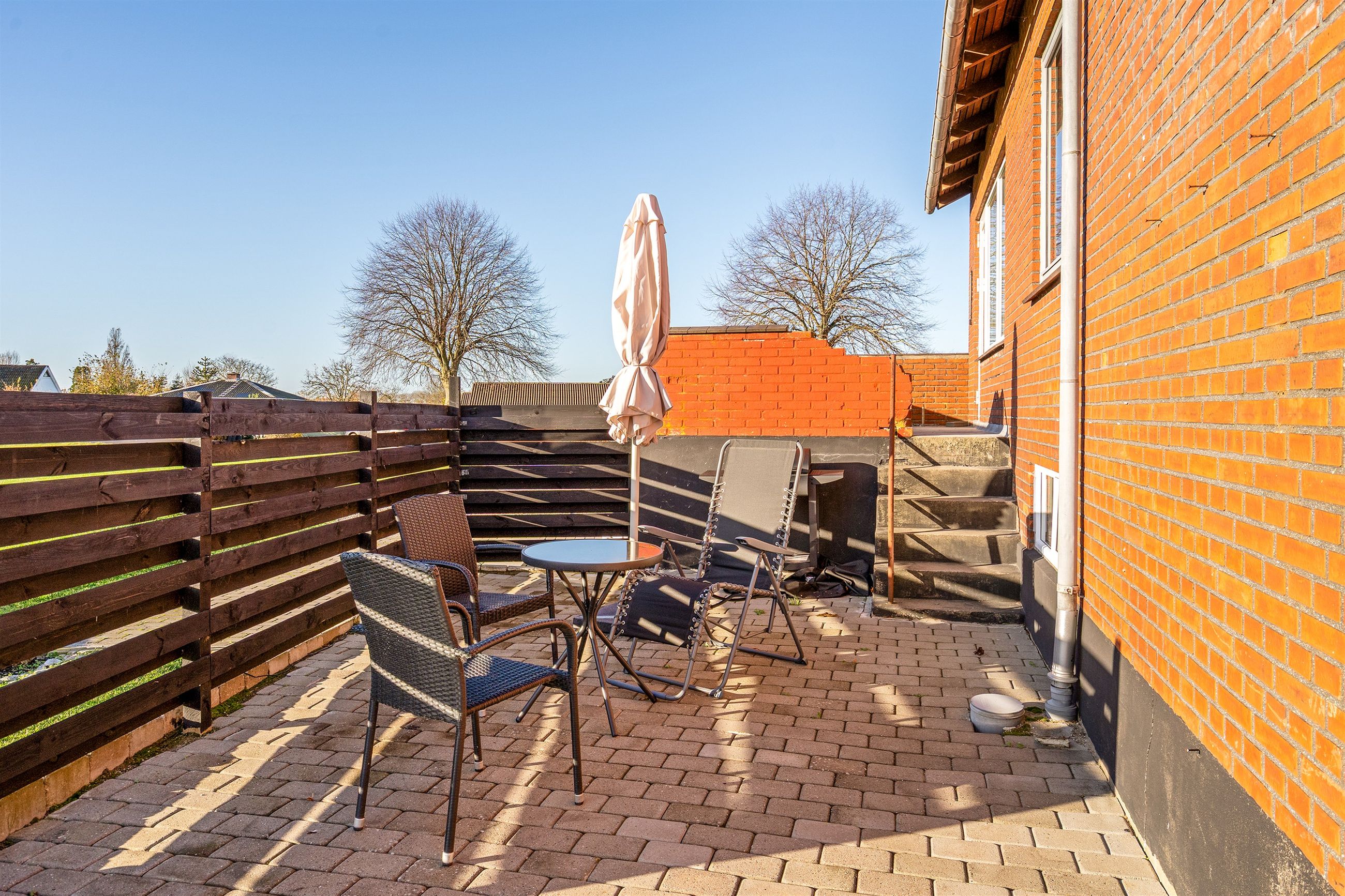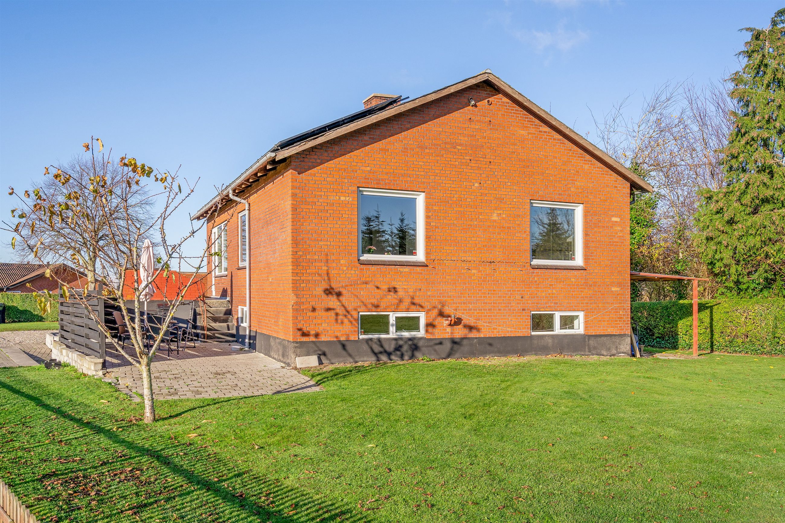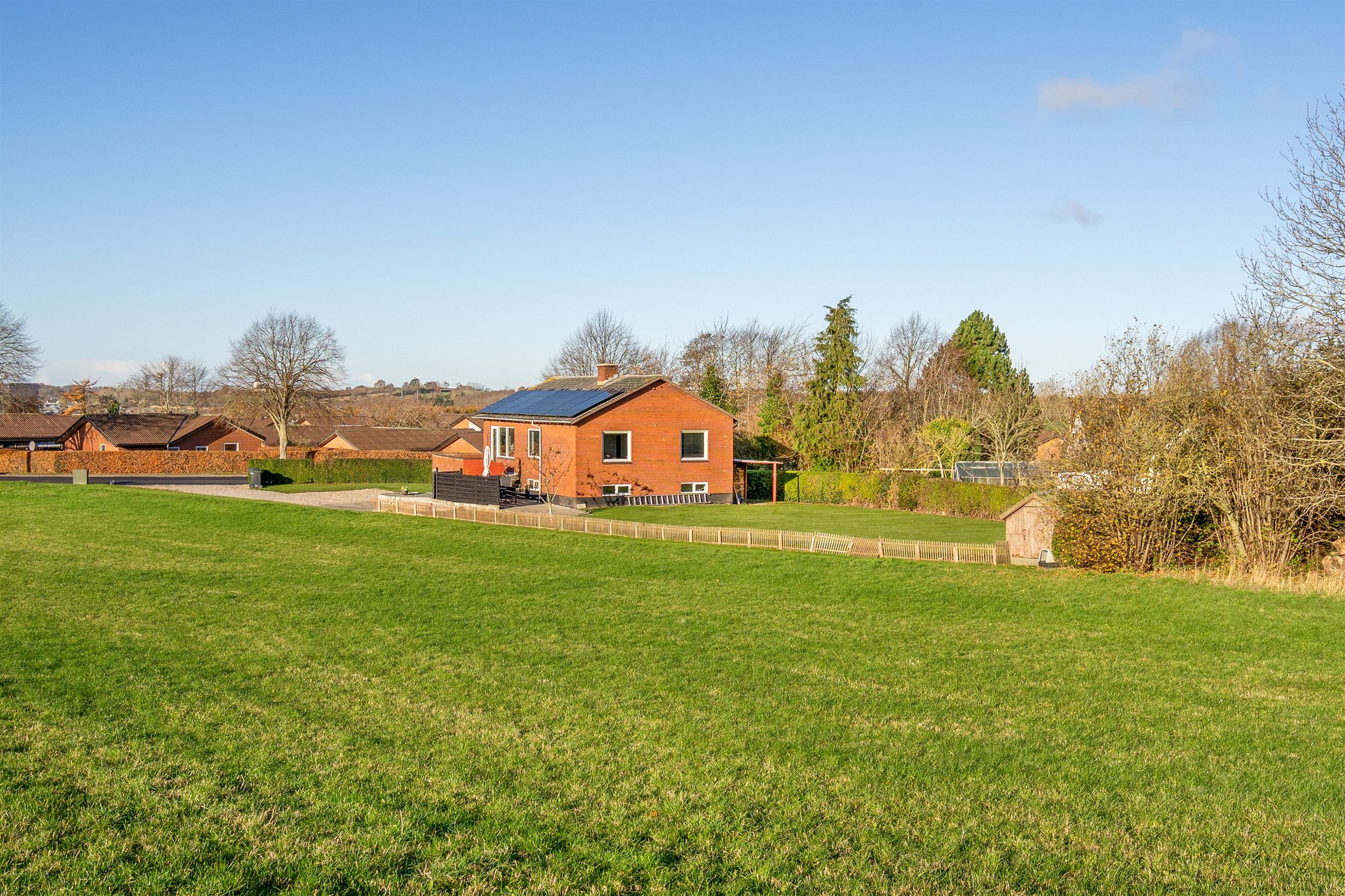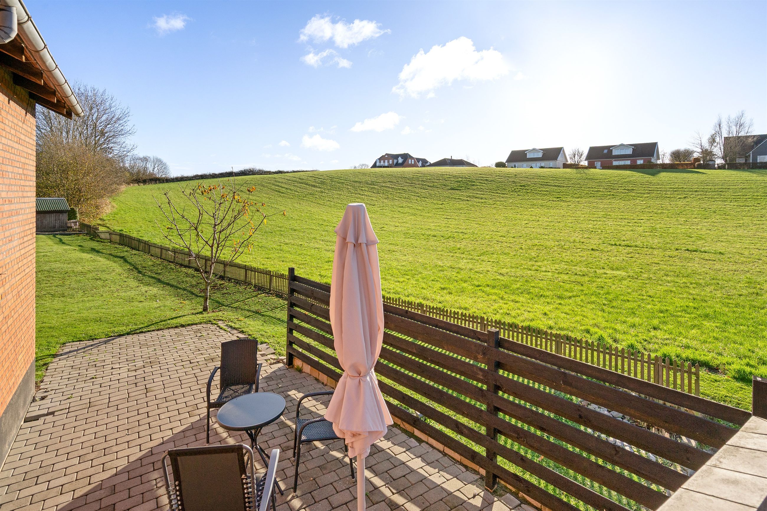 Skøn have og naturskøn beliggenhedUdenfor venter en dejlig, overskuelig have med terrasse og rig mulighed for at nyde de naturskønne omgivelser. Haven er nem at holde, og fra terrassen kan du nyde den åbne udsigt til markerne, som skaber en fredfyldt atmosfære. Der er adgang til både stueplan og kælder fra haven, hvilket gør hverdagen ekstra praktisk.