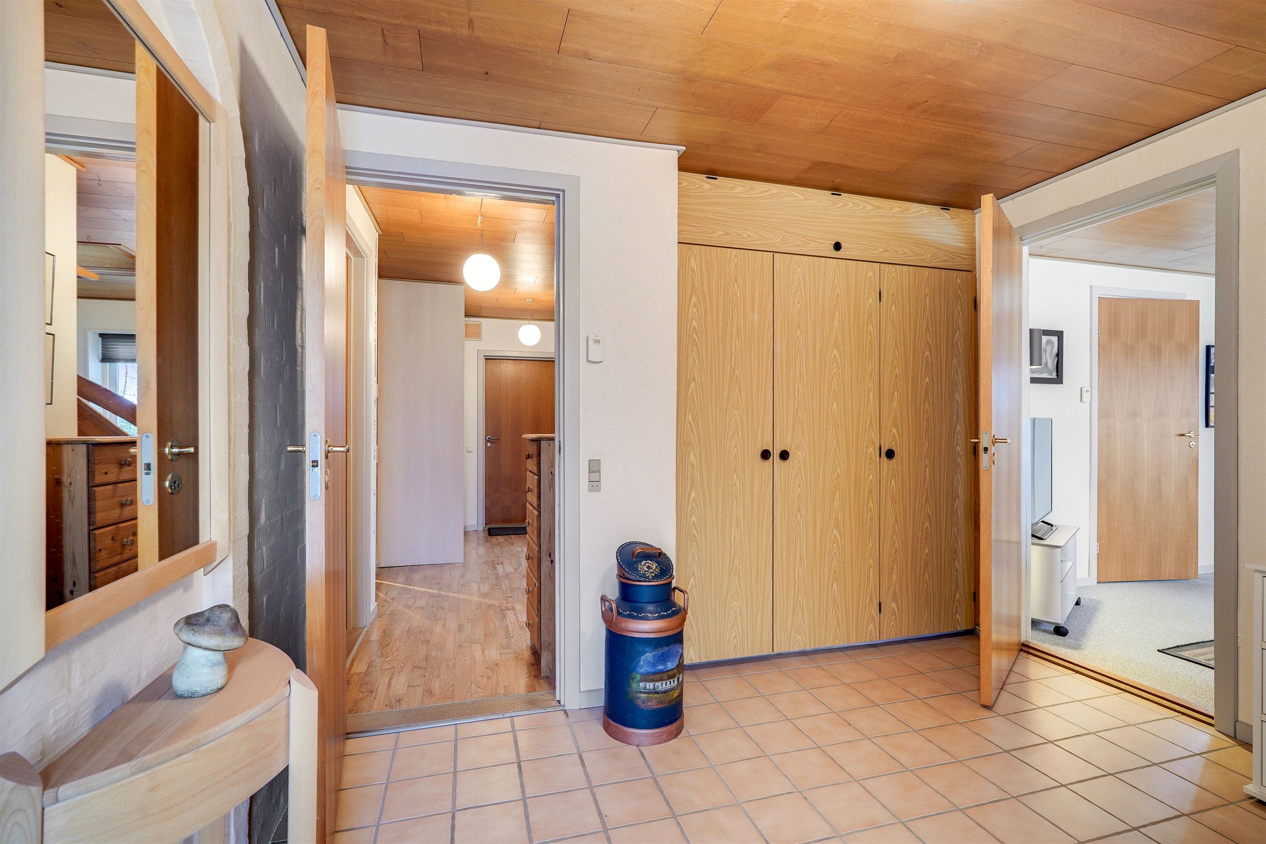 Når du træder ind i den store, åbne entré, bydes du velkommen af flotte klinker og indbyggede skabe, der giver masser af opbevaringsmuligheder. Fra entréen kommer du videre til den lyse og rummelige stue, der naturligt opdeles i en vinkel. Her får du et fantastisk lysindfald og kig til vandet, der kun er en kort gåtur væk.