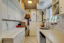 Fra stuen træder du ind i det velholdte køkken, som har direkte udgang til terrassen – ideelt for de hyggelige middage eller morgenkaffen i solen. Køkkenet har god plads til en spiseplads og mulighed for at åbne op og skabe et køkken-alrum og stue ud i ét.
