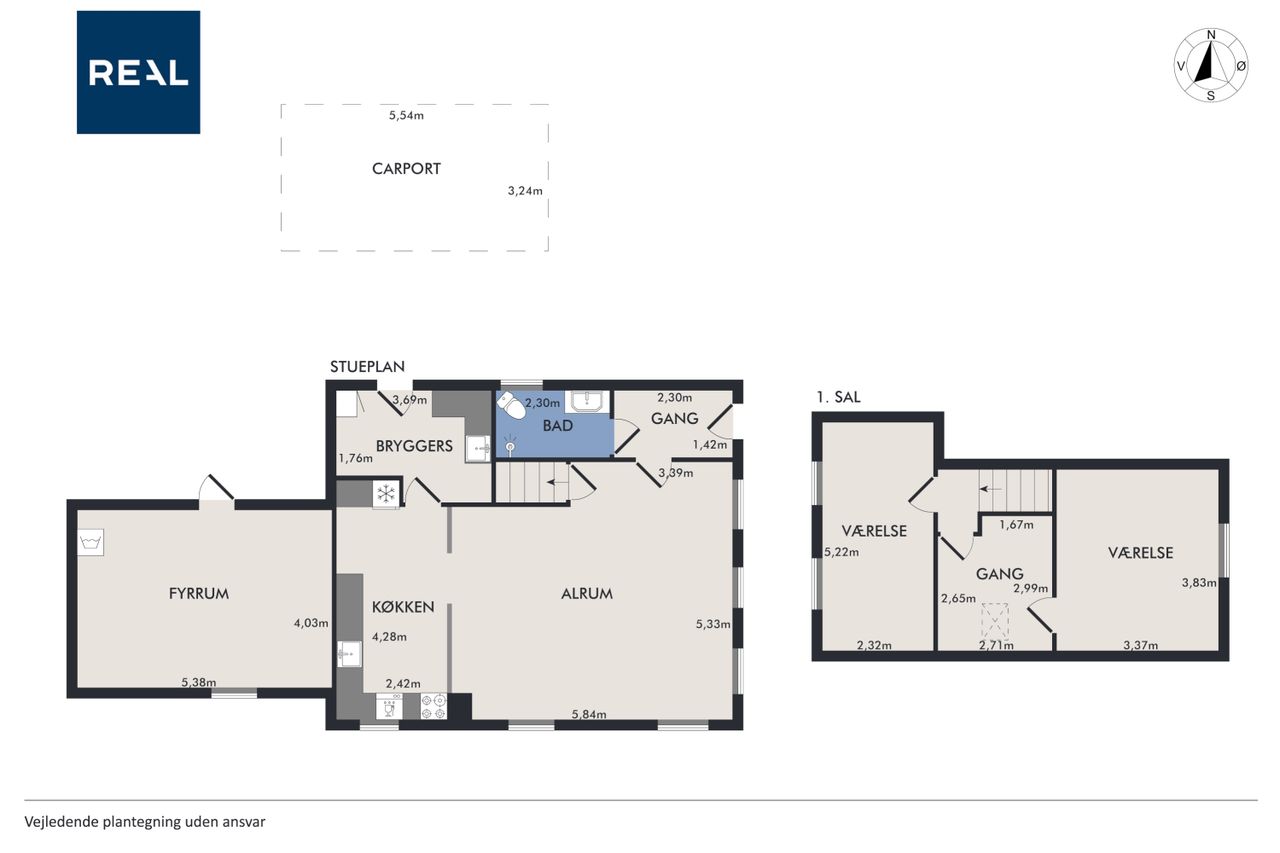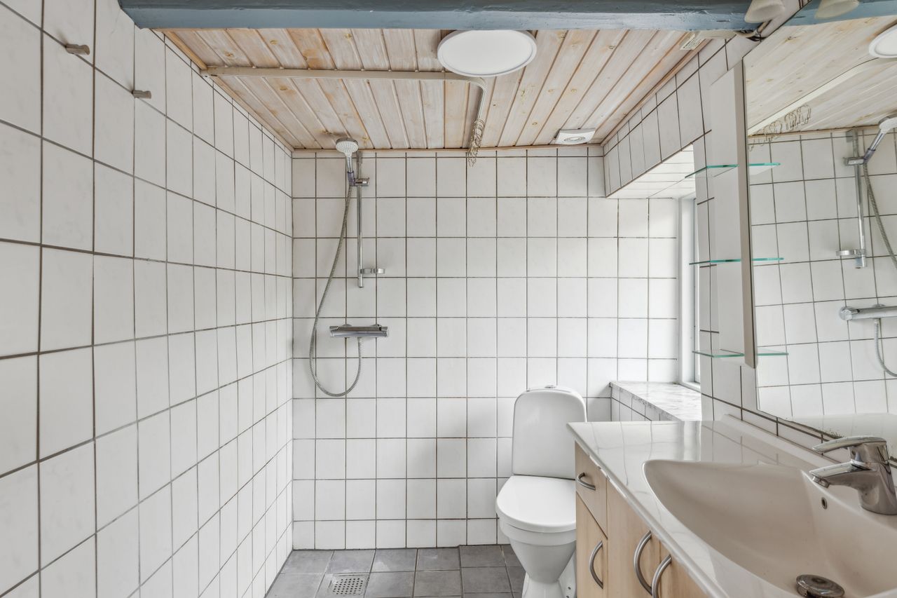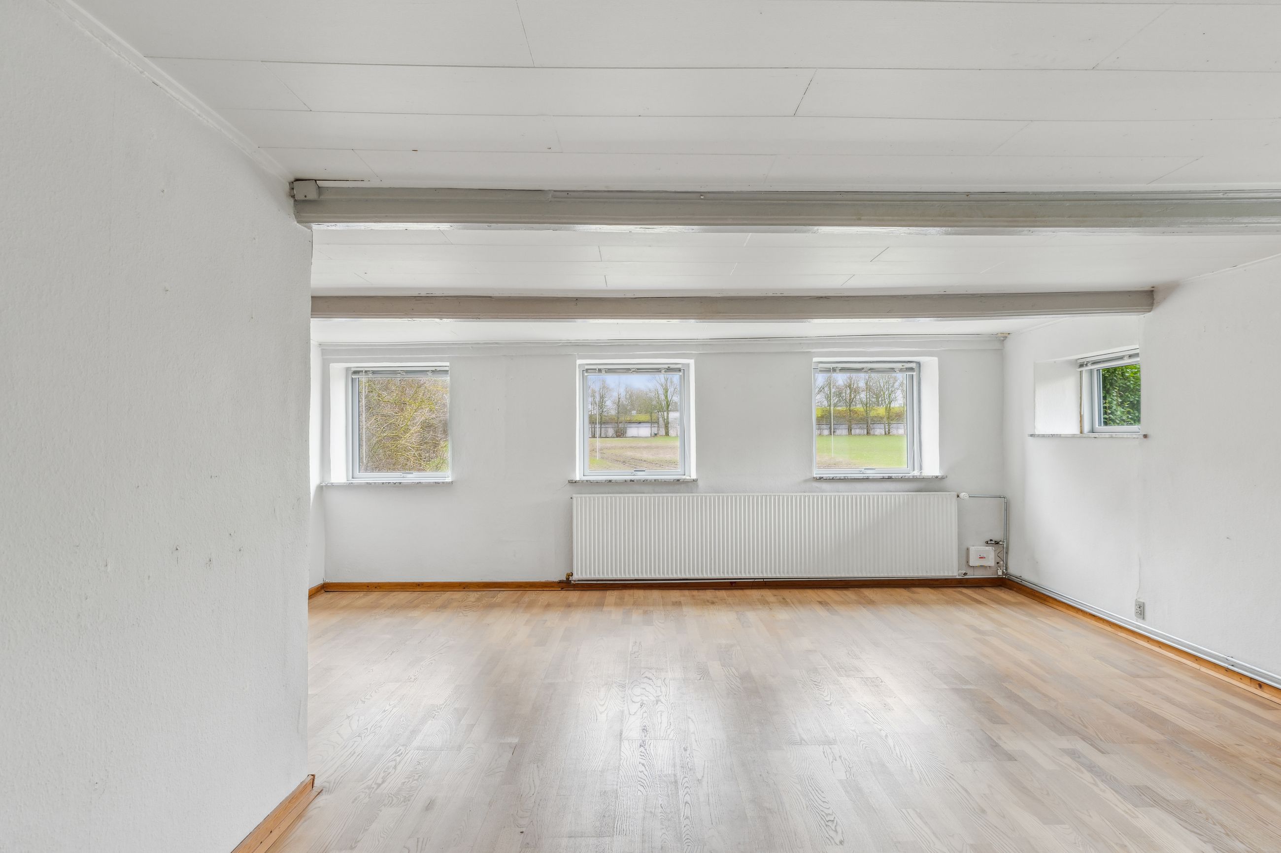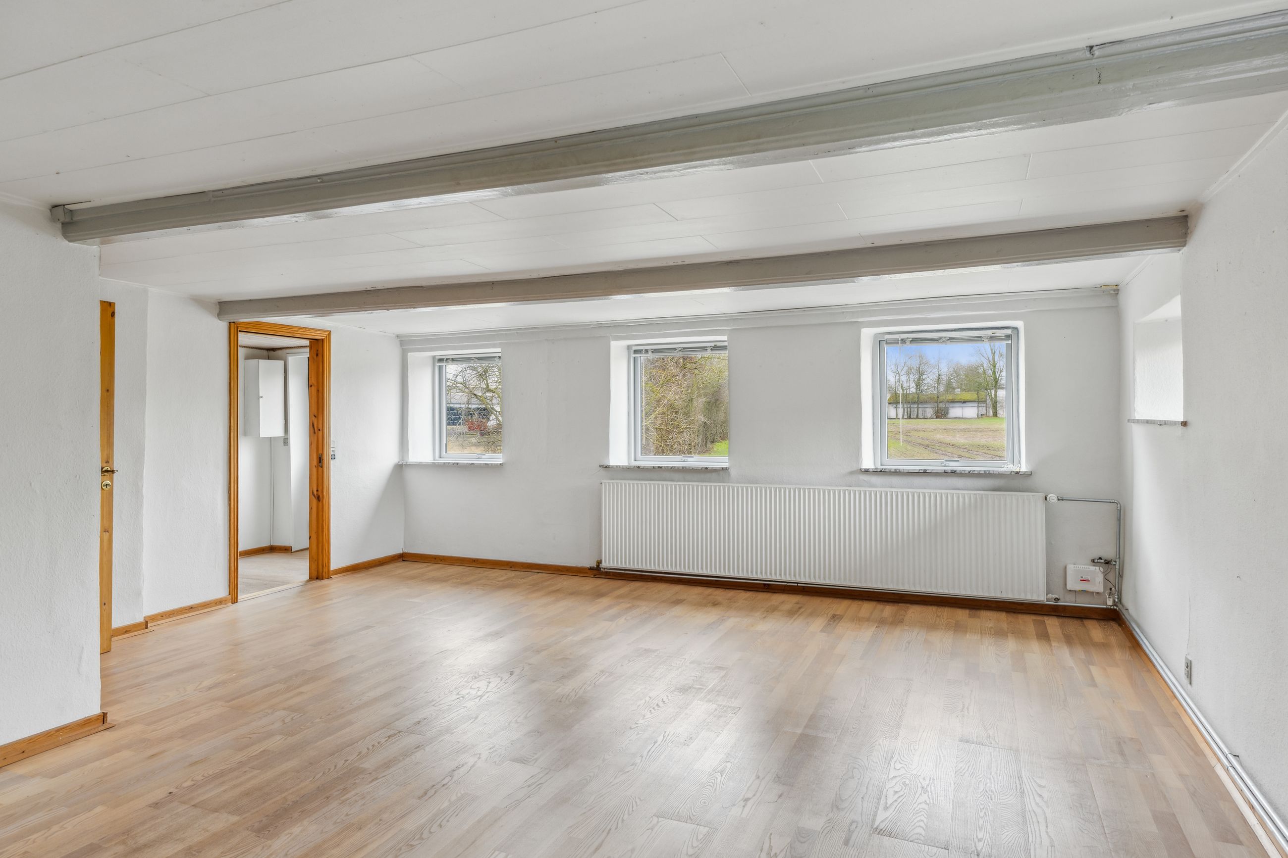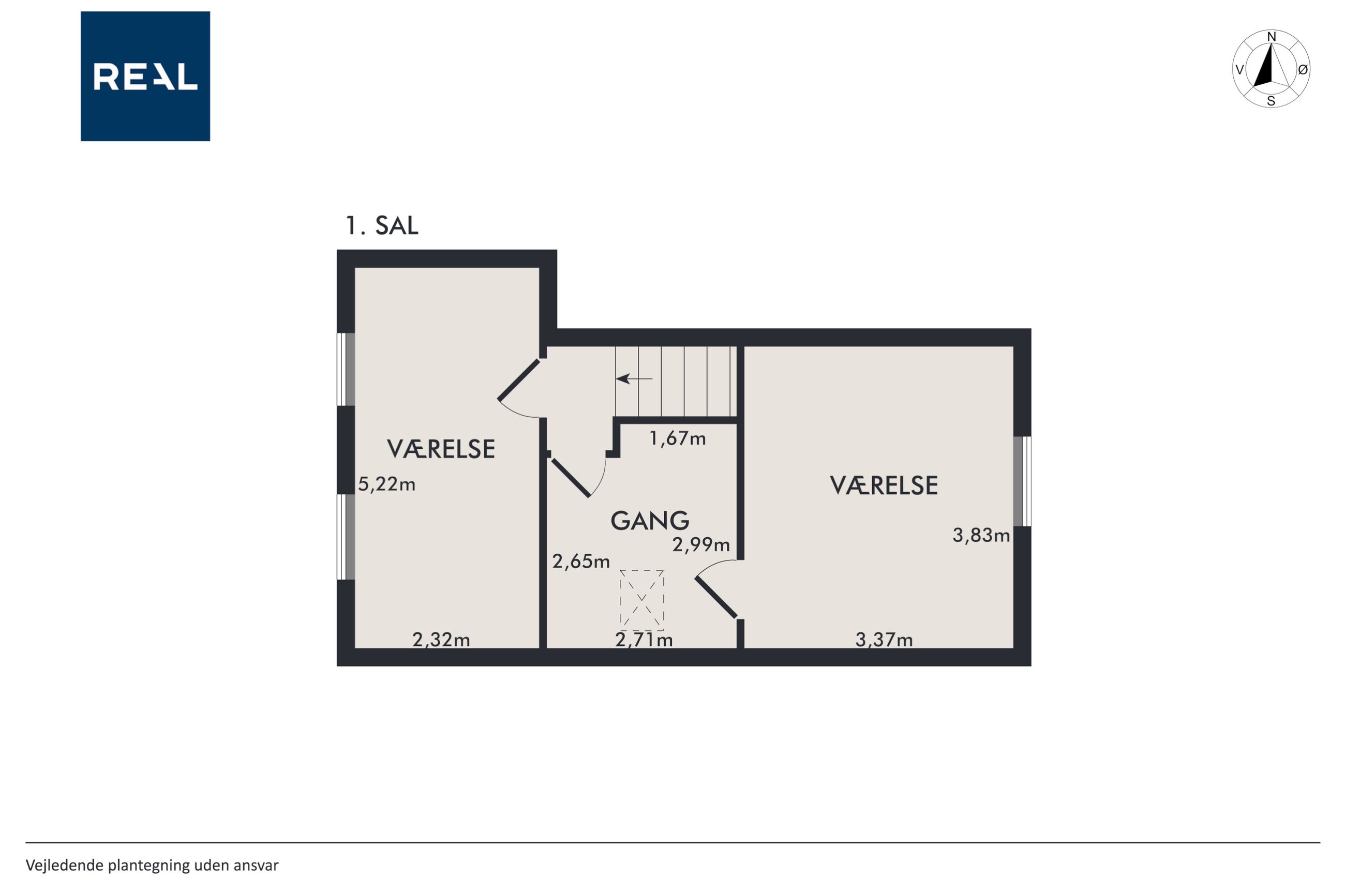 Fra alrummet fører trappen op til førstesalen, hvor en fordelergang giver adgang til to gode værelser. Her er også mulighed for at indrette et hyggeligt hjemmekontor eller udnytte pladsen på kreativ vis.