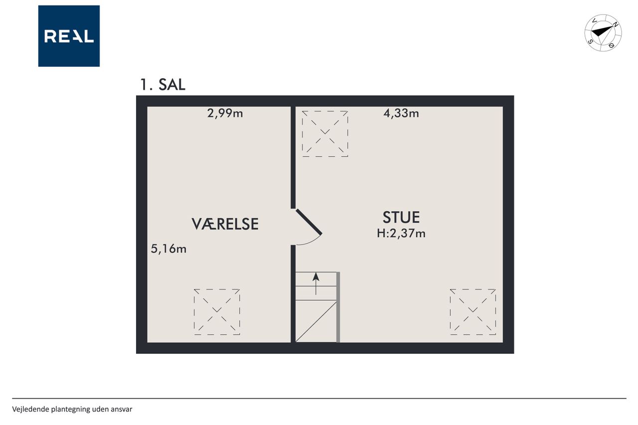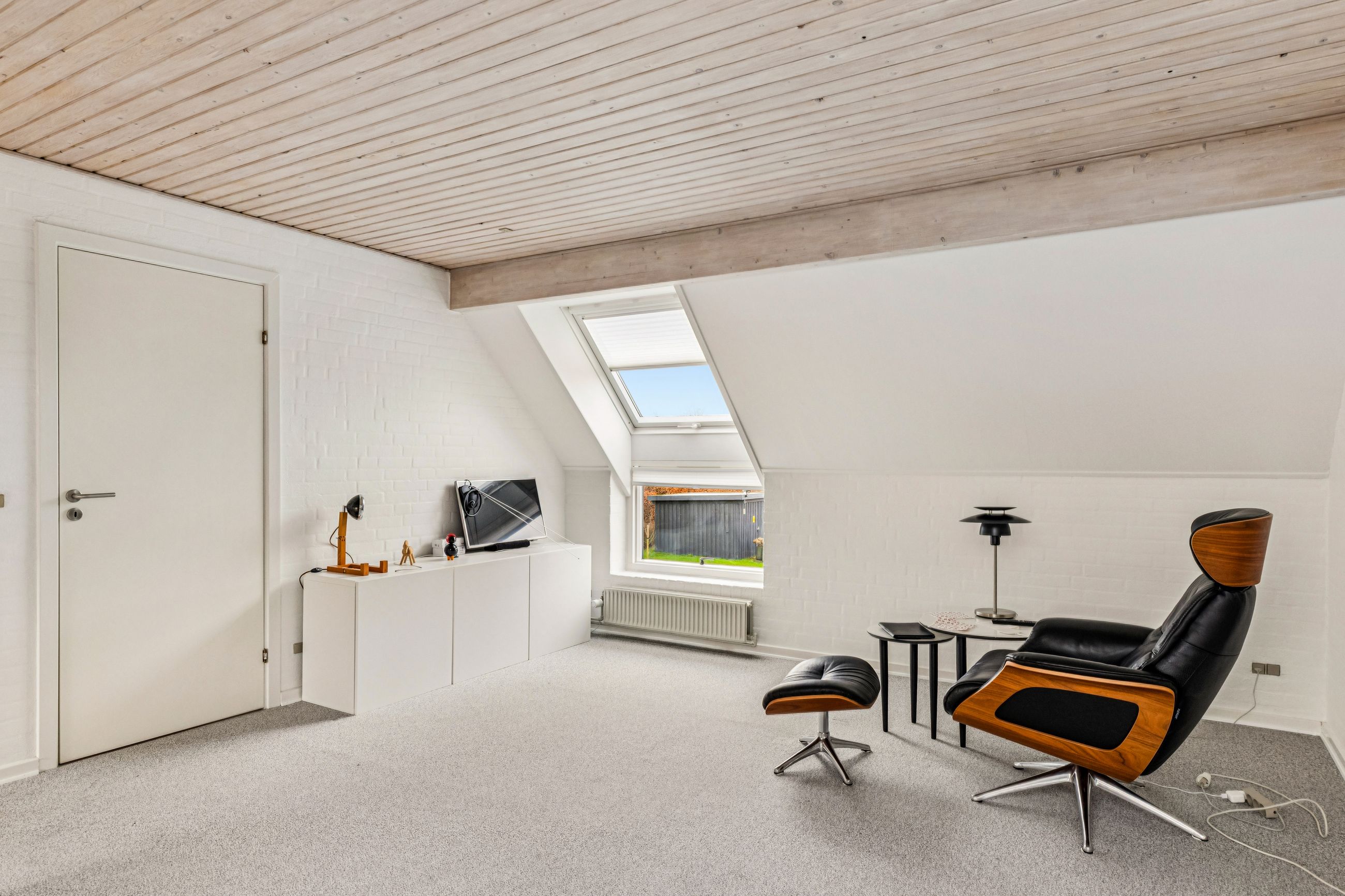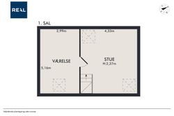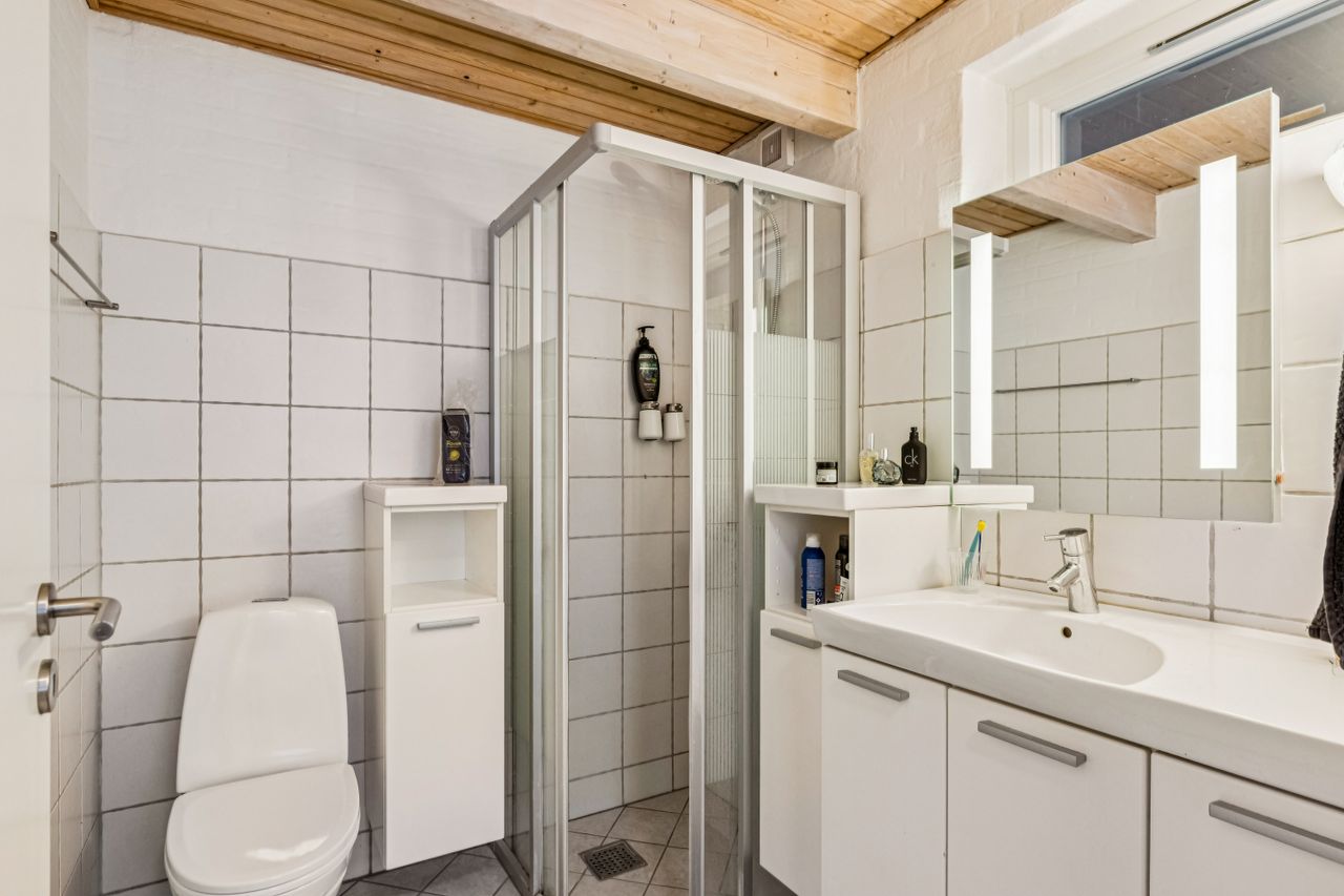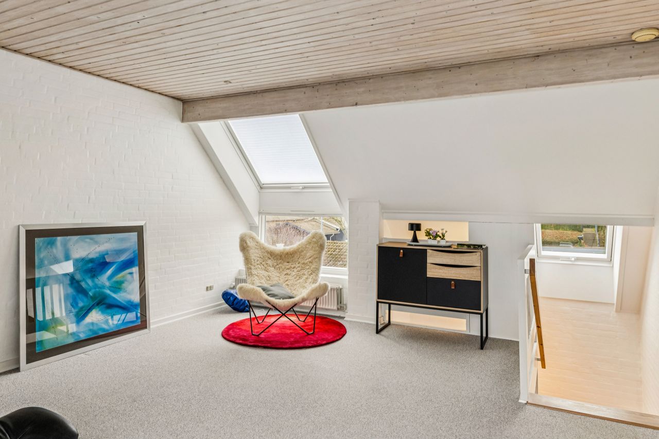 På førstesalen findes en rummelig og lys stue med god loftshøjde og mange indretningsmuligheder. Her er der plads til både sofaarrangement og eventuel arbejdsplads. Et ekstra værelse på etagen giver yderligere fleksibilitet i indretningen og kan anvendes som soveværelse, kontor eller gæsteværelse.