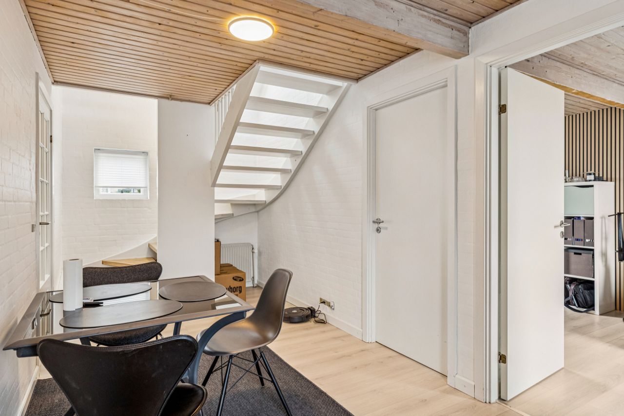 Boligens indretning gør den særdeles velegnet til både enlige, par og den lille familie, der ønsker en overskuelig bolig med god plads og en rolig beliggenhed.