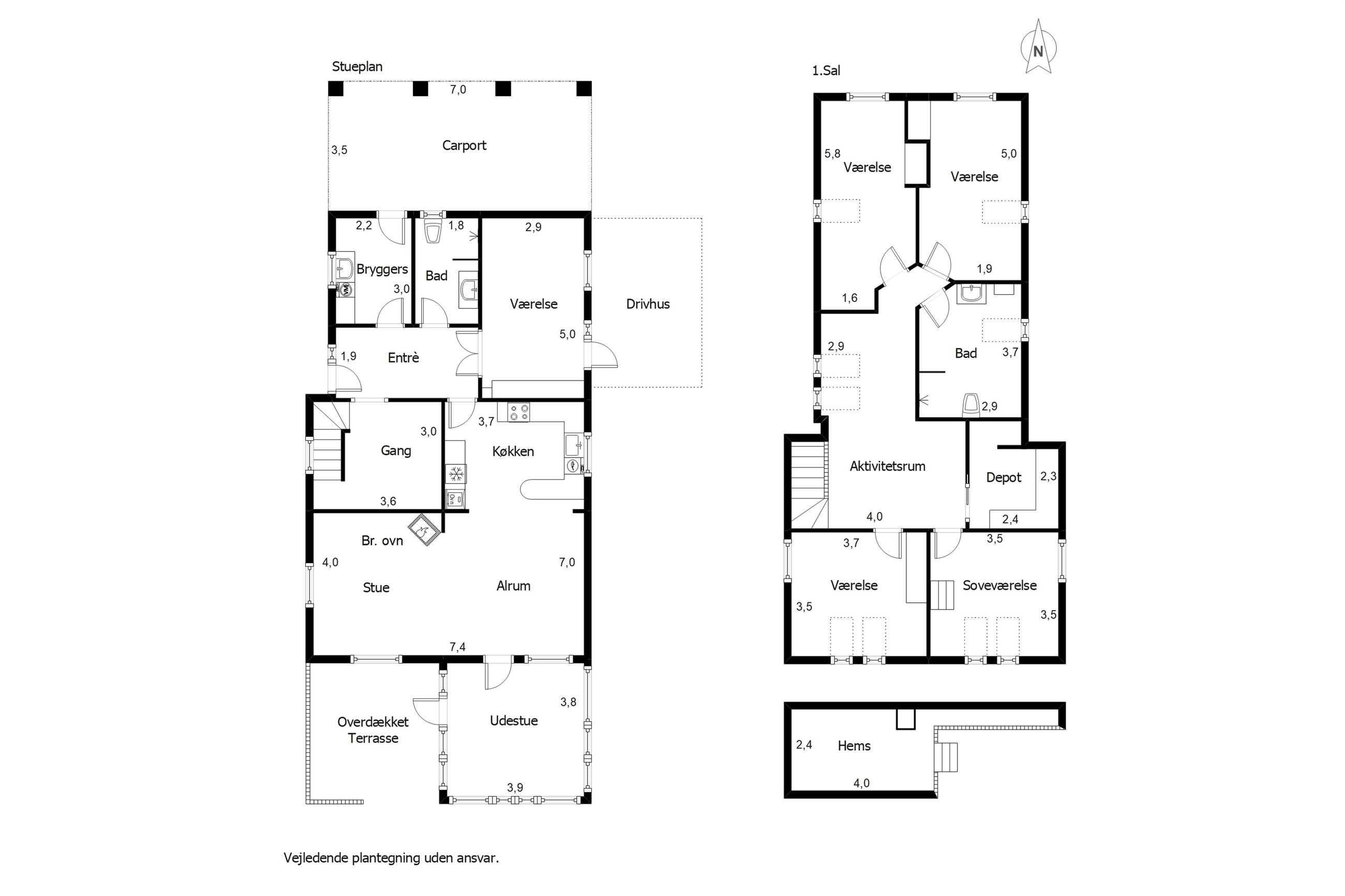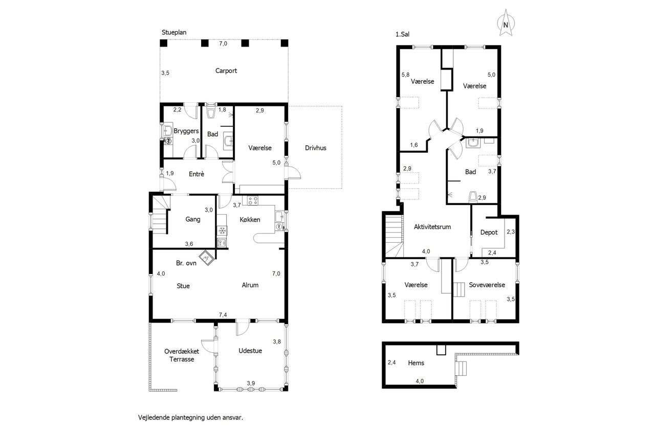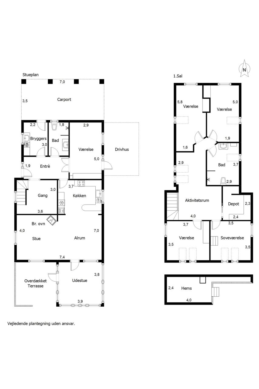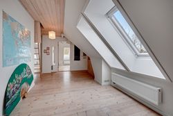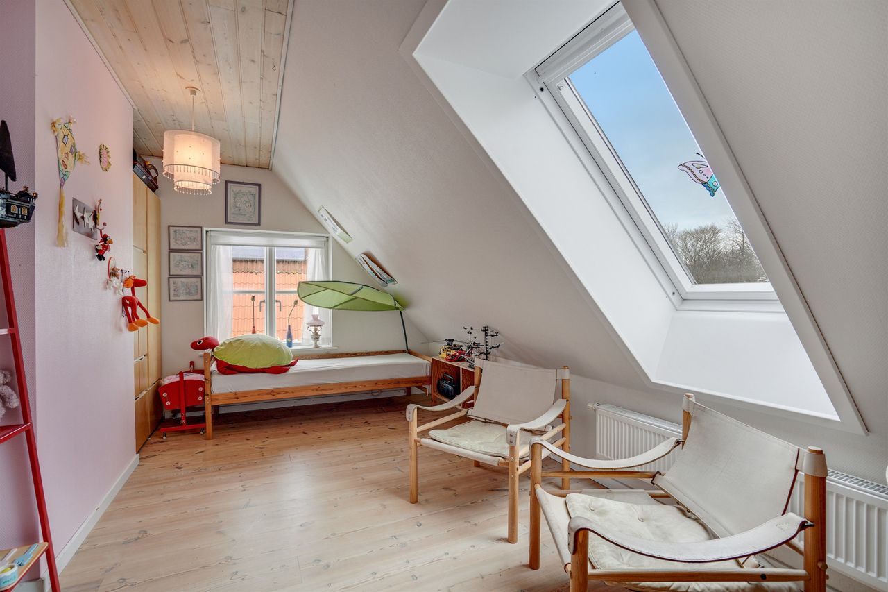 På 1. sal finder du flere gode værelser, soveværelse, badeværelse samt et stort aktivitetsrum, der kan indrettes som legerum, tv-stue eller multirum alt efter behov. Her er plads til både privatliv og fællesskab.