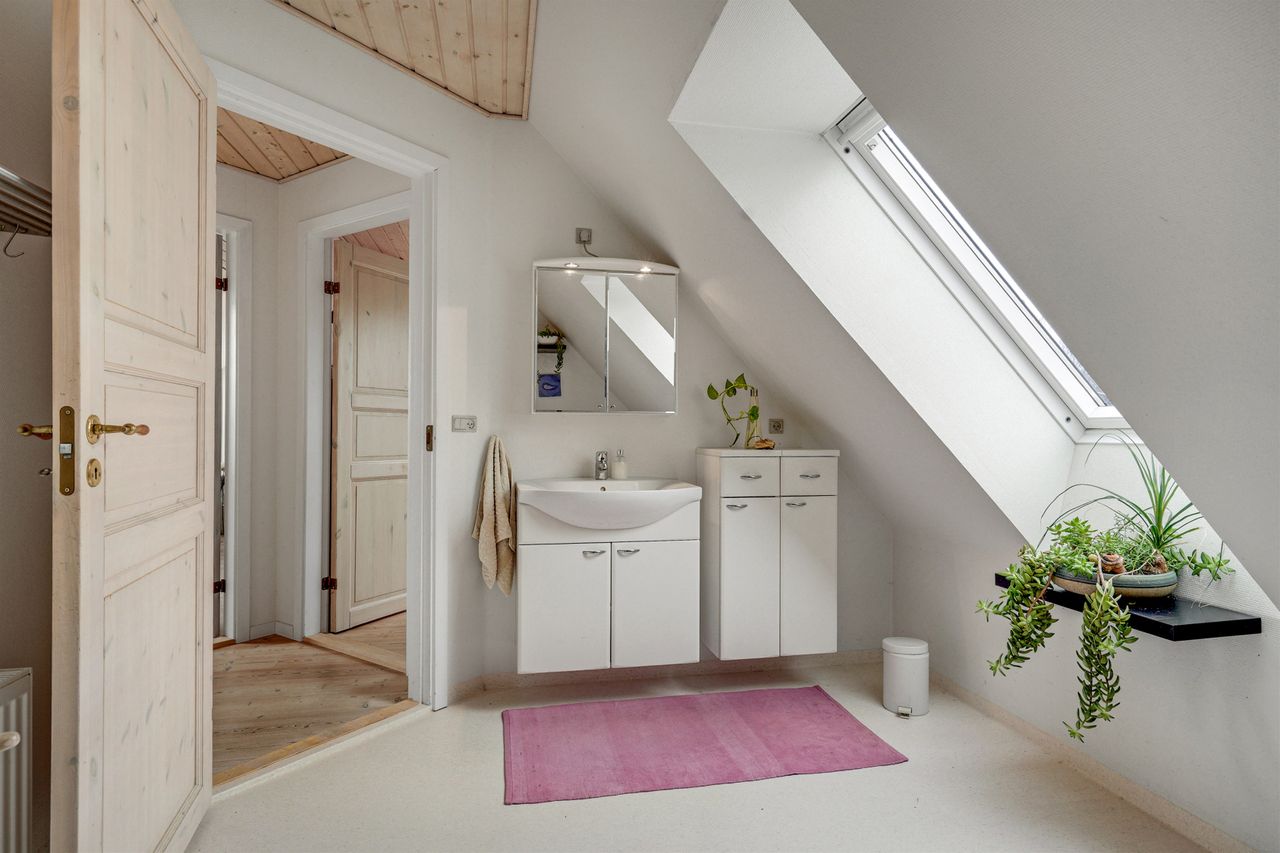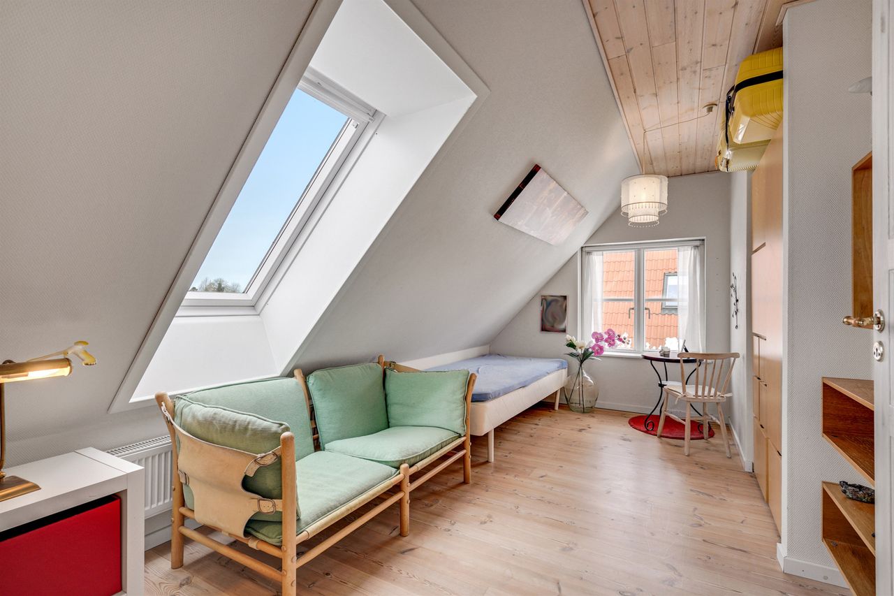 Stueplan rummer desuden et værelse samt badeværelse – ideelt til gæster, kontor eller familiens ældste barn.
