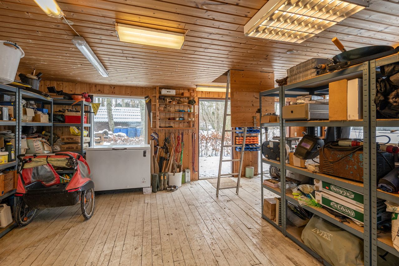 Til ejendommen hører desuden et stort og frostfrit værksted – oplagt til hobby, gør-det-selv-projekter eller opbevaring.