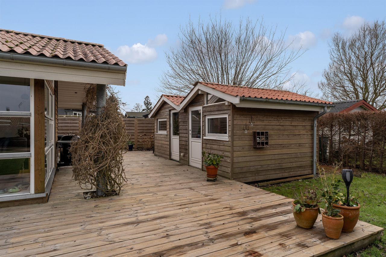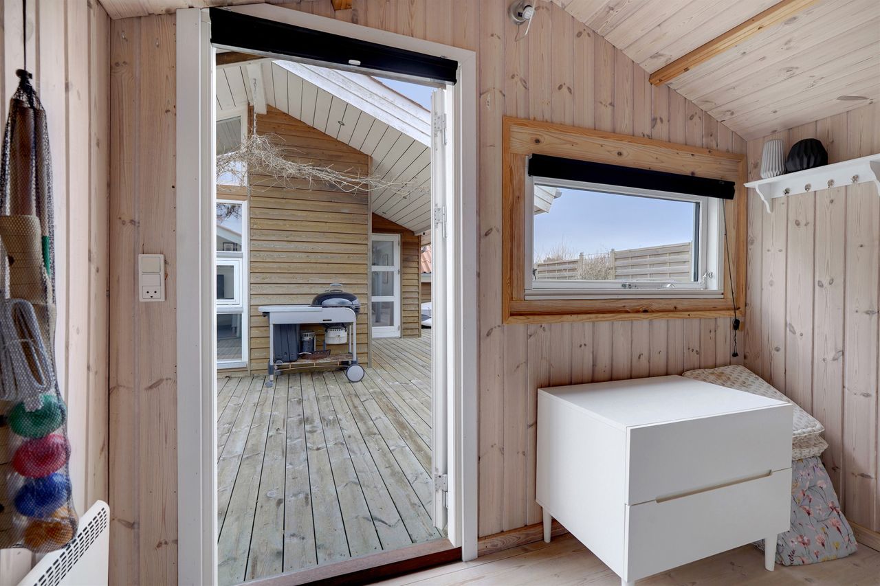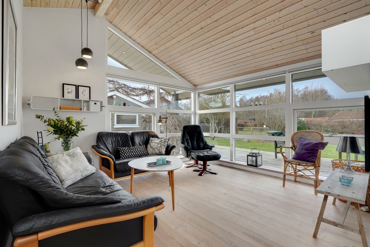 Udenfor fortsætter herlighederne. En skøn træterrasse breder sig omkring huset og bliver jeres naturlige samlingspunkt på solrige dage. Her kan I nyde solen fra morgen til aften – begynde dagen med kaffe i de første stråler og lade aftenen glide stille ind med middag under åben himmel. Her får I ganske enkelt de perfekte rammer om det gode sommerliv.