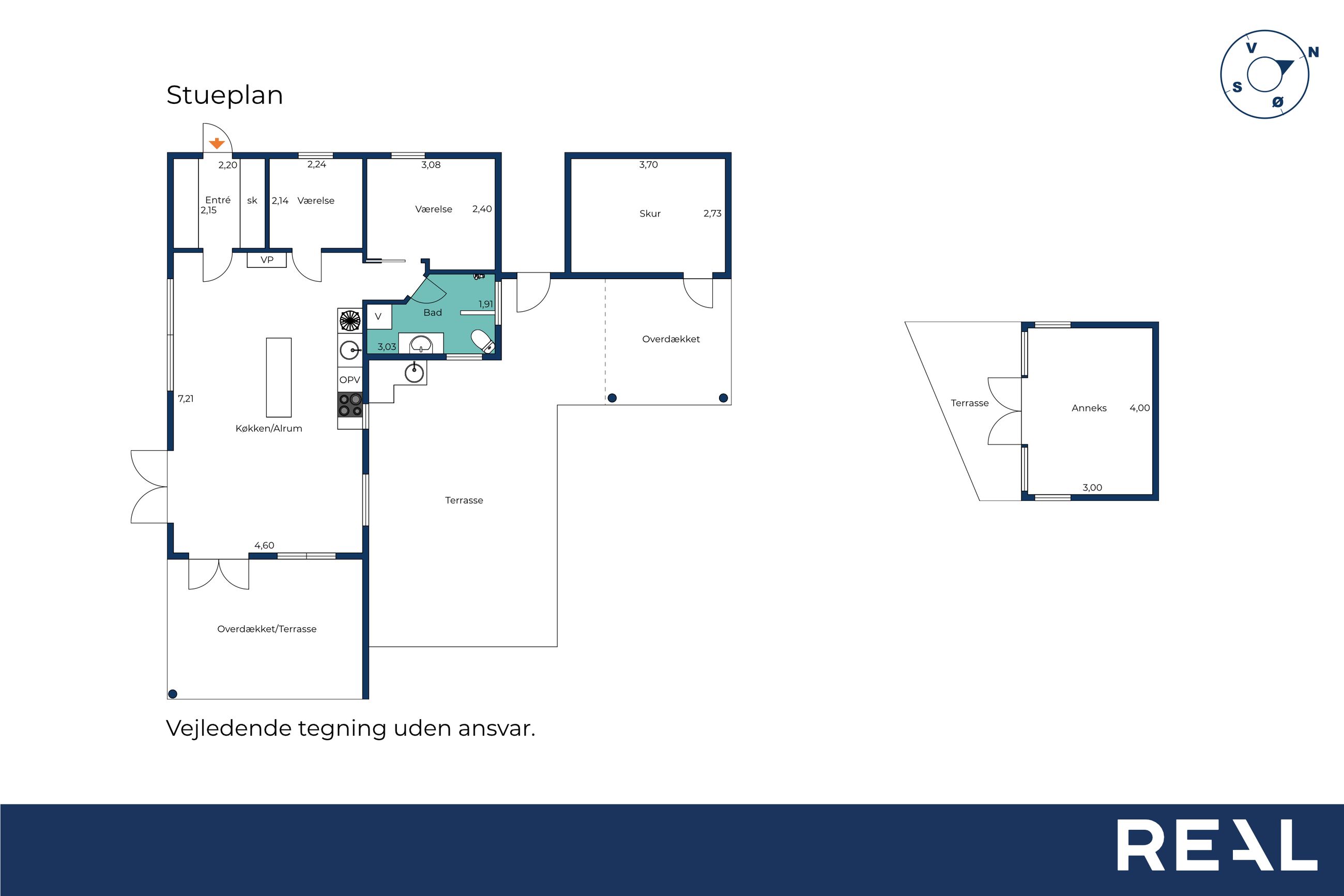 Et stort plus er annekset, der giver ekstra plads til overnattende gæster eller kan anvendes som hobbyrum, kontor eller legestue til børnene.
