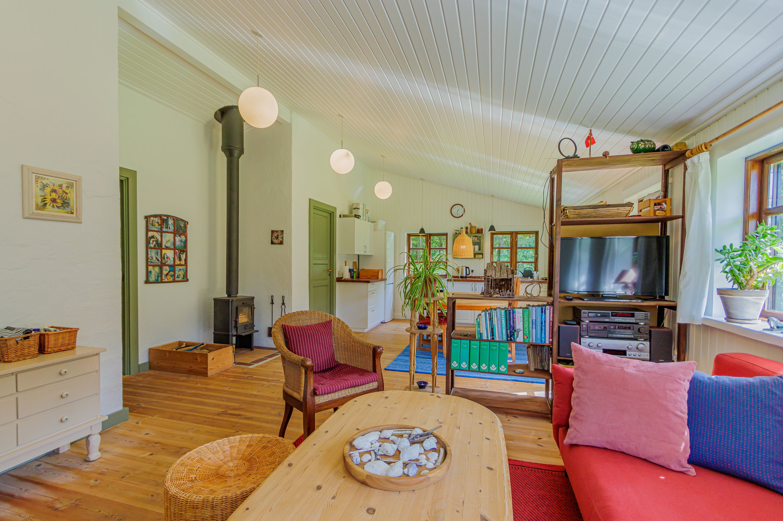 Når man træder indenfor i vindfanget kan den hyggelige sommerhusstemning mærkes med det samme. I vindfanget er der god plads til at afsætte tøj og sko, inden du træder ind i husets leverum. Det velindrettede sommerhus byder dig velkommen med et rummeligt stueområde, hvor en varm brændeovn skaber den perfekte atmosfære til hyggelige aftener. Det åbne køkkenalrum giver masser af plads til familiemåltider og sociale sammenkomster. Sommerhuset imponerer med loft til kip, hvilket giver en følelse af rummelighed og åbenhed. De hvidmalede lofter og vægge skaber en lys og luftig stemning, der fremhæver sommerhusets charme og enkelthed. Sommerhuset indeholder to komfortable soveværelser, hvor du kan slappe af og genoplade. Badeværelset har samme charmerende stil, som resten af huset og har både toilet, håndvask og bruseniche, samt plads til vaskemaskine og tørretumbler.