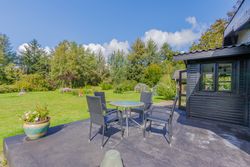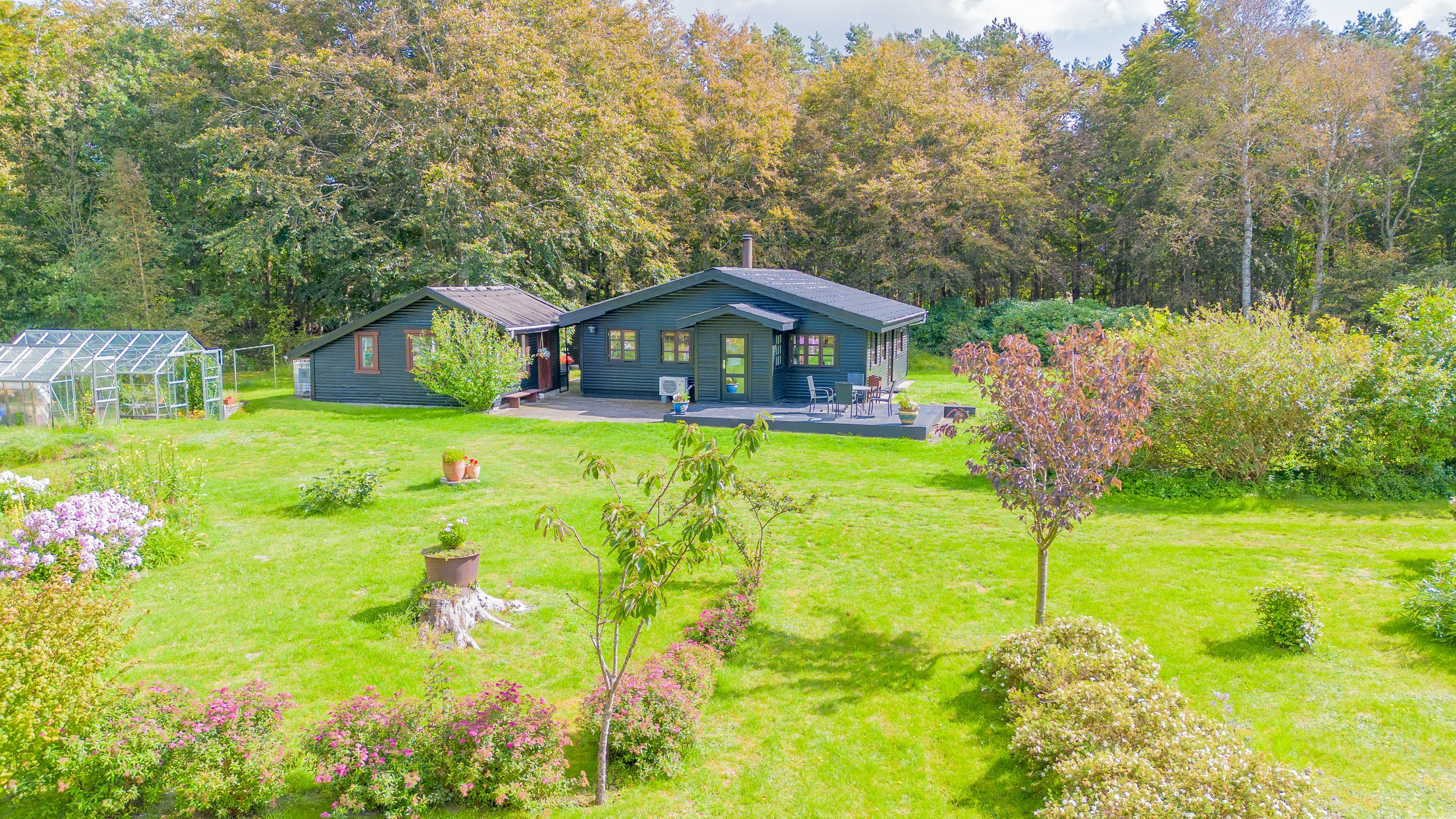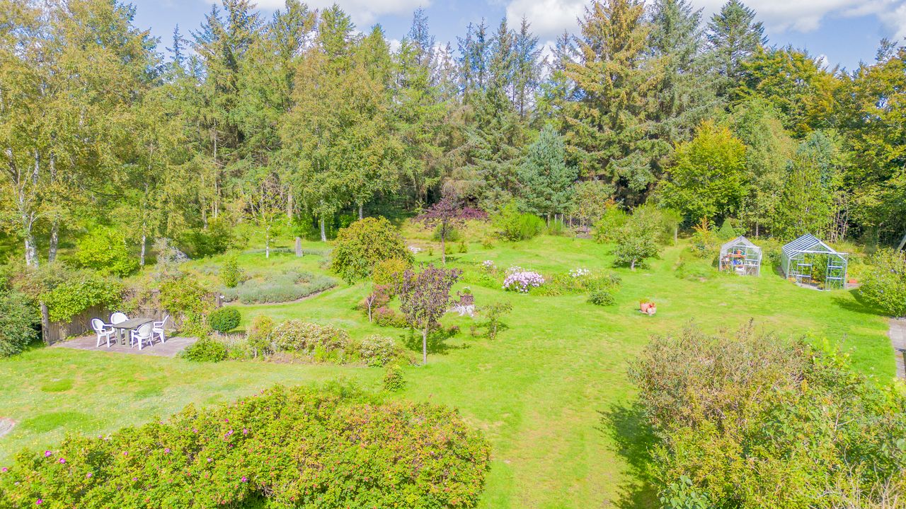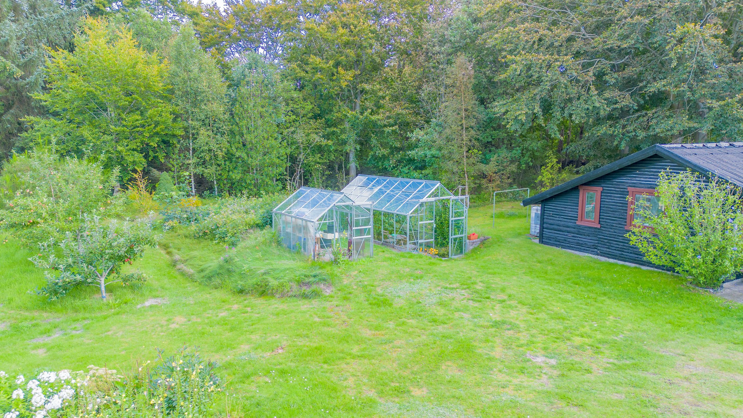 Det er ingen hemmelighed, at den store dobbeltgrund på i alt 10.380 m2, er den største faktor ved et køb af denne ejendom. Den store parklignende grund byder på virkelig mange oplevelser året rundt. Det kuperede terræn, som oprindelig stammer tilbage fra da området var et klitlandskab, er særdeles charmerende. Hele vejen rundt på grunden er der flere gode hyggekroge, flere forskellige frugttræer og buske, stor økologisk køkkenhave, et hyggeligt bålsted og ikke mindst et fantastisk dyreliv, hvor biodiversiteten rigtig kan udfolde sig. Der er desuden et tilhørende større skovareal bag ved sommerhuset, hvor der er rig mulighed for at bygge træhytter oppe i træerne, lave svævebane til børnene, eller bygge shelters som familien kan overnatte i og udforske naturen