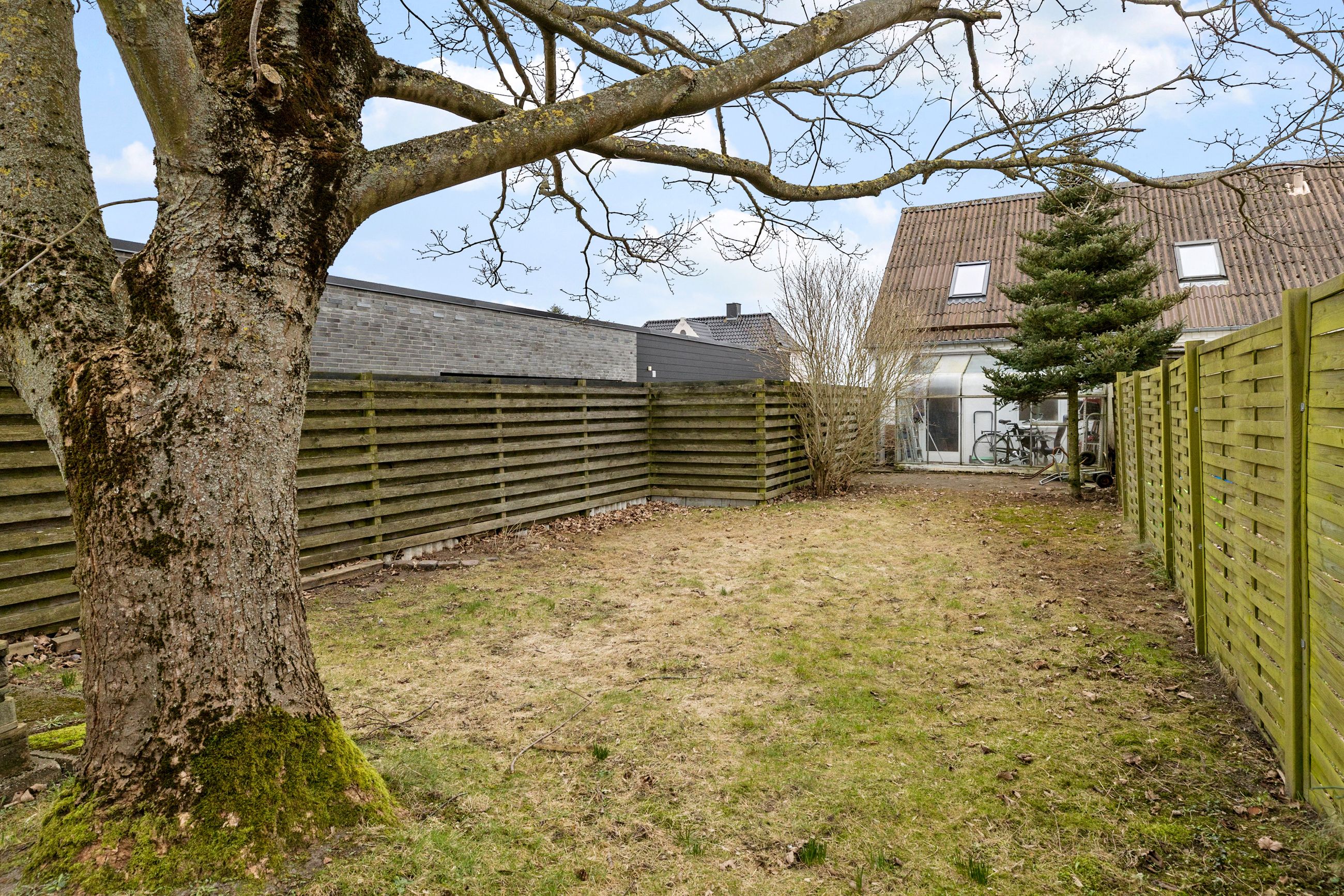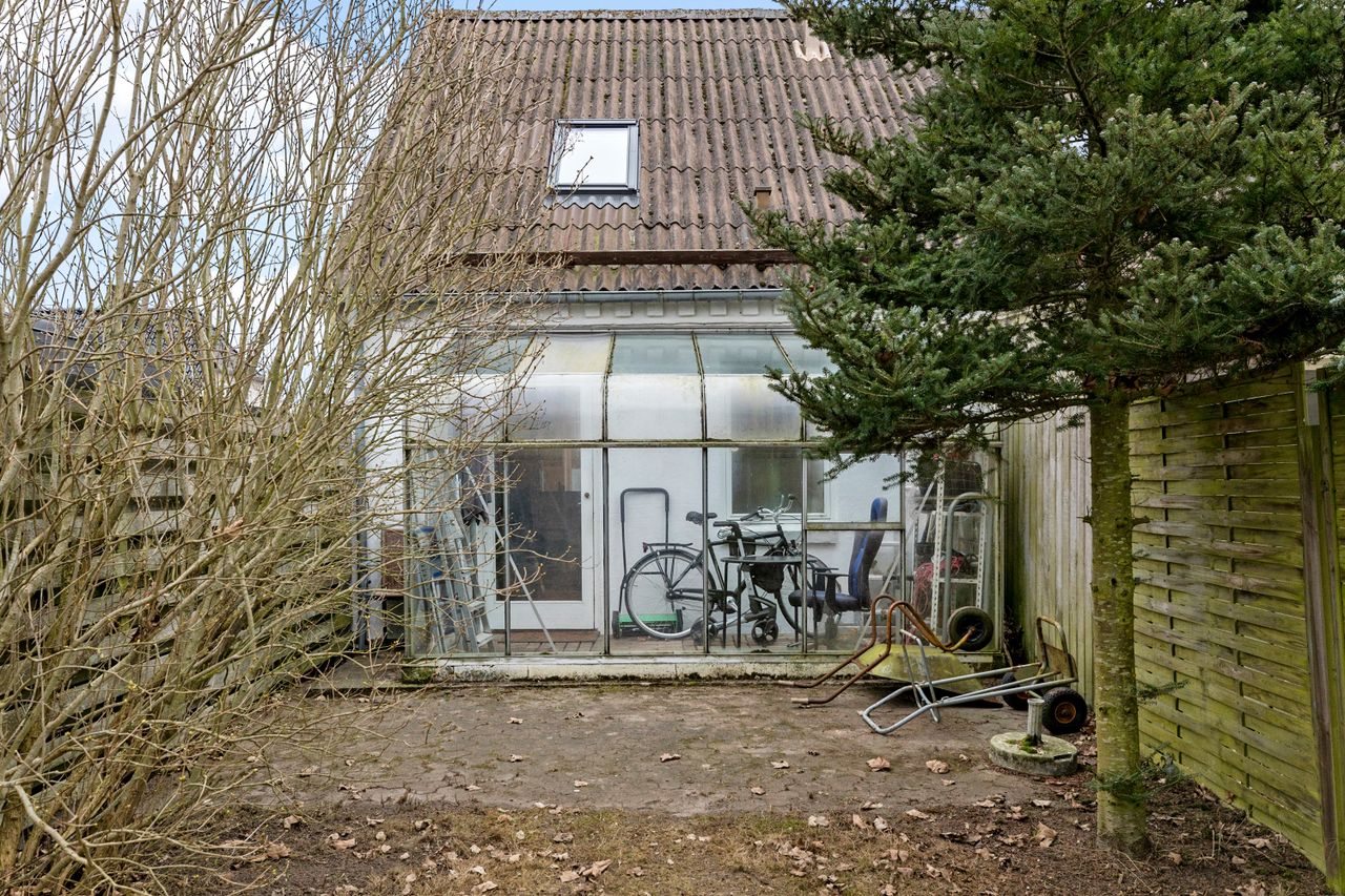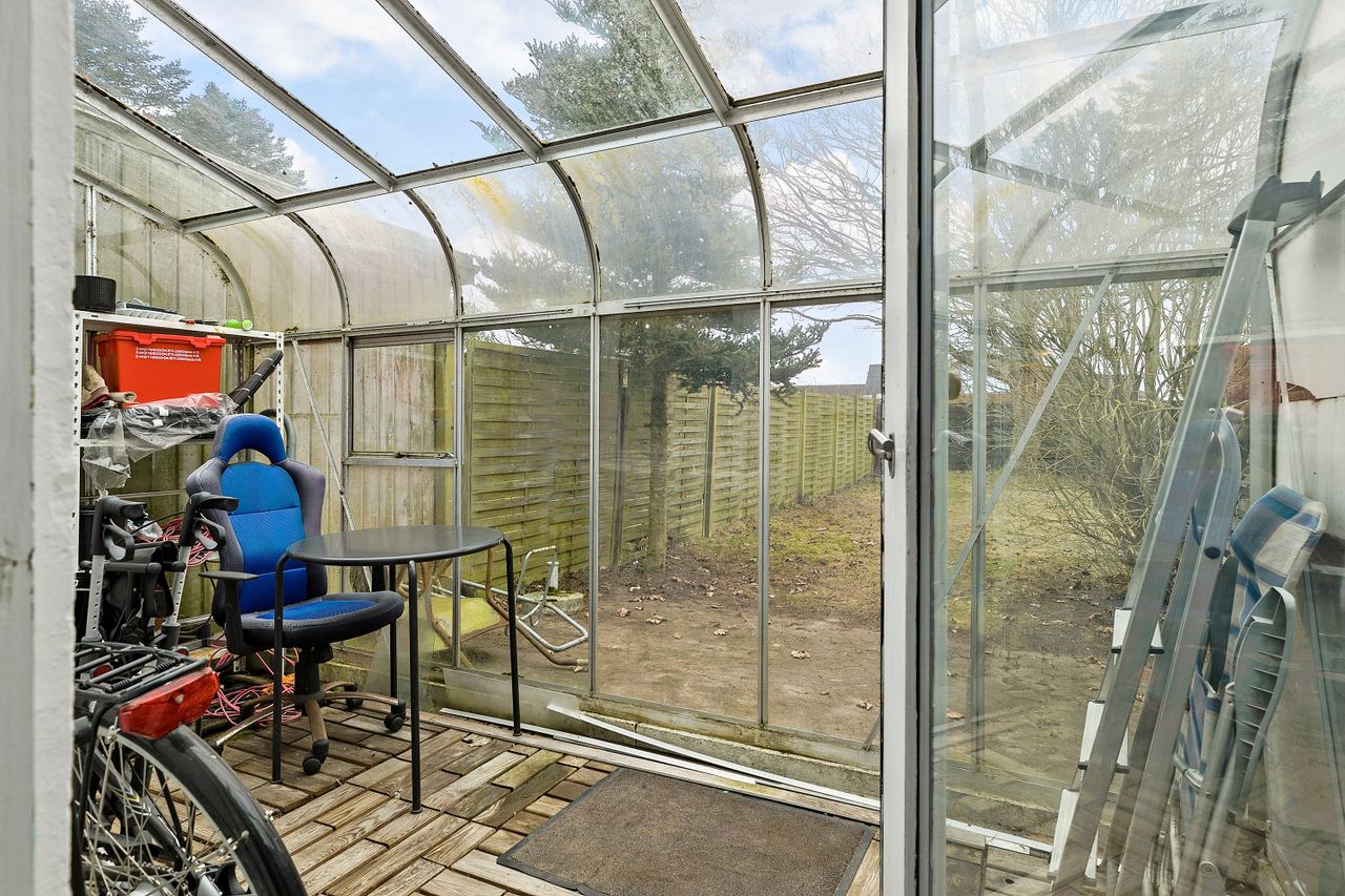 Boligen kommer med et praktisk 3 m2 cykelskur, så du har plads til opbevaring af cykler og andet udstyr. Den vestvendte have giver mulighed for at skabe din egen grønne oase, hvor du kan nyde solen og have liv i haven.