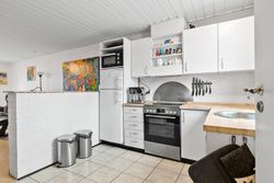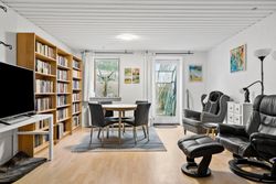 Lejligheden er fordelt over to plan og byder på en gennemtænkt indretning. I stueplan træder du ind i en velkommende entré, der leder videre til et åbent køkken i direkte forbindelse med den lyse opholds- og spisestue. Her er plads til både afslapning og hyggelige middage med familie og venner. Fra stuen får du adgang til en dejlig udestue, hvor du kan nyde de lune sommeraftener, samt en vestvendt have, der indbyder til leg og afslapning i solen.