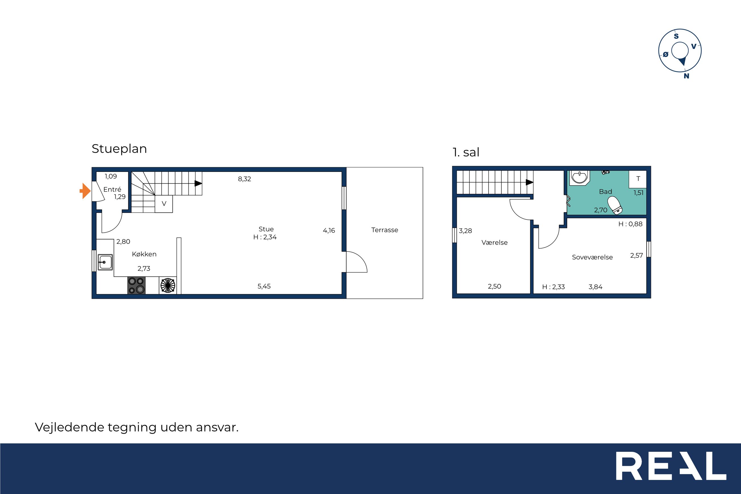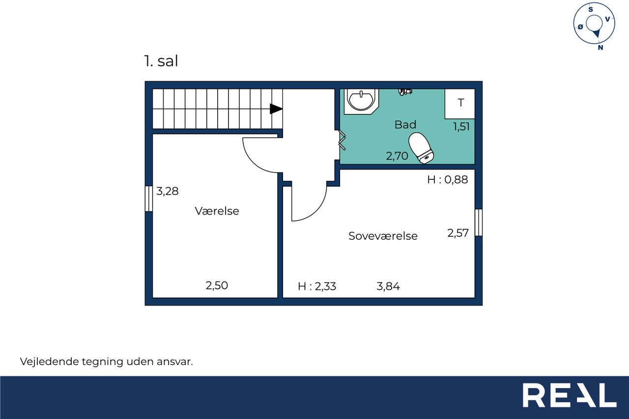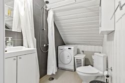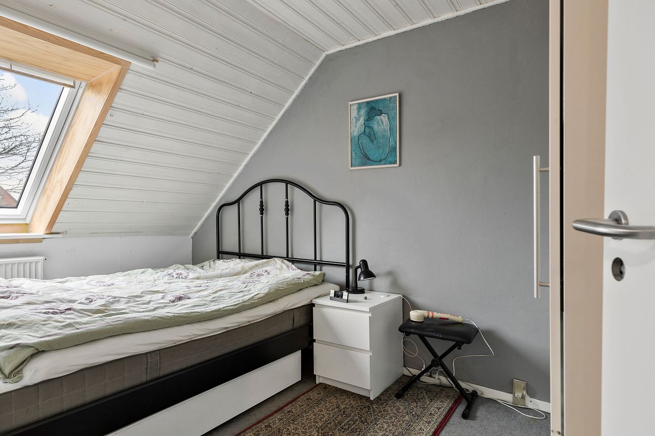 På første sal finder du et rummeligt badeværelse, der er praktisk indrettet, samt to gode værelser udstyret med ovenlysvinduer, der giver et dejligt lysindfald. Her er der også mulighed for at indrette sig med kontor eller gæsteværelse.
