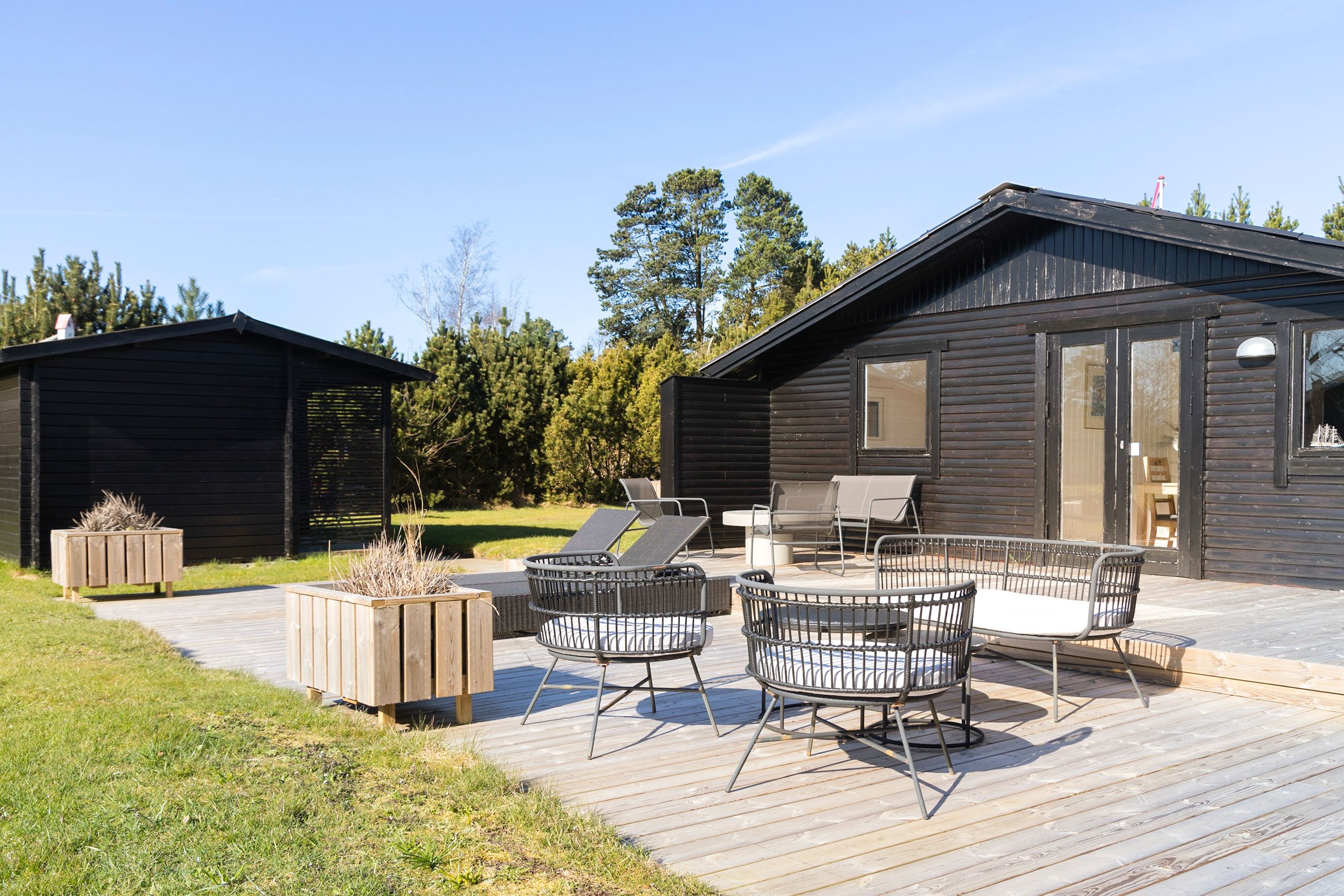 Udenfor præsenterer sommerhuset sig med en skøn, sydvendt træterrasse, som virkelig indbyder til udendørs hygge og grillfester. Her kan du nyde lange sommeraftener under åben himmel, mens du nyder den dejlige udsigt over haven. Den store grund giver rig mulighed for både leg og afslapning, og du vil hurtigt finde dig til rette i de rolige omgivelser.
