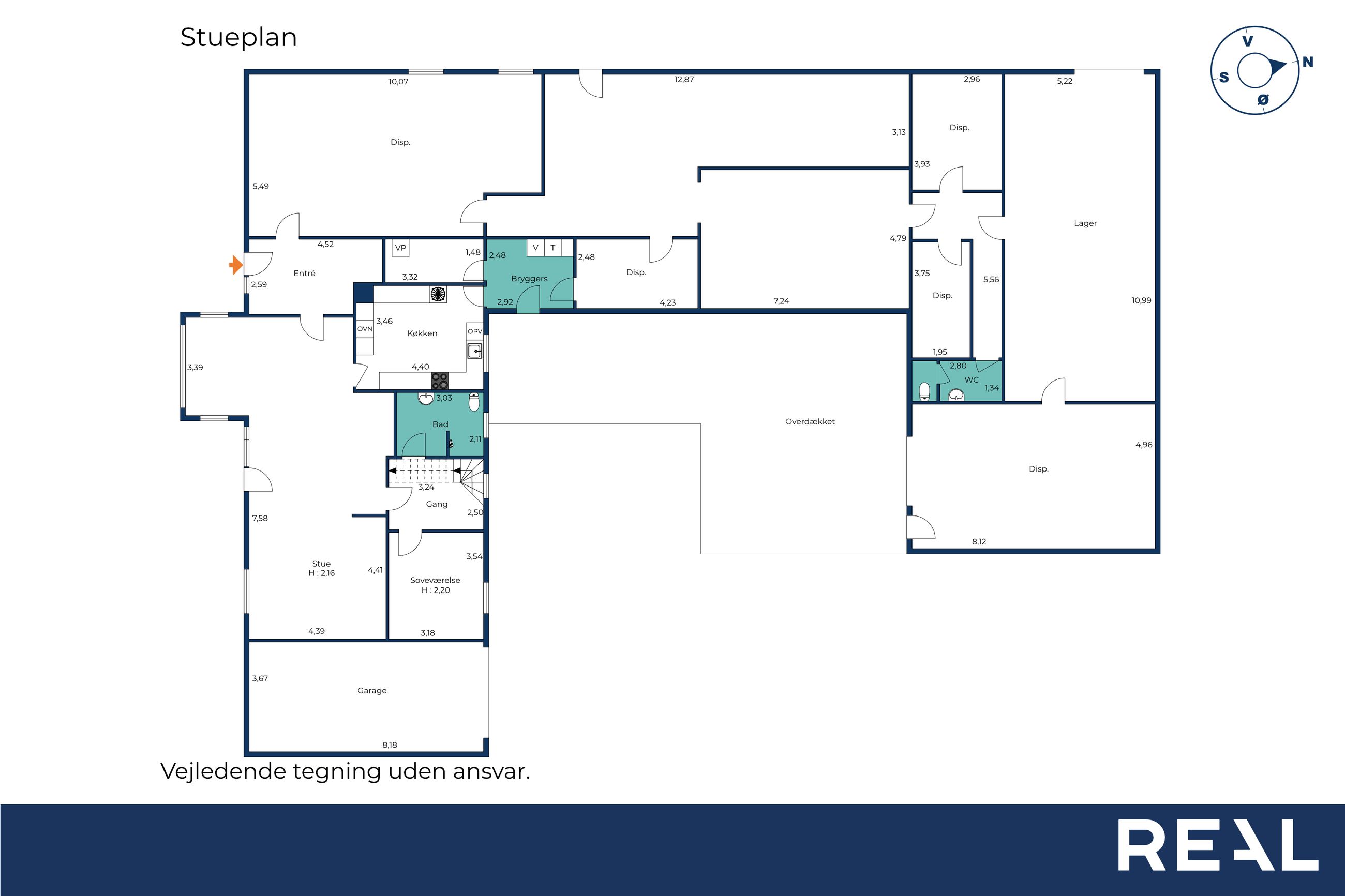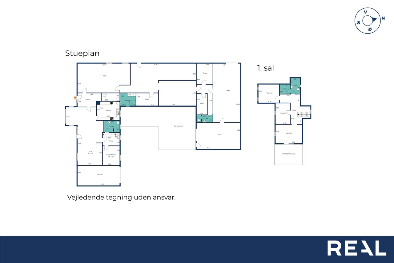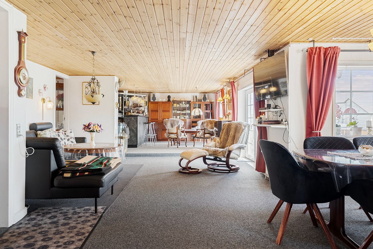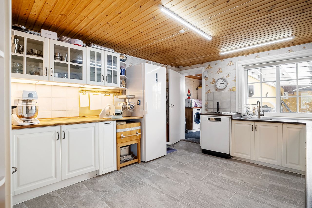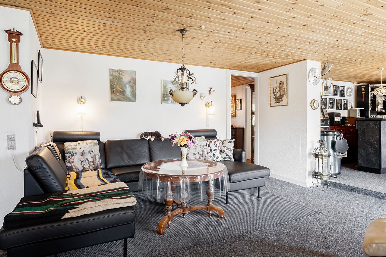 Ejendommen består i dag af et bebygget areal på 546 m2 hvoraf der er 182 m2 beboelse fordelt på 2 plan. De resterende mange m2 fordeler sig på den nedlagte købmandsbutik, lagerlokaler, grovkøkken og mange opbevaringsrum. Der er desuden en 34 m2 stor carport og en 45 m2 overdækket terrasse. Det hele er beliggende på en 2.030 m2 stor grund hvor der også er en skøn østvendt have og en dejlig sydvendt terrasse.