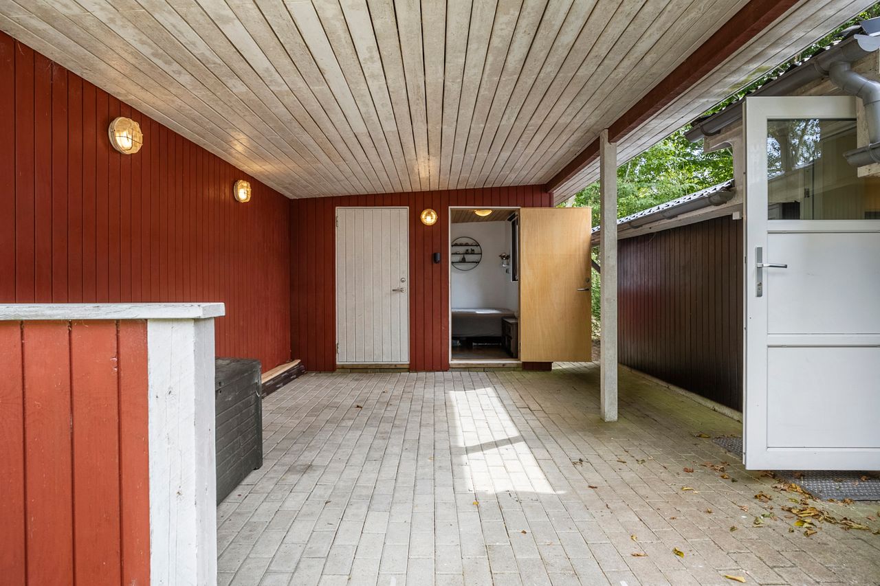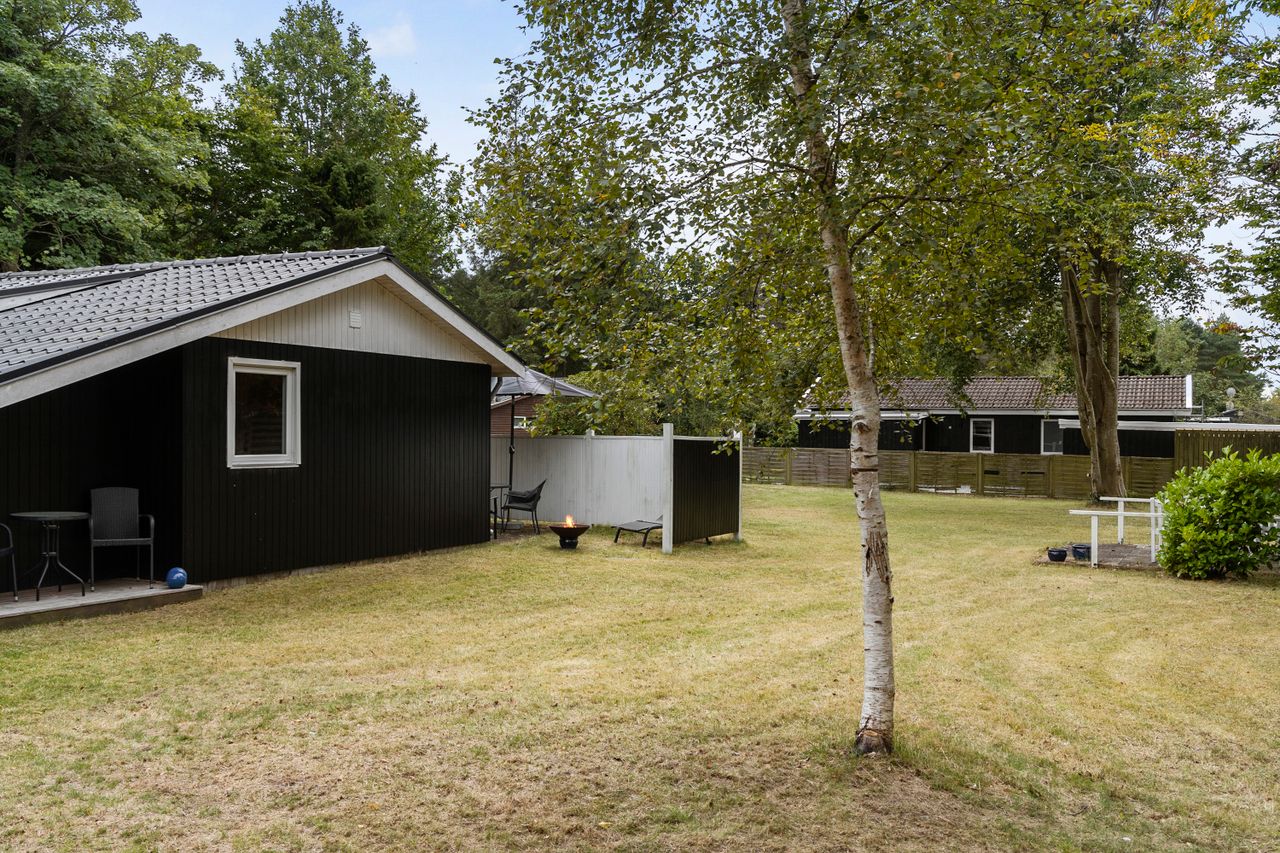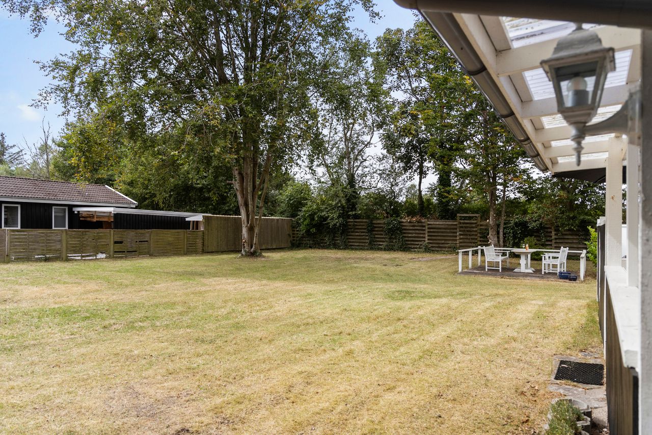 Sommerhuset er opført i 1968 på en attraktiv 1.133 m2 stor grund, der byder på masser af plads til leg, afslapning og udendørs aktiviteter. Den store, nemme have er perfekt til børneleg, picnic eller blot at nyde de lune sommerdage. Flere overdækkede terrasser omkranser huset, hvilket giver mulighed for at nyde solen hele dagen, uanset tidspunkt, samt hyggelige aftener under åben himmel. Her kan man nyde en kop kaffe om morgenen, grille med venner eller slappe af med en god bog, mens man lytter til fuglekvidder og naturens fredelige lyde.