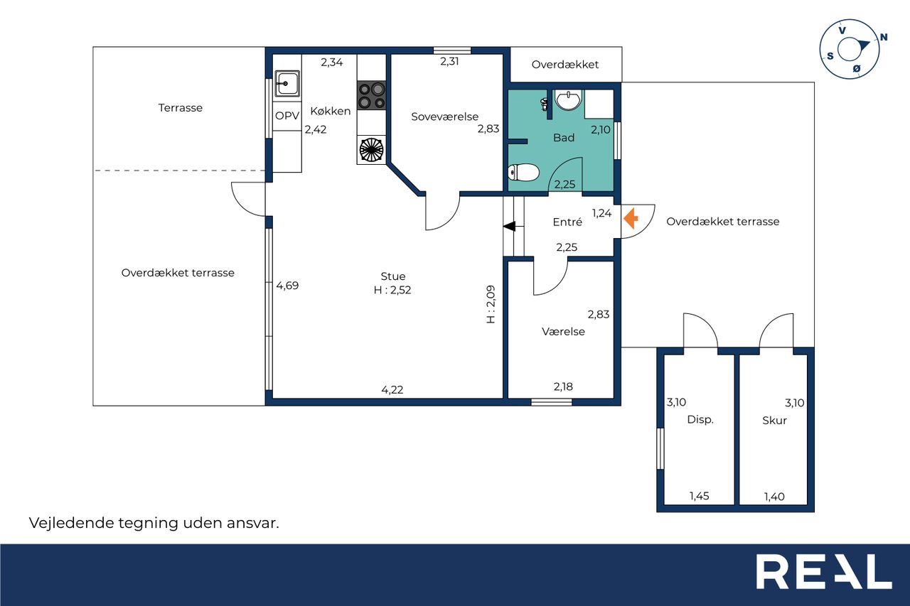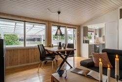 Det åbne køkken/alrum er husets hjerte – her er god plads til familiesammenkomster og hyggelige stunder. Køkkenet er udstyret med moderne hvidevarer og masser af skabsplads, og er ideel til familiefrokoster eller gæster. Fra alrummet er der direkte adgang til den overdækkede terrasse, hvilket inviterer til udendørs måltider og afslapning i det fri.