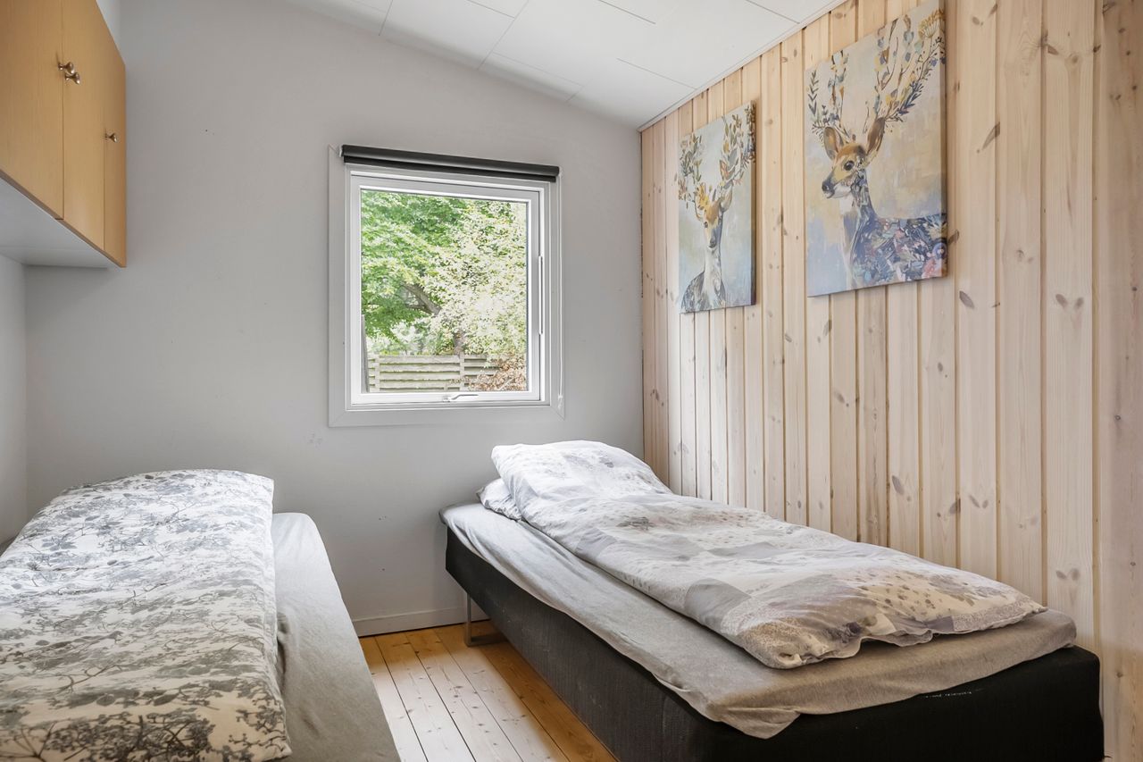 Huset rummer to gode værelser, der giver plads til familie eller gæster. Det veldesignede badeværelse er moderne og funktionelt, hvilket skaber en behagelig base for dagligdagen. Derudover er der et godt redskabsrum, hvor værktøj og haveudstyr kan opbevares, samt et anneks, der kan anvendes til overnatning, gæster eller som hyggeligt hobbyrum.