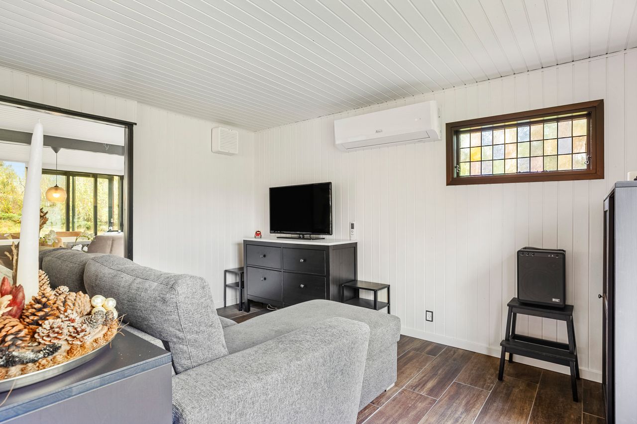 Huset er opført i 1971, men er gennemgået en grundig modernisering, der har løftet det til nutidens standarder. Det står nu som et særdeles indbydende hjem, der emmer af kvalitet og funktionalitet. Den store udestue på hele 22 m2 giver fantastiske muligheder for at nyde naturen året rundt – her kan du slappe af med en kop kaffe, nyde udsigten over den fredelige grund, eller invitere venner og familie til hyggelige stunder. Sommerhuset opvarmes desuden med brændeovn og varmepumpe.