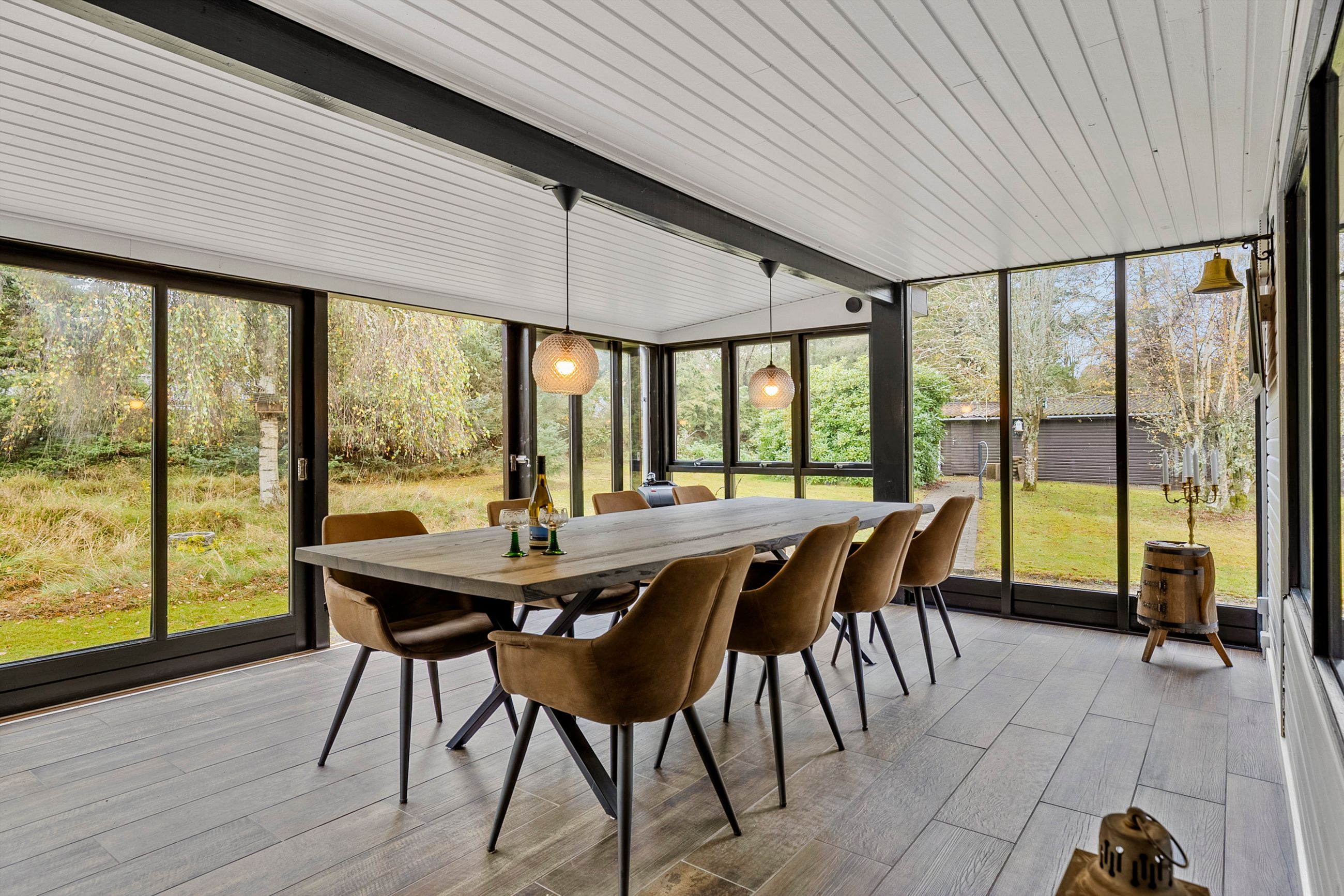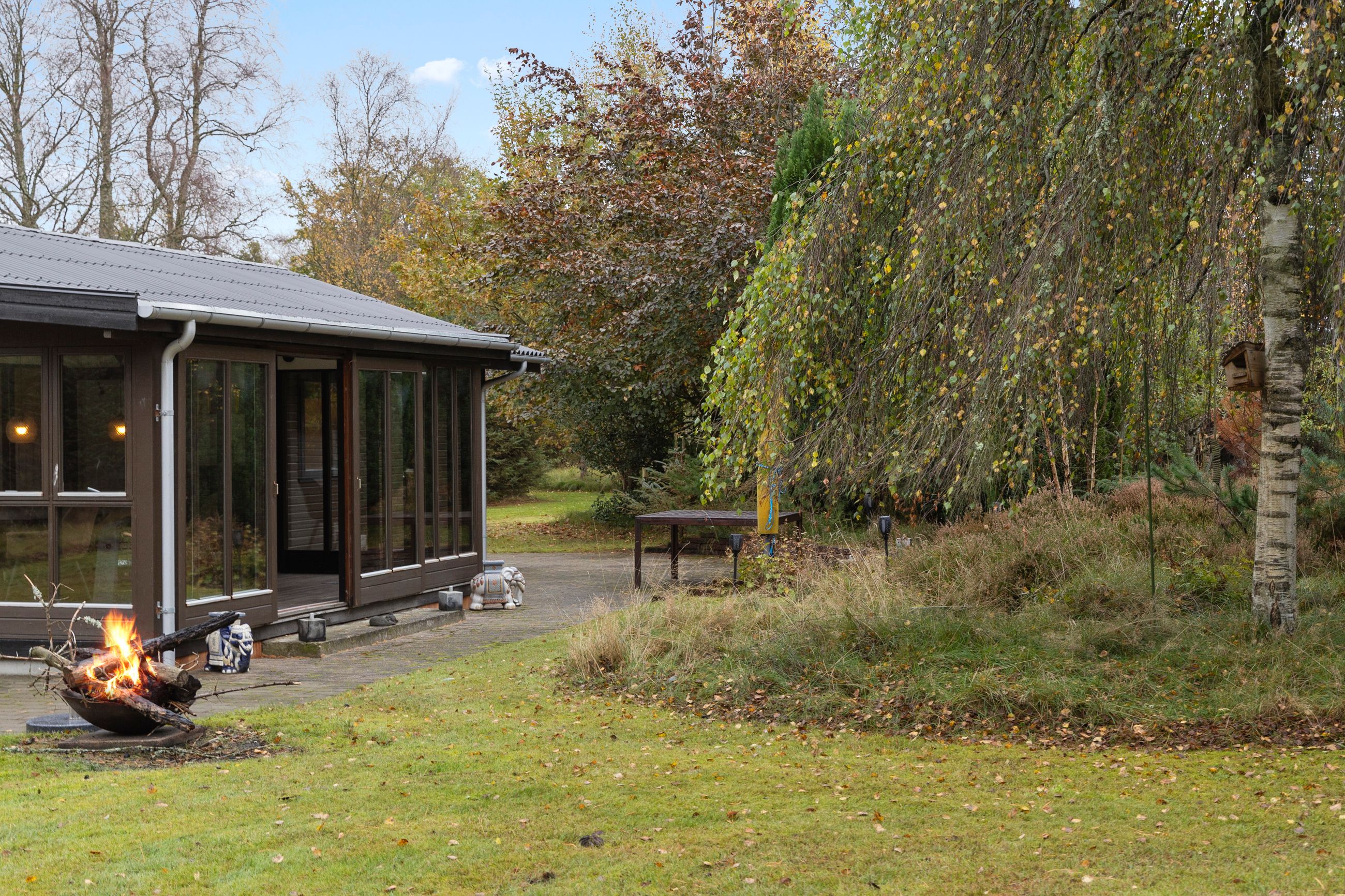 Grunden på hele 2.500 m2 er en dejlig naturgrund, hvor der er rig mulighed for leg eller afslapning. Den velholdte have rummer blandt andet et shelter, perfekt til overnatning i naturen, hyggelige aftener under stjernerne eller for den eventyrlystne familie, der ønsker at opleve den danske natur tæt på. Ydermere finder du et rummeligt udhus på 13 m2, ideelt til opbevaring af haveredskaber, cykler eller fritidsudstyr.