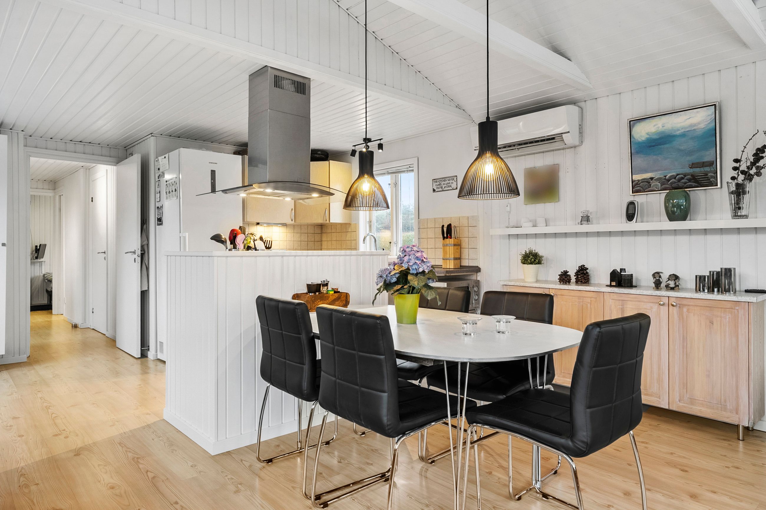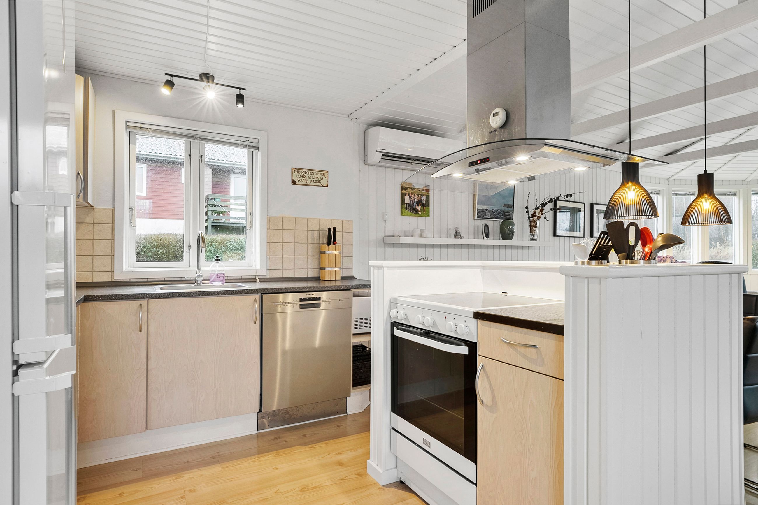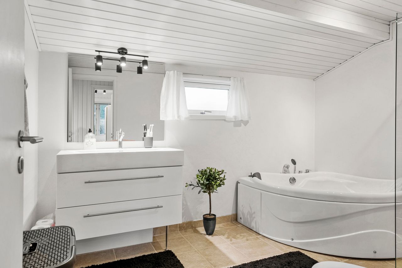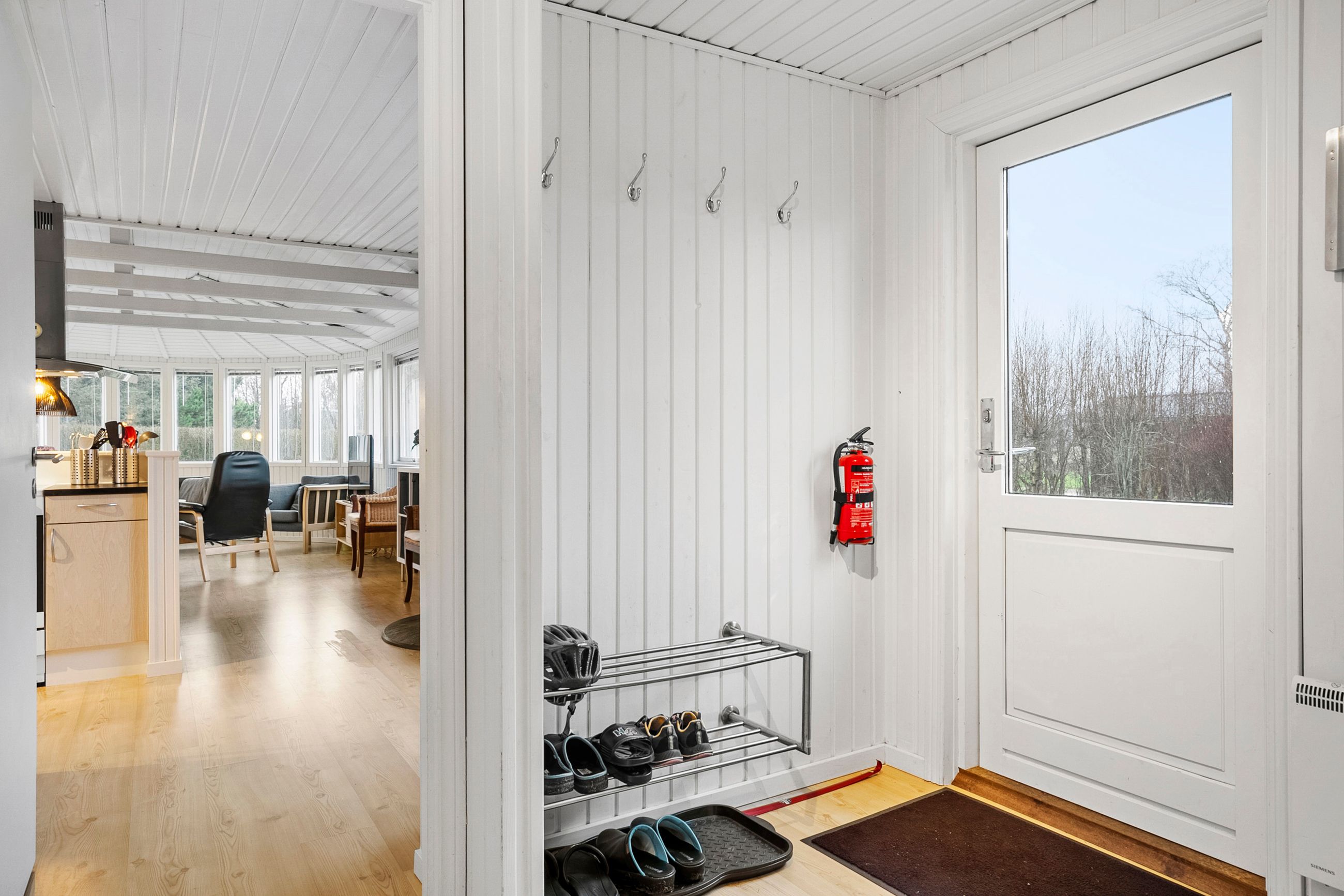 Sommerhuset har 3 dejlige værelser, et badeværelse med spa og bruseniche, samt en rummelig entré med praktisk vaskesøjle, hvor både vaskemaskine og tørretumbler er installeret. Derudover en varmepumpe og brændeovn, der sikrer et behageligt indeklima året rundt.