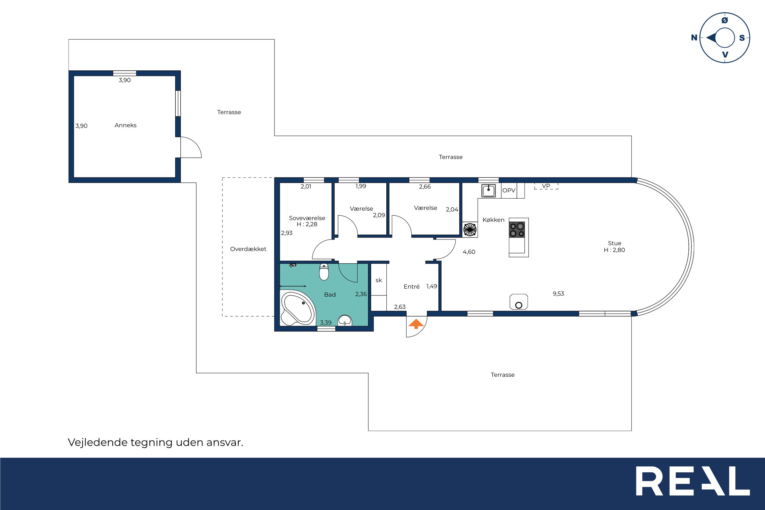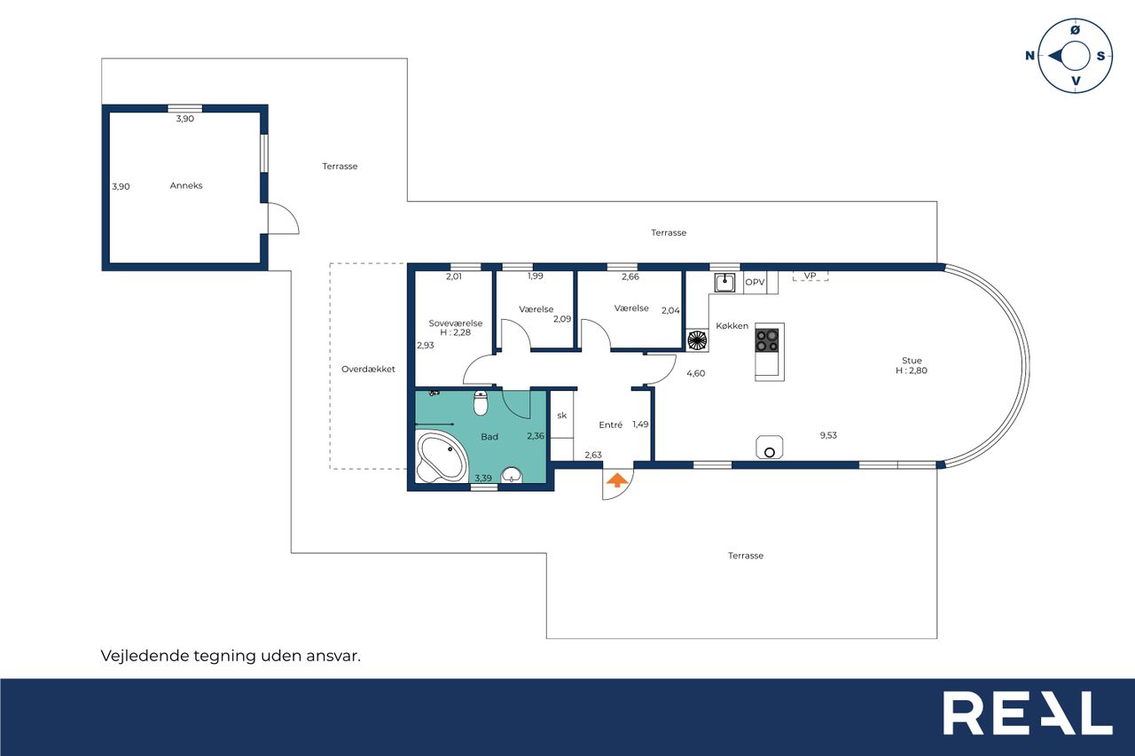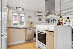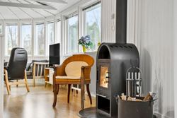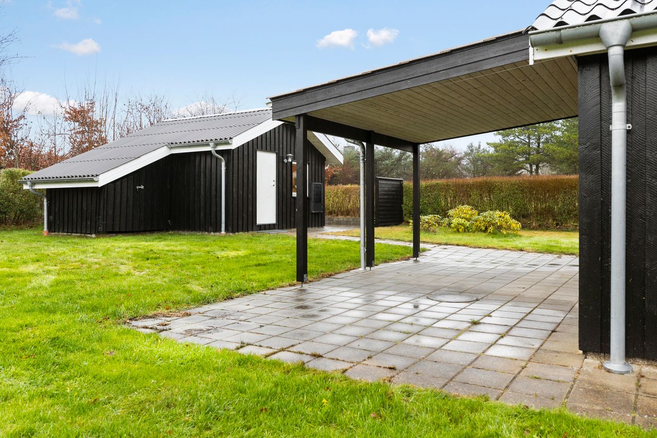 På grunden finder man også et fint anneks fra 2006 med 4 sovepladser, ideelt til gæster eller som ekstra overnatningsmuligheder. Den store vestvendte fliseterrasse inviterer til udendørs samling, mens den overdækkede terrasse skaber flere hyggelige kroge, hvor man kan mødes over morgenkaffen. Den aflukkede solrige have med port ind til matriklen giver også mulighed for privatliv og afslapning.
