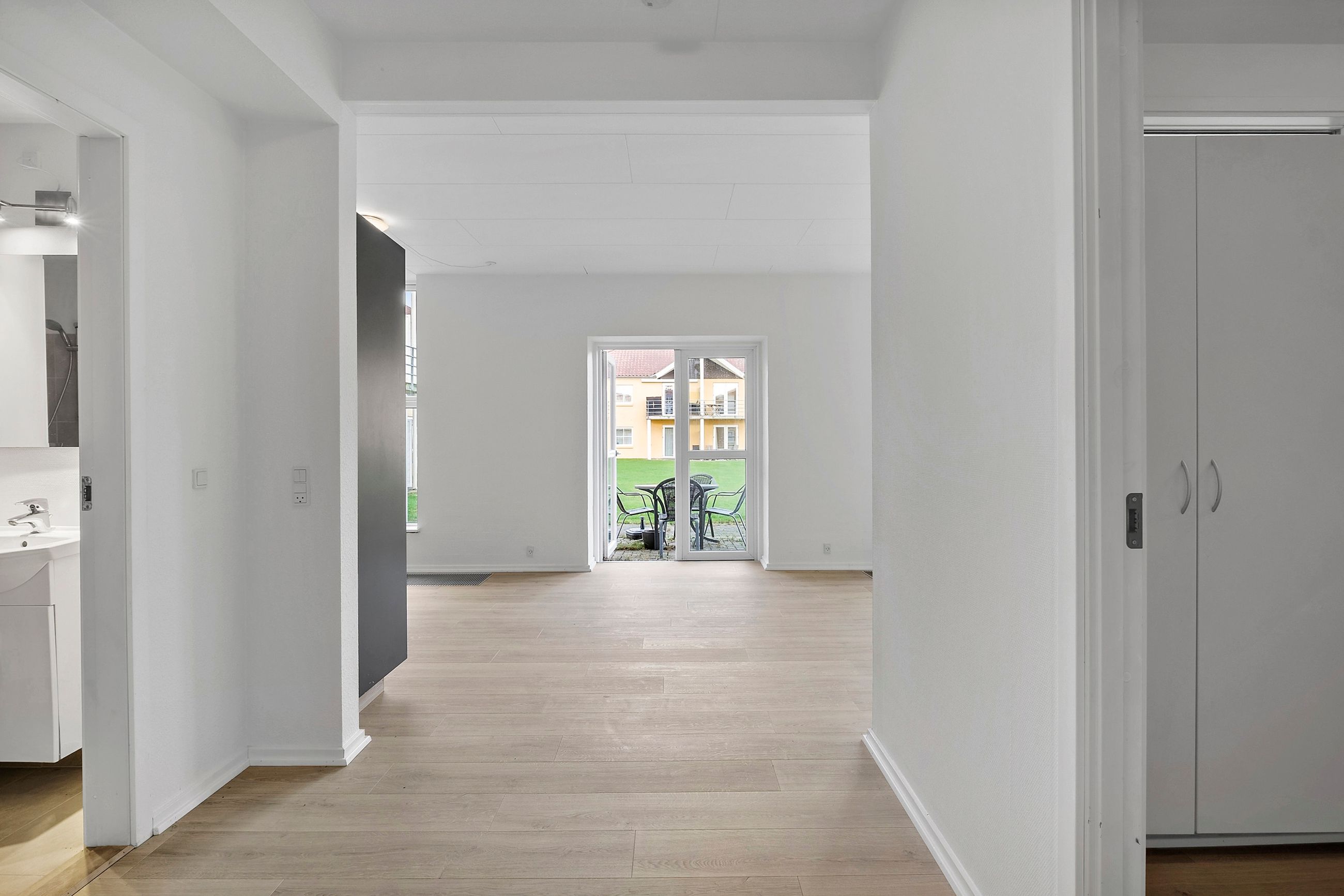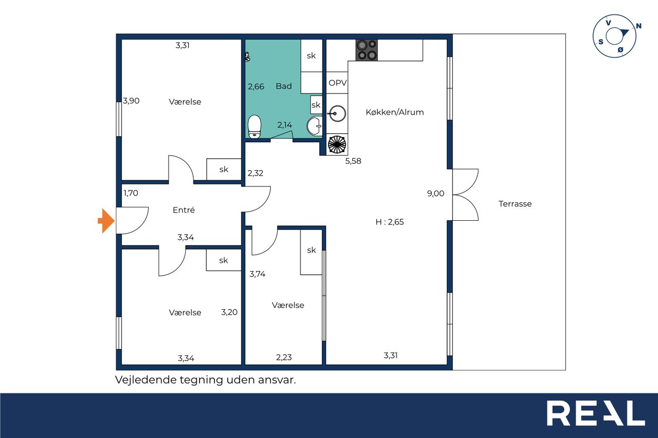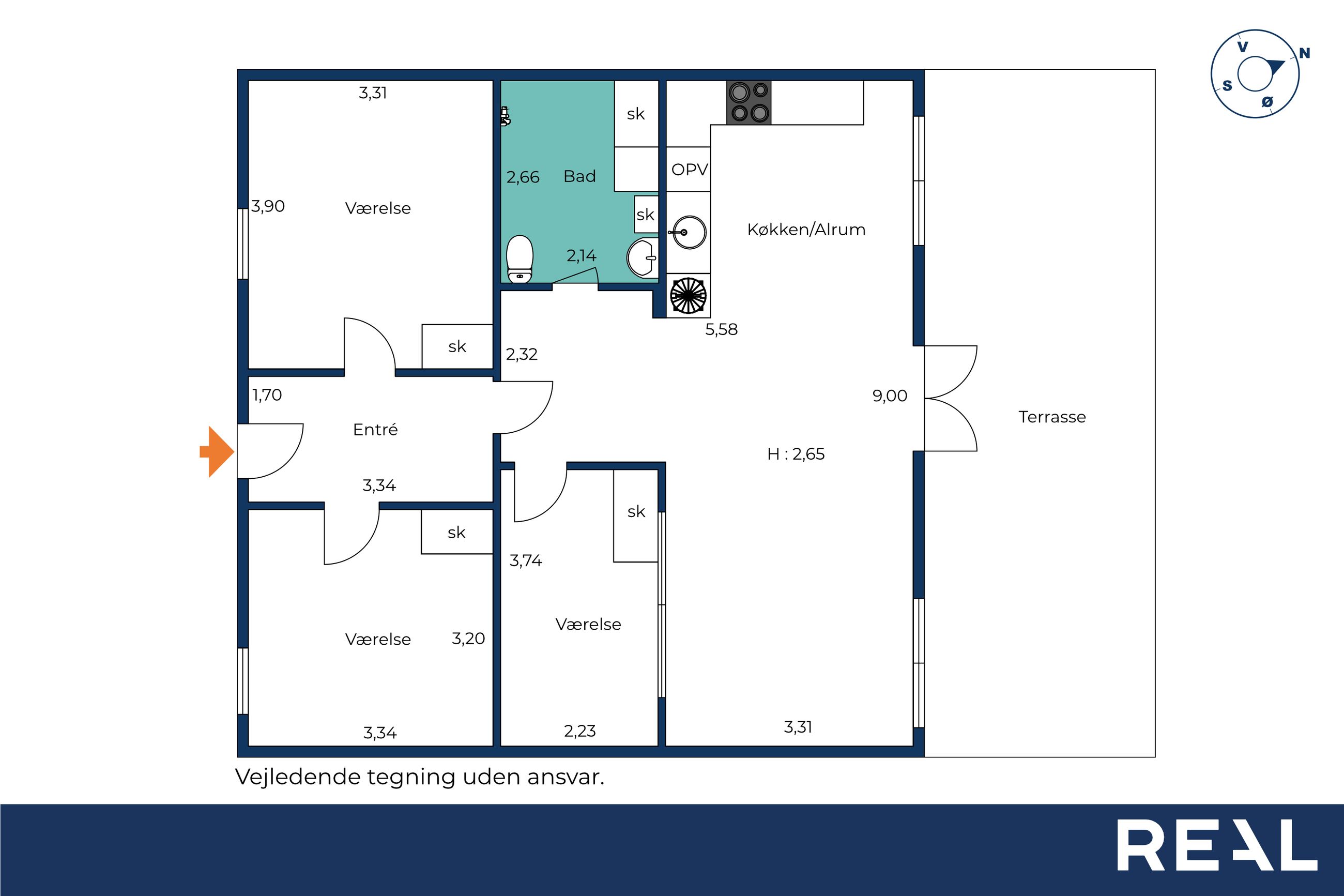 Lejligheden byder på et lyst og indbydende køkken-alrum med god plads til både madlavning og samvær. Herfra er der dobbeltdøre med direkte udgang til terrassen, som indbyder til udeliv og afslapning i rolige omgivelser. Planløsningen rummer desuden tre gode værelser med fine indretningsmuligheder samt et pænt badeværelse med vaskemaskine.
