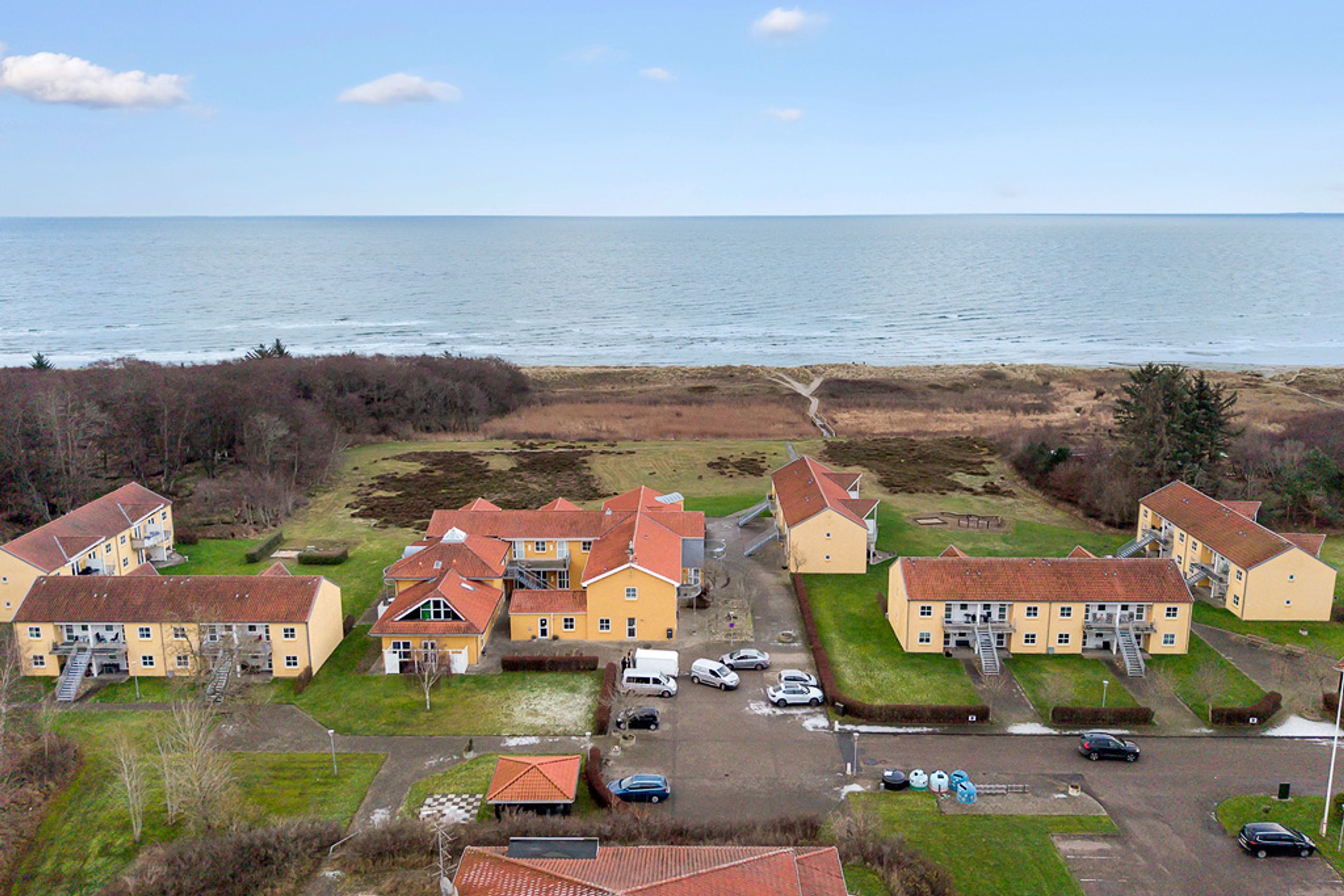 Beliggenheden er et stort aktiv. Lejligheden ligger kun ca. 100 meter fra strandkanten med en børnevenlig sandstrand, perfekt til lange sommerdage.
