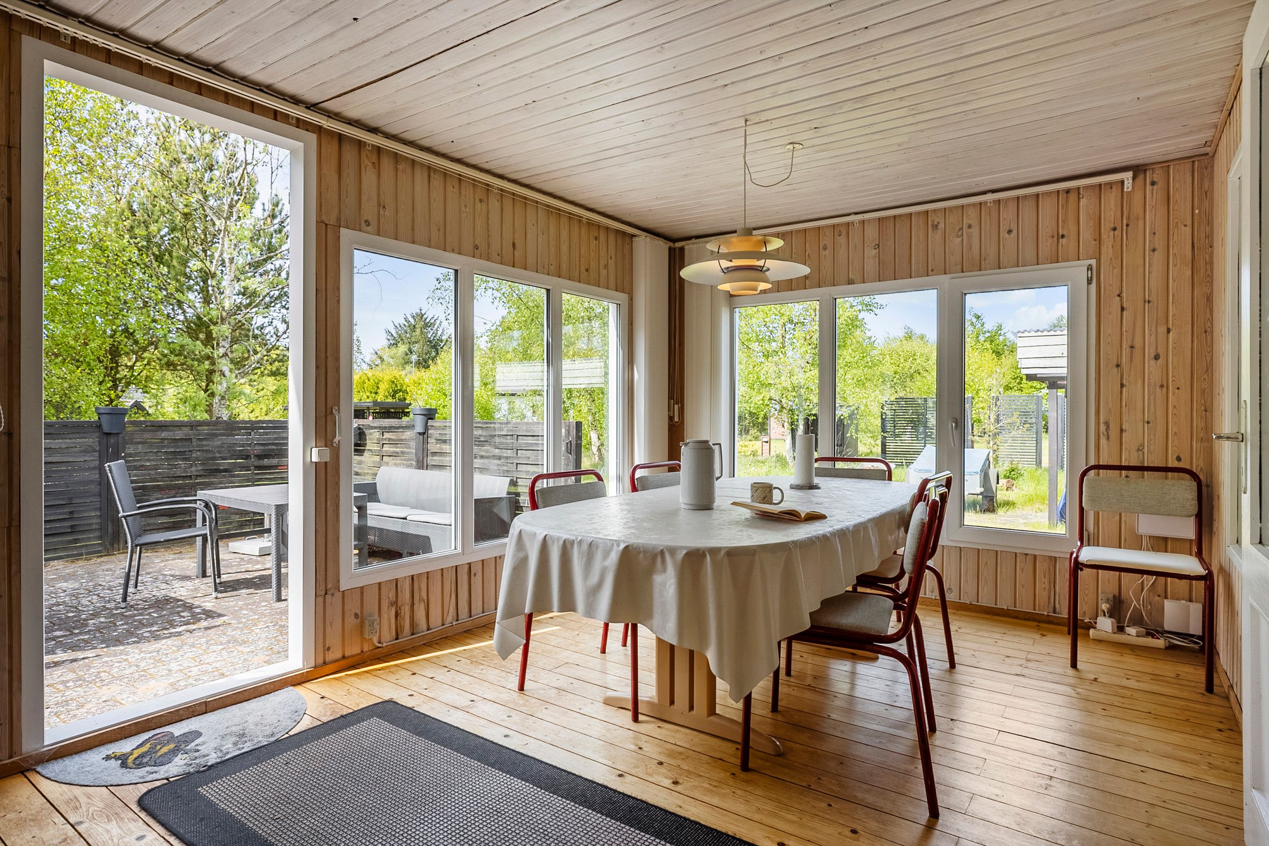Indenfor byder huset på en stor, skøn udestue, hvor der er plads til afslapning og hyggelige stunder. Herfra er der adgang til en værelsesafdeling med tre gode værelser – perfekt til børnene eller gæster. Fra udestuen træder man ind i det åbne køkken-alrum, som er husets hjerte. Det velindrettede køkken inviterer til madlavning og samvær, og herfra er der udgang til den østvendte terrasse – ideelt til morgenmaden i solen eller et afslappende eftermiddagsmåltid.