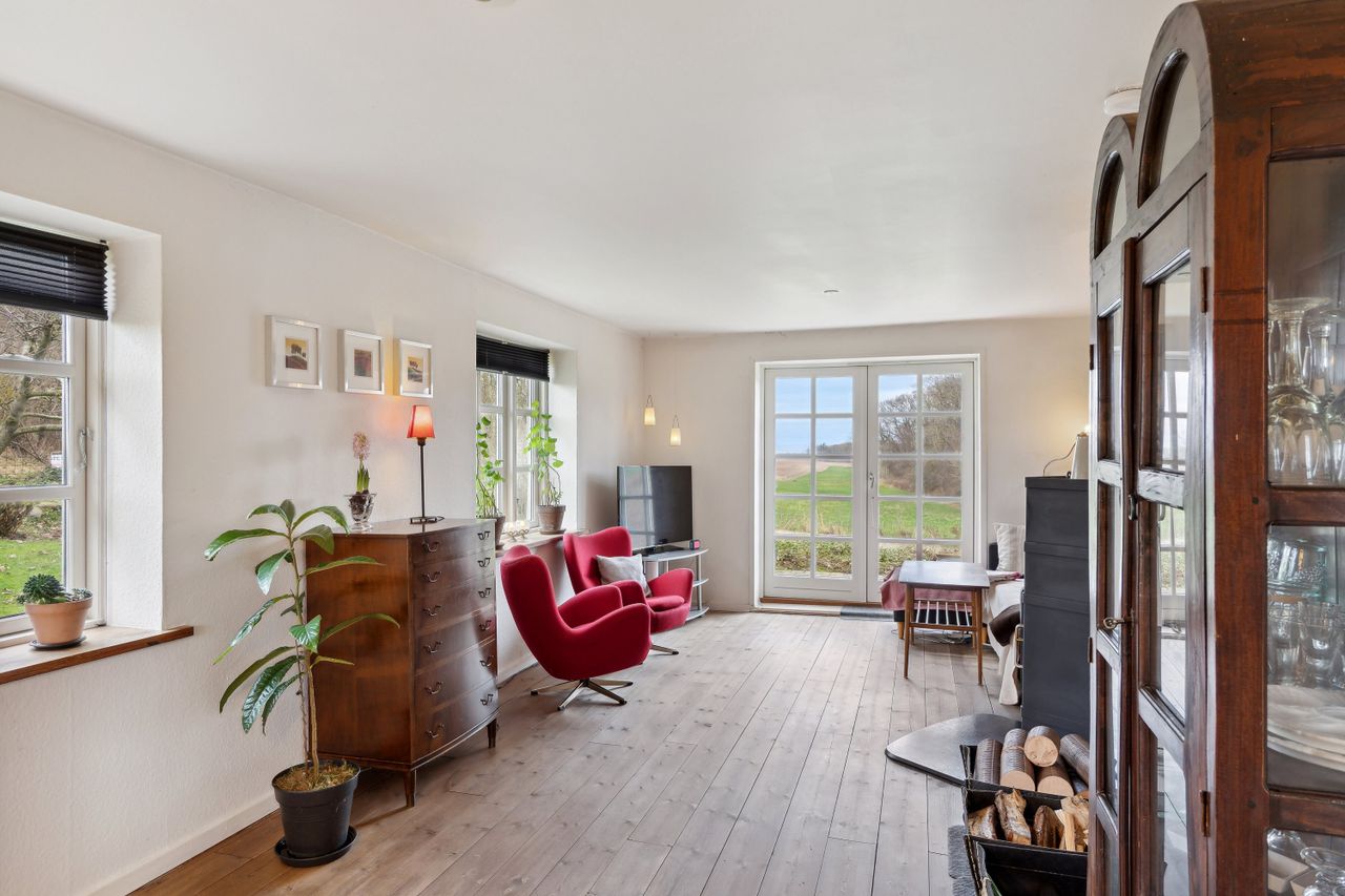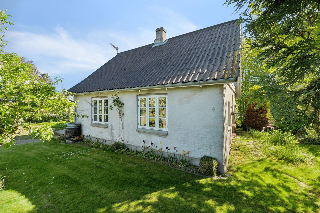 Nu udbydes skøn delvist moderniseret landhus beliggende naturskønt og ugenneret med havkig til Rygårde badestrand. Huset ligger på hyggelig grund med dejlig have med flere gode terrasser og solkroge hvor man rigtig kan hygge sig med familie og venner og nyde udelivet. Endvidere er der kort afstand til dejlig børnevenlig badestrand hvor man ligeledes kan hygges sig og gå gode lange ture med familien. Yderligere kan nævnes flot udsigt over marker.