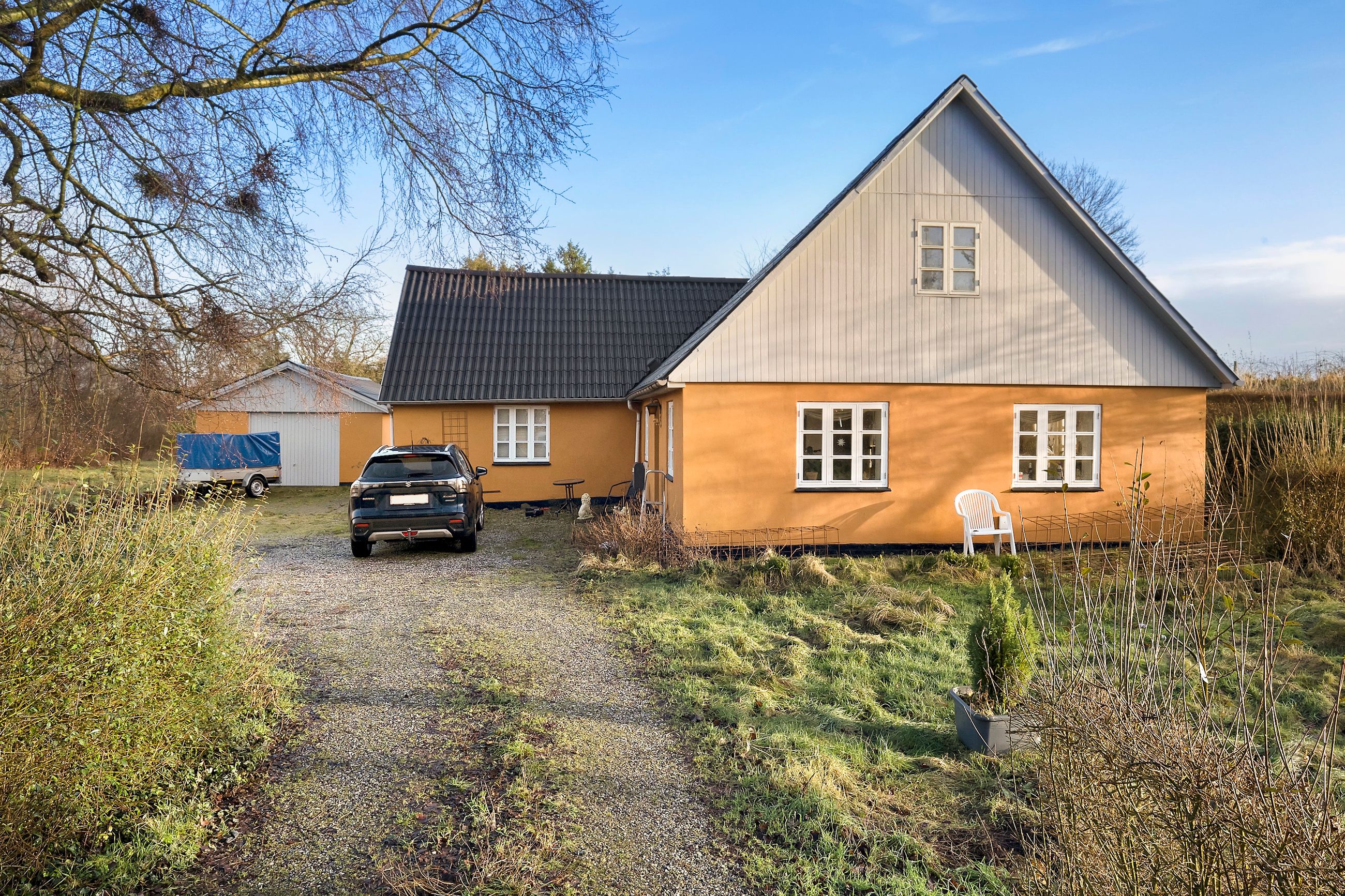 Velommen til dennne skønne Ejendom beliggende i naturskønne omgivelser med ialt ca. 1,4 ha jord fordelt på 2 matrikler hvor det ene jordstykke ligger tæt på ejendiommen, og det andet er omkringliggende huset med dejlig natur og have. Huset er endvidere beliggende tæt på Clausholm Slot