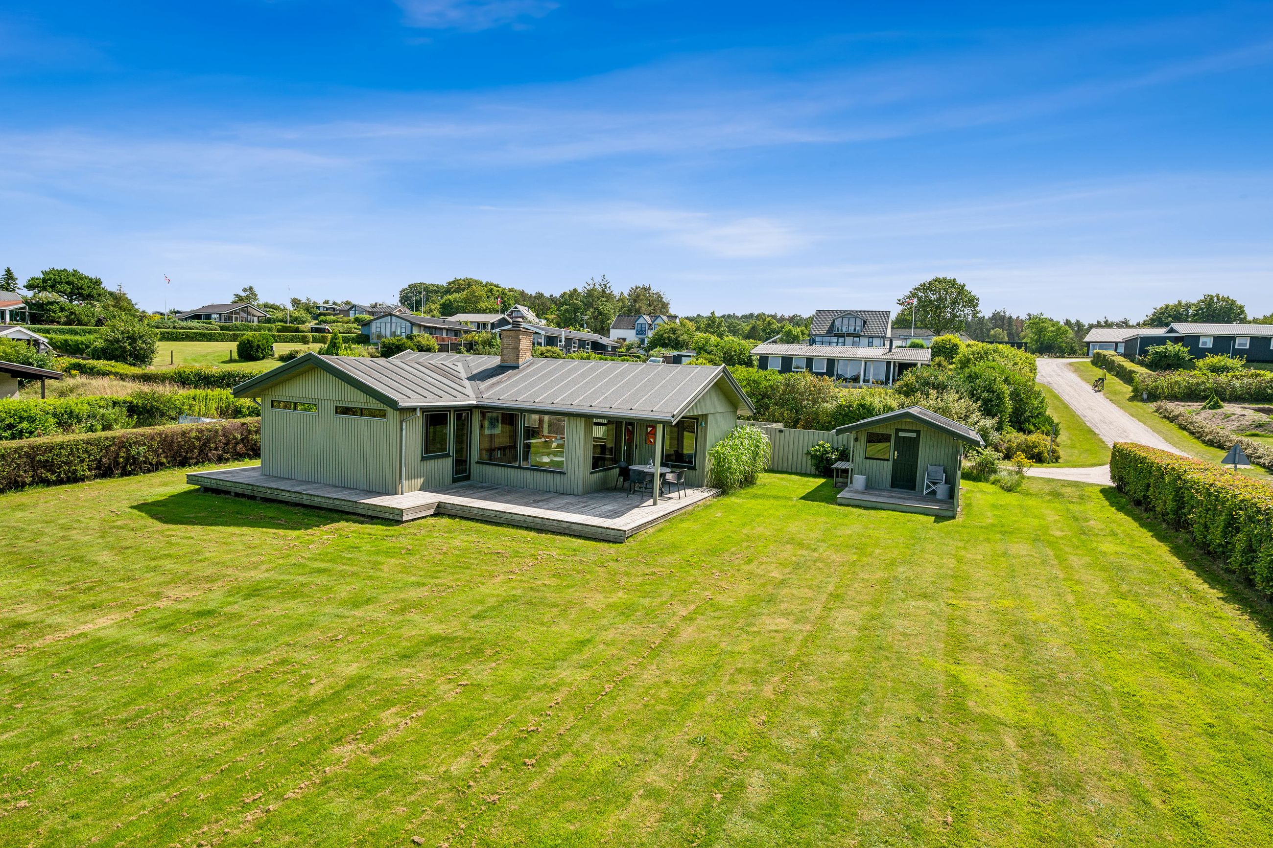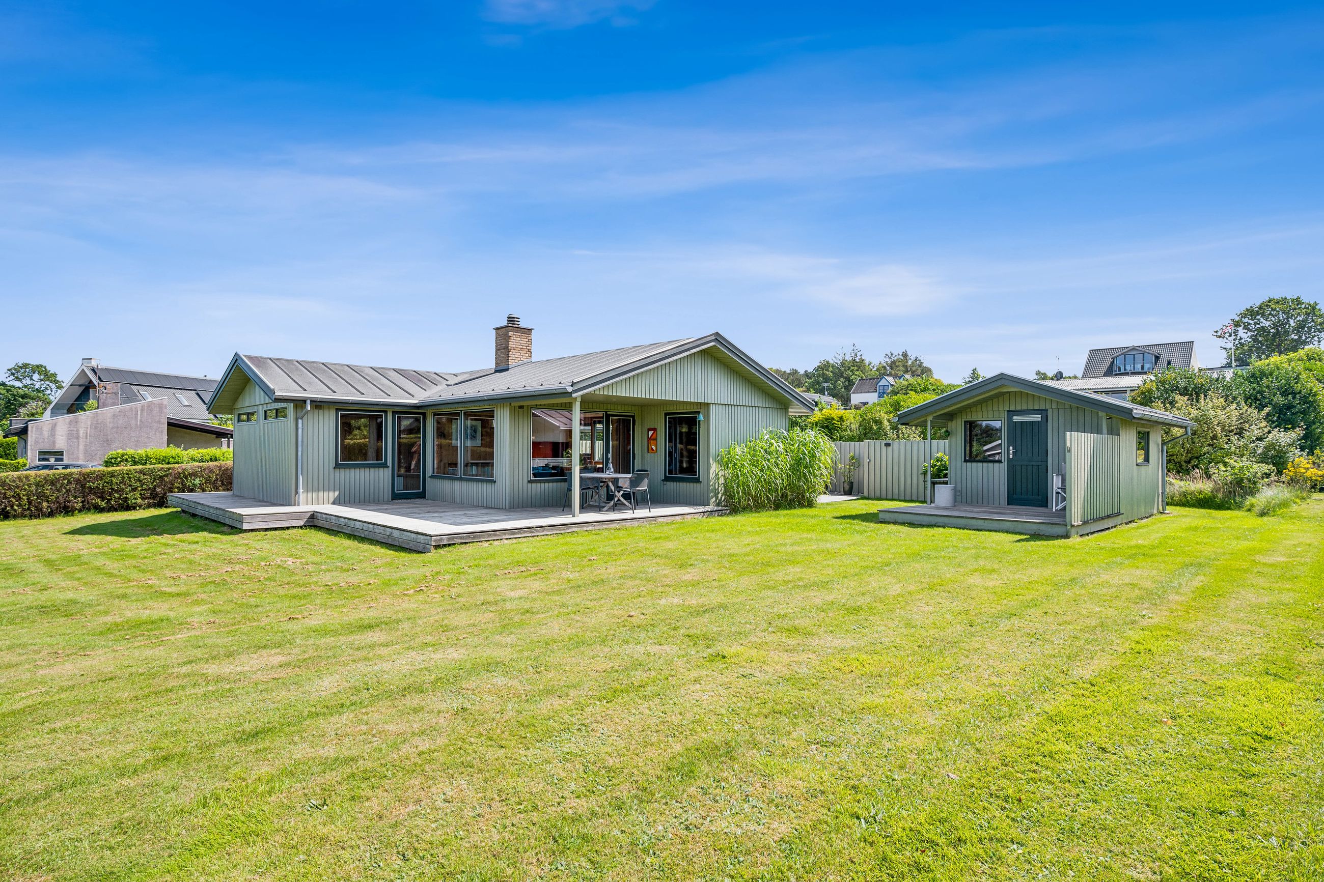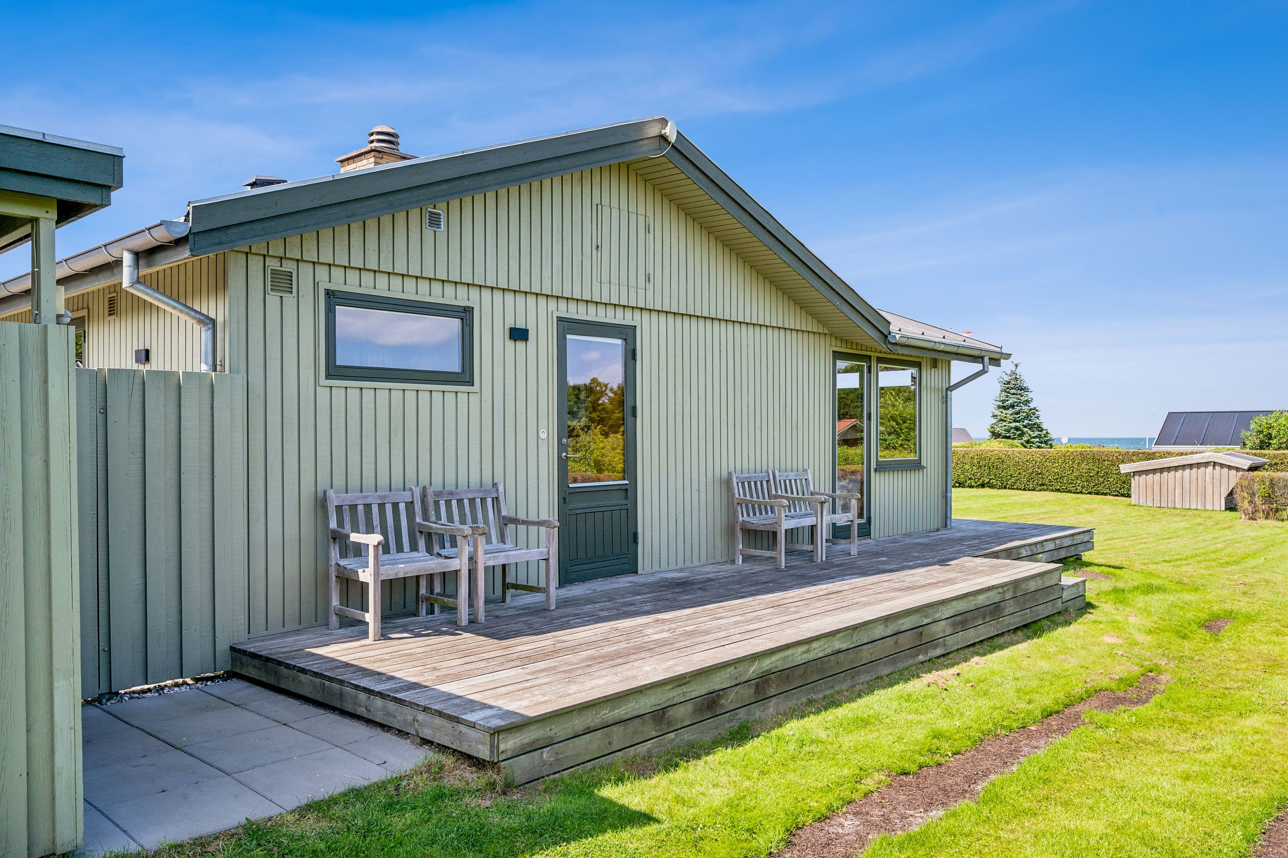 Velkommen til dette skønne og yderst velholdte fritidshus med flot havkig. Fritidshuset er beliggende i kort afstand fra stranden i det hyggelige sommerhusområde Skovgårde. Huset er gennem årerne blevet delvist moderniseret i gode kvalitetsmaterialer , hvor der bl.a.: er skiftet køkken og badeværelsesinventar. Huset fremstår i dag meget flot og velholdt. Til huset hører stor nem have med flere gode terrasser delvist overdækket samt stor ugeneret sydvendt sol/gårdhave som virkelig fremmer det gode udeliv. I denne store have er der rig mulighed for at lave aktiviter og hygge sig med venner og familie. Yderligere kan nævnes shelter og bålplads. På den børnevenlige badestrand kan man også hygge sig og bade med familie og venner samt gå lange ture langs vandkanten. Endvidere er der kun ca. 4 kilometer til Fjellerup hvor der er gode indkøbsmuligheder. Fritidshuset indeholder: Entre og badeværelse med brus. Endvidere 2 store gode værelser med faste skabe samt stort lyst køkken/alrum i åben forbindelse med stuen. Fra stuen og alrummet er der udgang til gårdhaven samt til delvist overdækket terrasse med havkig. Yderligere kan nævnes godt værelse med skab. Til fritidshuset hører godt boliganneks med delvist overdækket terrasse også med det flotte havkig. Endvidere er der udhus(ikke godkendt til bolig) samt overdækning med udebruser tilsluttet elvandvarmer så man kan nyde et godt varmt bade når man enten har været ved stranden eller i haven. Et flot fritidshus som skal opleves ved en fremvisning, så man kan fornemme den hyggelige stemning og den gode badestrand.