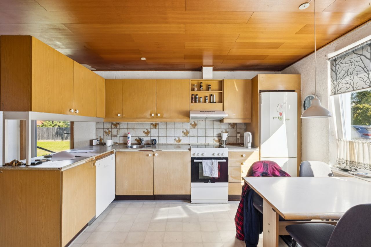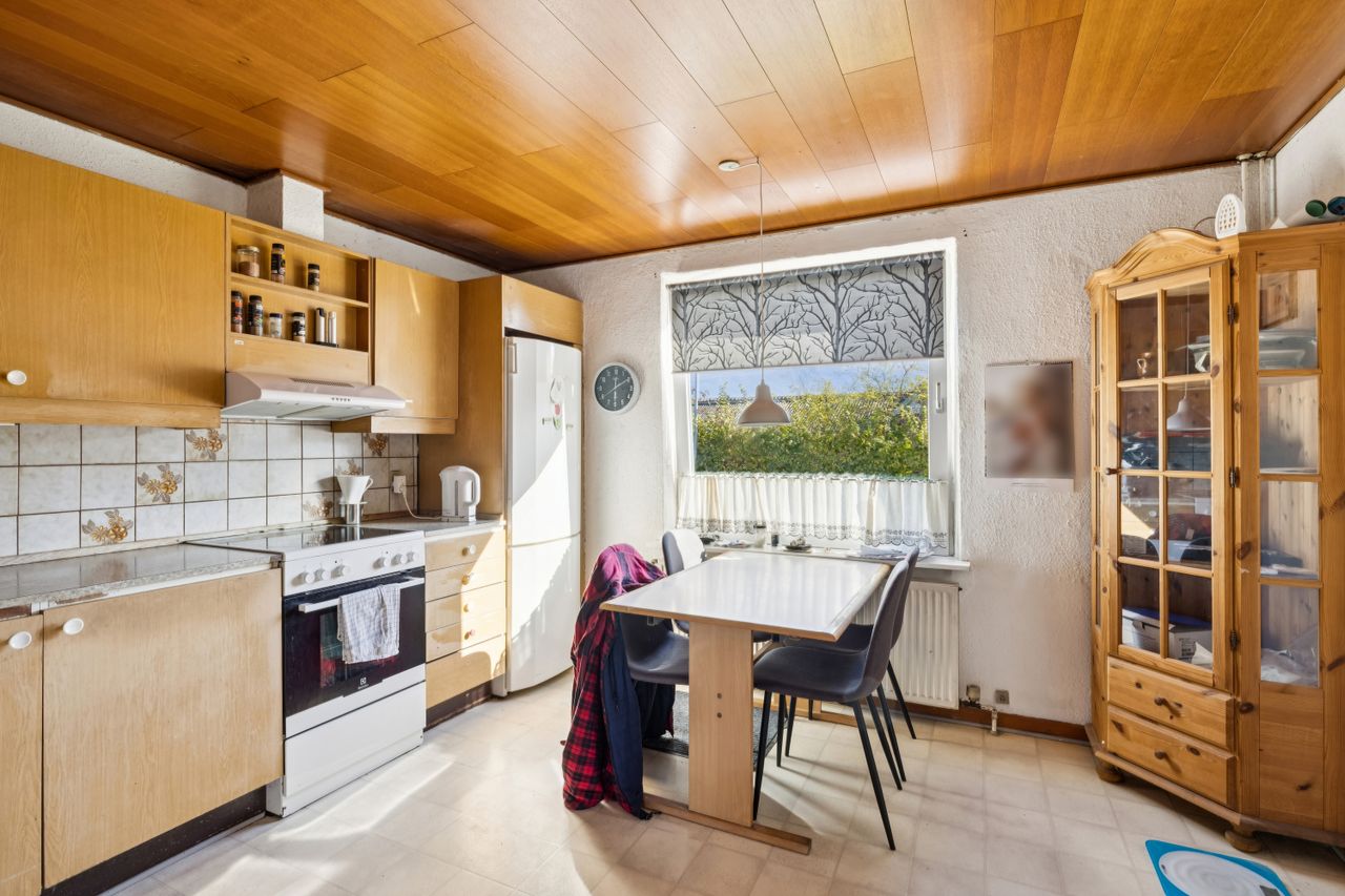 Stueetagen indeholder: Entre med opgang til 1 sal og badeværelse. Endvidere er der stort spisekøkken med udgang til terassen og haven. Yderligere kan nævnes god lys stue.