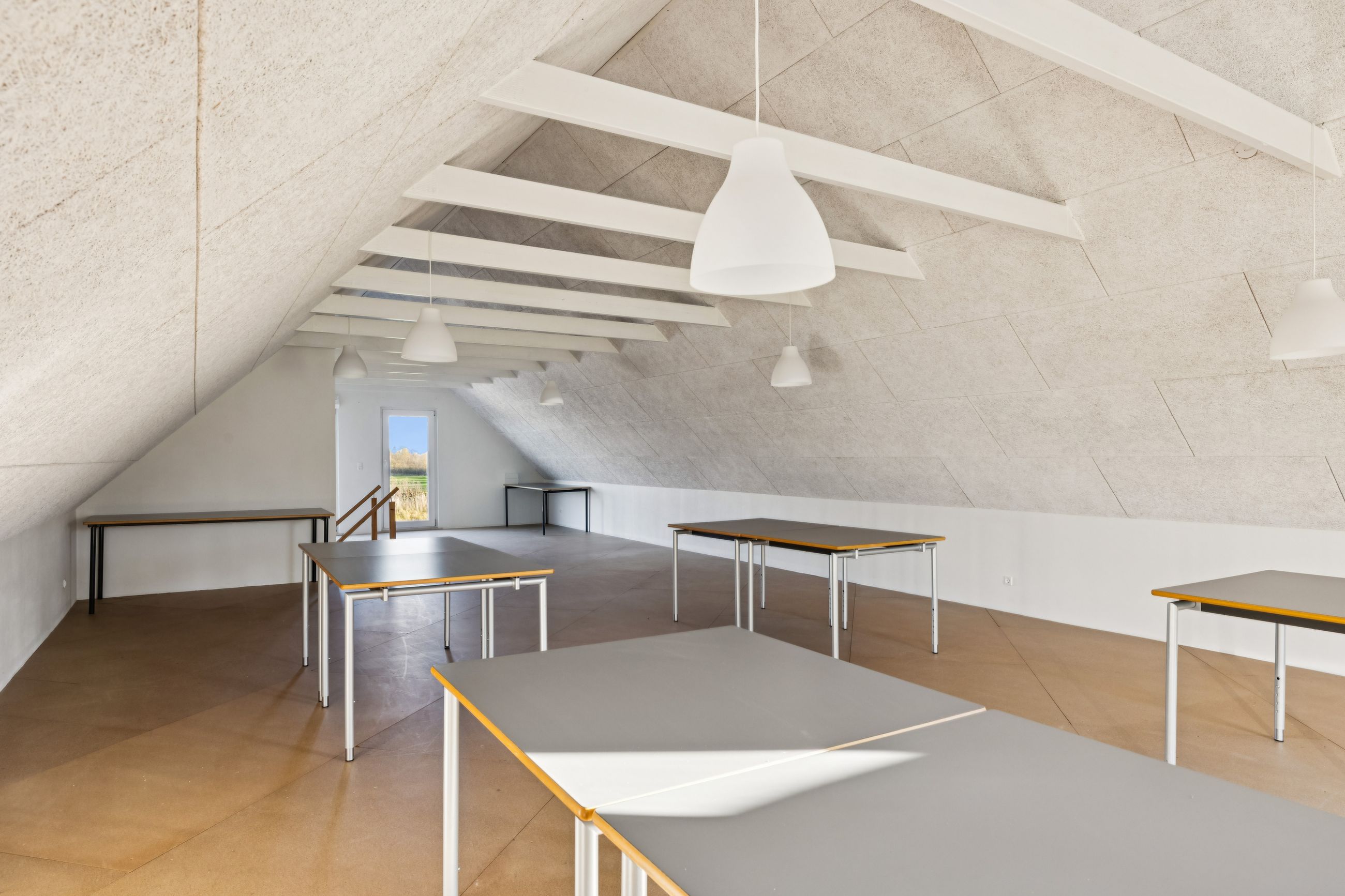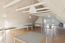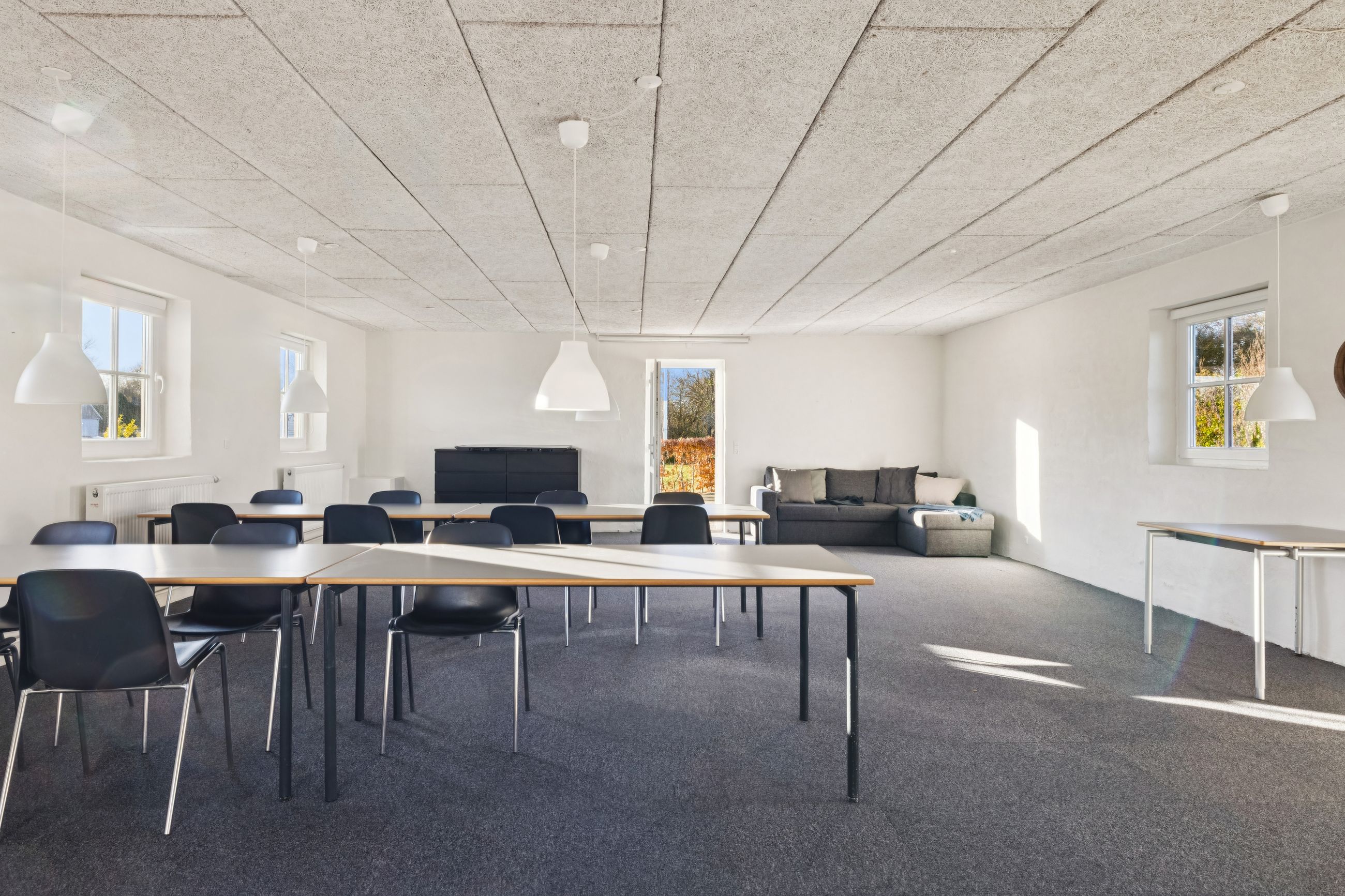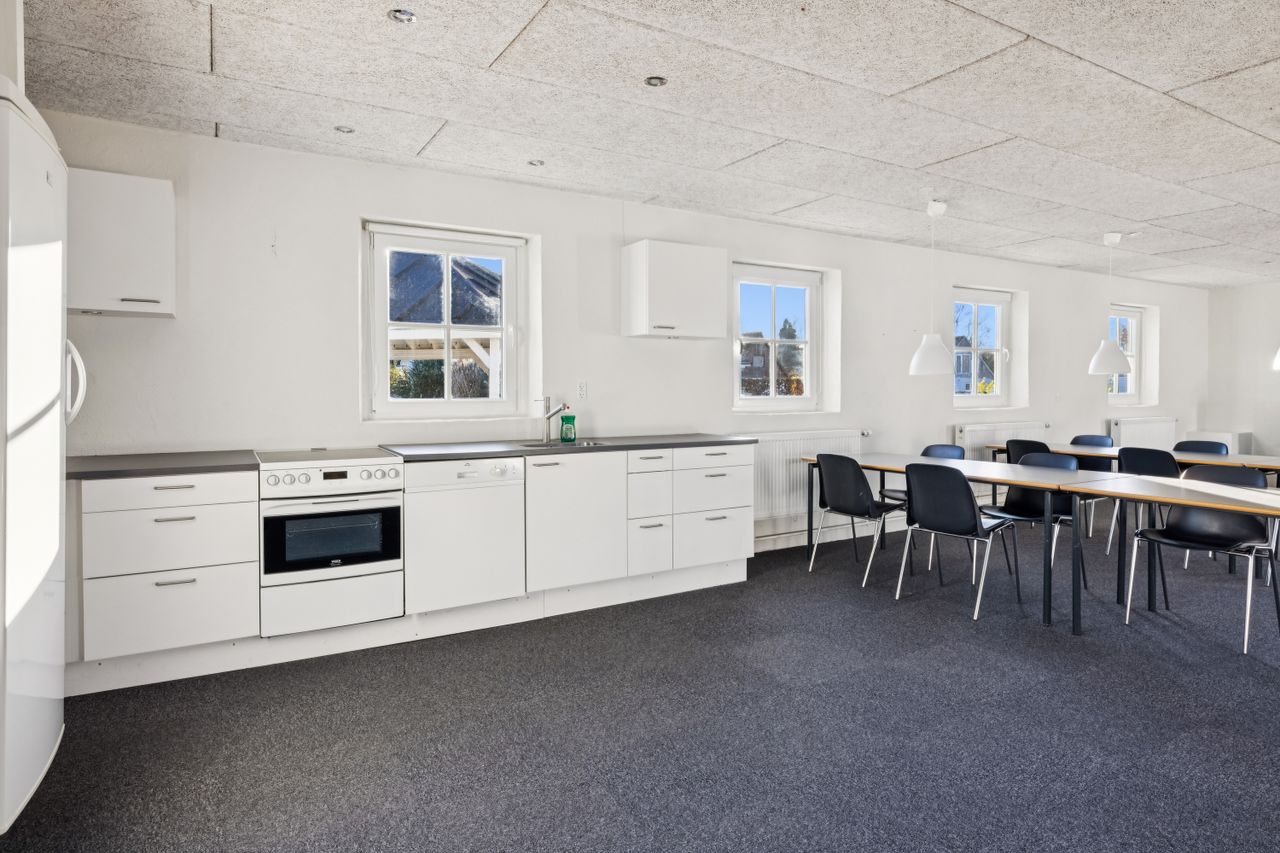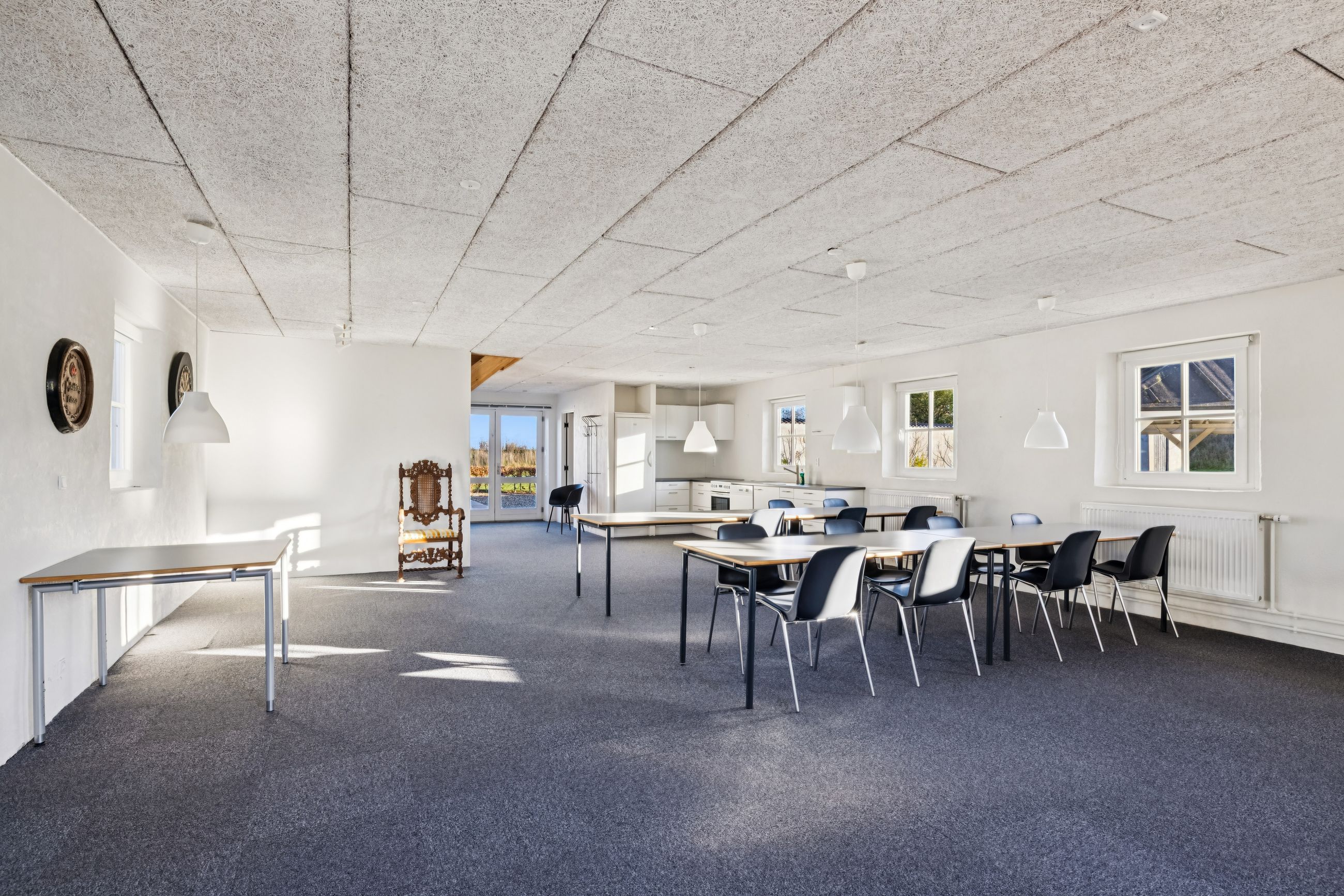 Den anden bygning indeholder Flot badeværelse, Vaskerum samt køkken og stort åbent Disponibelt rum med mange gode anvendelsesmuligheder. 1 sal indeholder stort disponibelt lyst åbent rum.