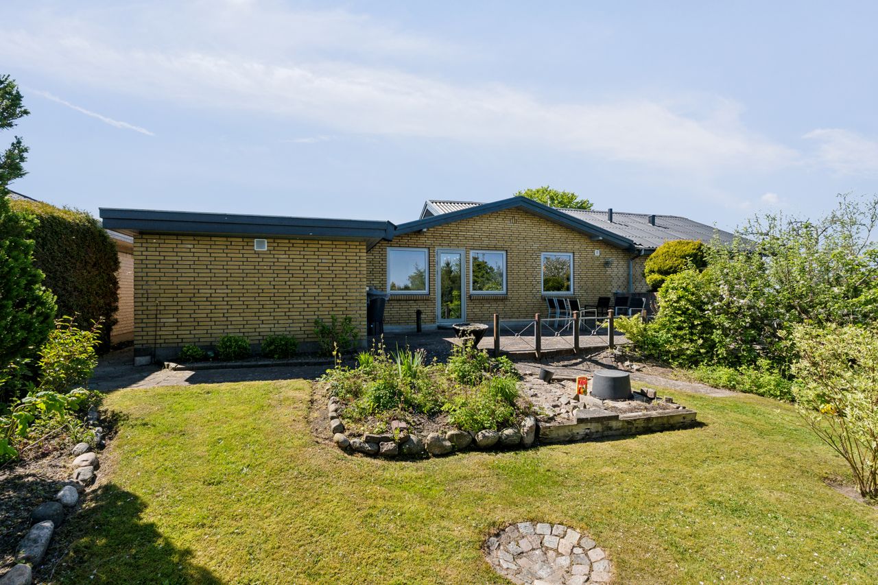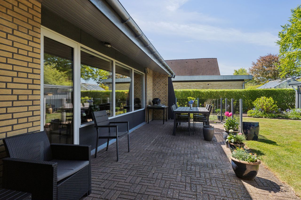 Der er to skønne terrasse til huset, og de vender rigtigt i forhold til solen, så I kan nyde alle årets lune og varme måneder udenfor. En del er af den ene terrasse er overdækket. Herudover en nem have og god plæne med masser af plads til børnenes leg, trampolin og boldspil.