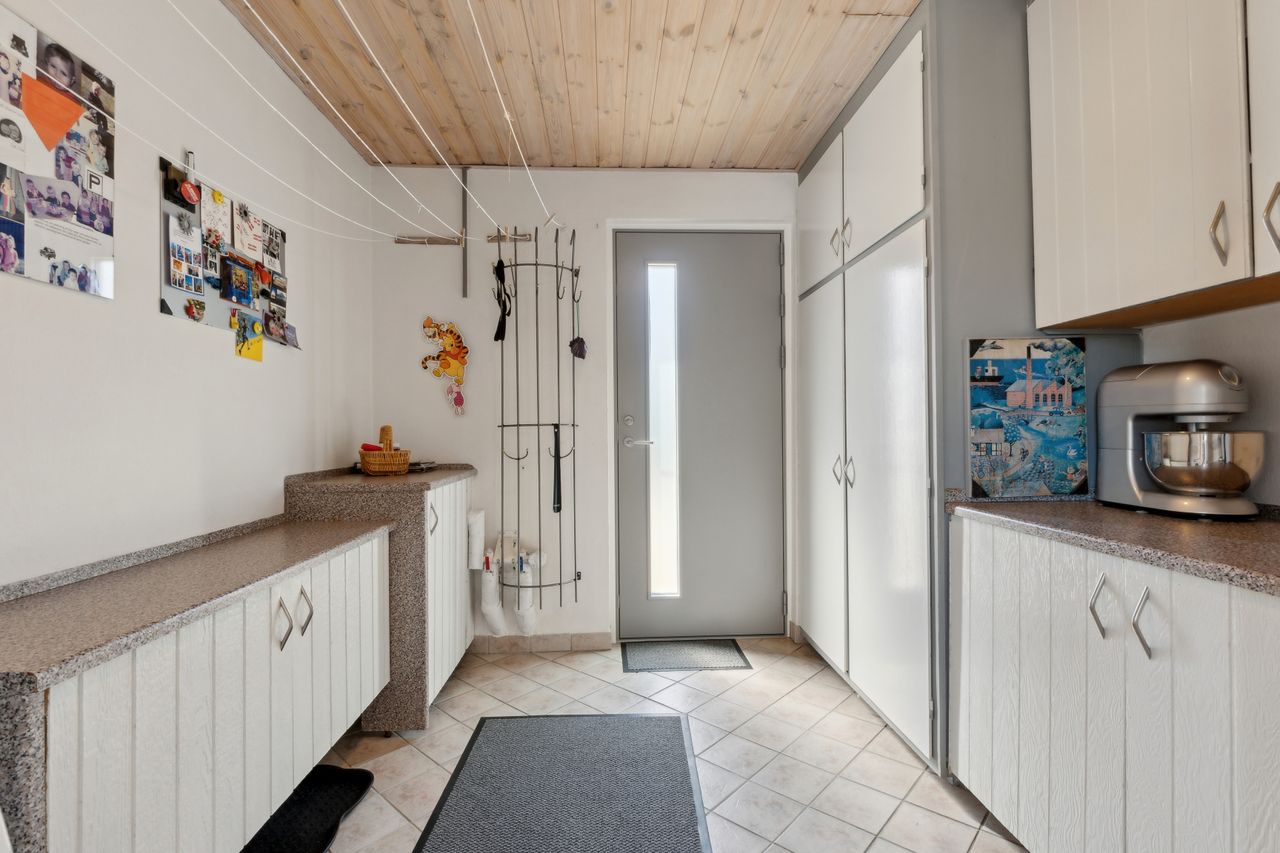 BESKRIVELSE BOLIG:Velkommen indenfor i lys og indbydende entré med god plads til at tage imod gæsterne og komme af med overtøjet. Herfra er der adgang til stort værelse og badeværelse fra 2019 med badekar og gulvvarme. videre ind i huset ledes du ind i stort køkken med spiseplads. Her er der godt med bord- og opbevaringsplads. Fra køkkenet er der adgang til stort bryggers. I denne ende af huset er der endvidere fantastisk ca. 40 kvm. stor og lys stue. Er du mere til køkken-alrum, kan dette nemt etableres. Herudover byder boligen på værelsesafdeling med 3 gode soveværelser og dejligt moderniseret badeværelse med bruser, gulvvarme og tidligere sauna.
