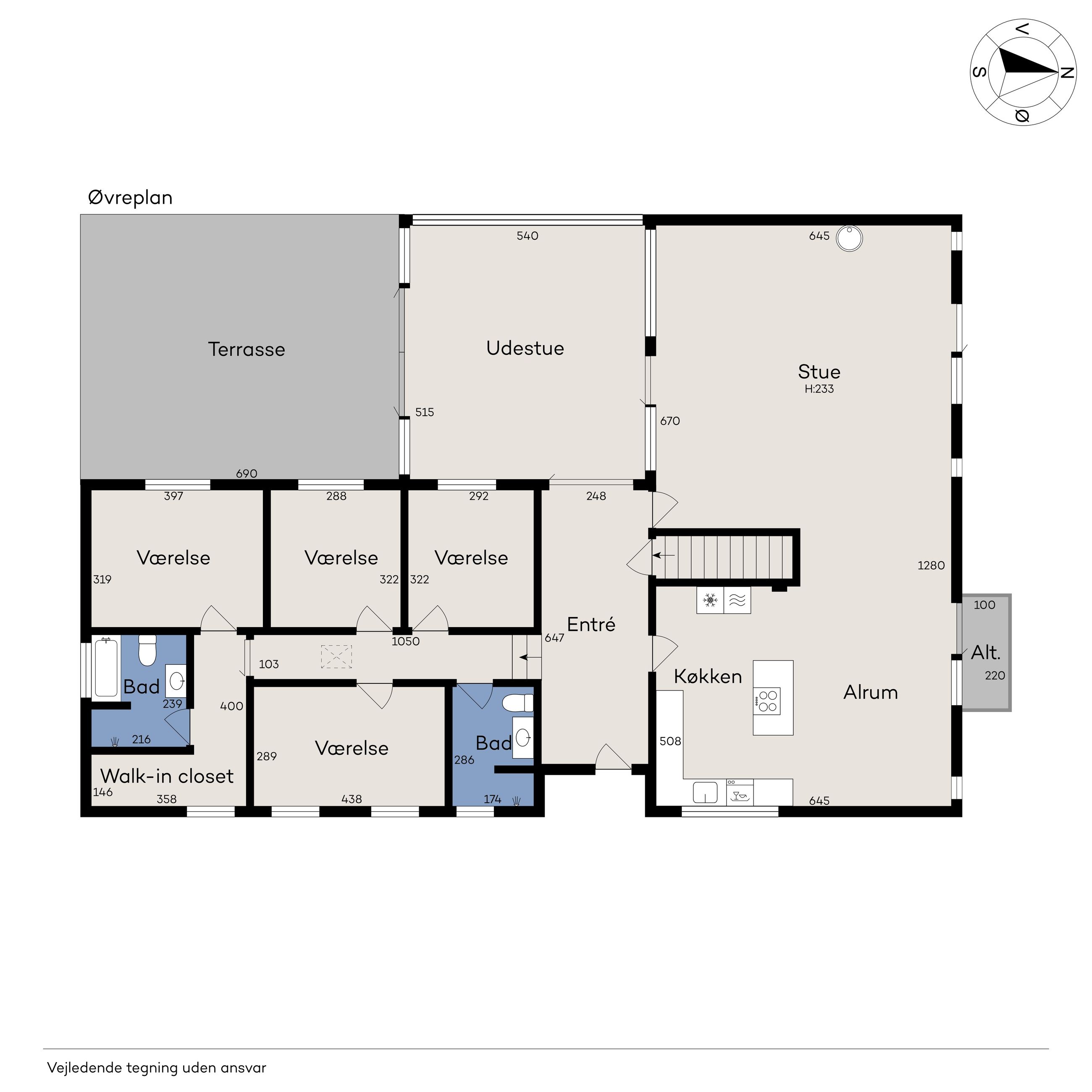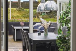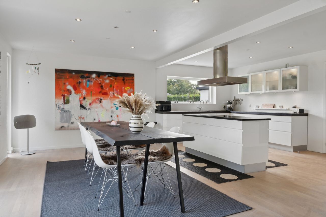 Stor og moderne familievilla i Gug - Indflytningsklar villa i moderne stil- Lækkert køkken-alrum- Meget stor stue- Forældre- og børneafdeling- Dejlig lukket have BELIGGENHED:Denne rummelige familievilla finder du på lukket stikvej hvor børnene kan lege uden fare, med attraktiv beliggenhed i Gug, hvor du har nem adgang til alt. Gug er et attraktivt område med mange aktivitetsmuligheder, grønne arealer og nem adgang til skoler, institutioner, Aalborg Universitet, indkøb, busstoppested, Østerådalen, svømmehal ved Gigantium, sport og kultur. Det nye Supersygehus, Aalborg centrum og motorvejen nås på 5 min. BESKRIVELSE BOLIG:Meget stor entré med adgang til værelsesafdeling med børneafdeling med 3 værelser og eget badeværelse, samt forældreafdeling med soveværelse, walk-in og stort badeværelse. Virkelig skønt køkken-alrum med masser af bord- og skabsplads i køkkenet og plads til langbordet i alrummet. Alrummet er i åben forbindelse med meget stor stue med hyggelig brændeovn - her er der plads til den store sofagruppe. Kælder er indrettet med stort vaskerum, depotrum og stort disponibelt rum i boligstandard. Skøn ugeneret sydvendt have bag huset. Her er der masser af plads til børnenes leg, boldspil og trampolin. Dejlig terrasse og skøn udestue på hele 28 kvm. med gulvvarme, med adgang fra både stue og terrasse - her er basis for mange timers hygge og afslapning.Endvidere dobbelt garage, hvor den ene garage er indrettet som hyggestue og den anden fungerer som garage. Herudover stort udhus og cykelskur. En villa DER SKAL OPLEVES - ring straks 98 149 147 for fremvisning
