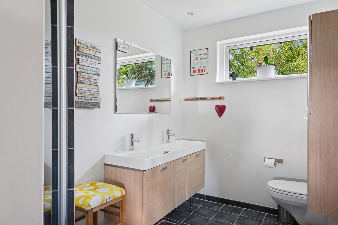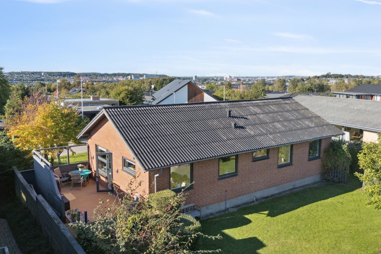 Indflytningsklar virkelig velholdt højtbeliggende villa med udsigt - Dejligt køkken-alrum med udsigt- Skønt badeværelse fra 2006- Udsigtsstue- Centralstøvsuger- Løbende vedligeholdt og moderniseret- Garage med elport under huset- Ny indkørsel og hulmursisoleret i 2025- Træ-alu vinduer- Omfuget i 2019- Taget malet i 2021 BELIGGENHED:Skøn velholdt og løbende moderniseret villa med fantastisk udsigt med attraktiv beliggenhed i Gug, hvor du har nem adgang til alt. Gug er et attraktivt område med mange aktivitetsmuligheder, grønne arealer og nem adgang til skoler, institutioner, indkøb, busstoppested, Østerådalen, svømmehal ved Gigantium, sport og kultur. Aalborg centrum og motorvejen nås på 5 min. BESKRIVELSE BOLIG:Du bydes velkommen indenfor i rummelig lys forgang med gulvvarme og loft til kip. Du ledes helt naturligt ind i det skønne køkken-alrum i åben forbindelse med stuen. Herfra har du en fantastisk udsigt mod vest og et skønt lysindfald. I køkkenet er der godt med bord- og opbevaringsplads, samt alt i hvidevarer. I alrummet er der god plads til langbordet, så du kan nyde mange timer i hyggeligt samvær med venner og familie. Fra stuen er der endvidere udgang til skøn sydvendt terrasse. Herudover er der fra forgangen adgang til skønt badeværelse med gulvvarme og bruseniche. Ligeledes er der adgang til værelsesafdeling med 2 værelser med hems og soveværelse med walk-in-closet. Underetagen er med egen indgang med gulvvarme, ekstra køkken, badeværelse med bruser, samt vaskemaskine og tørretumbler, samt et disponibelt rum i værelsesstandard. Skøn ugeneret have bag huset med flere skønne frugttræer, god plads til børnenes leg, boldspil og trampolin. Herudover skønne terrasser og udhus med udekøkken. Her kan du altid finde plads til grill, hygge og afslapning i solen. Helt nyanlagt indkørsel i 2025, hvor der er forberedt til ladestanderløsning. Her er der nedkørsel til garage med elport under huset med direkte adgang til huset.